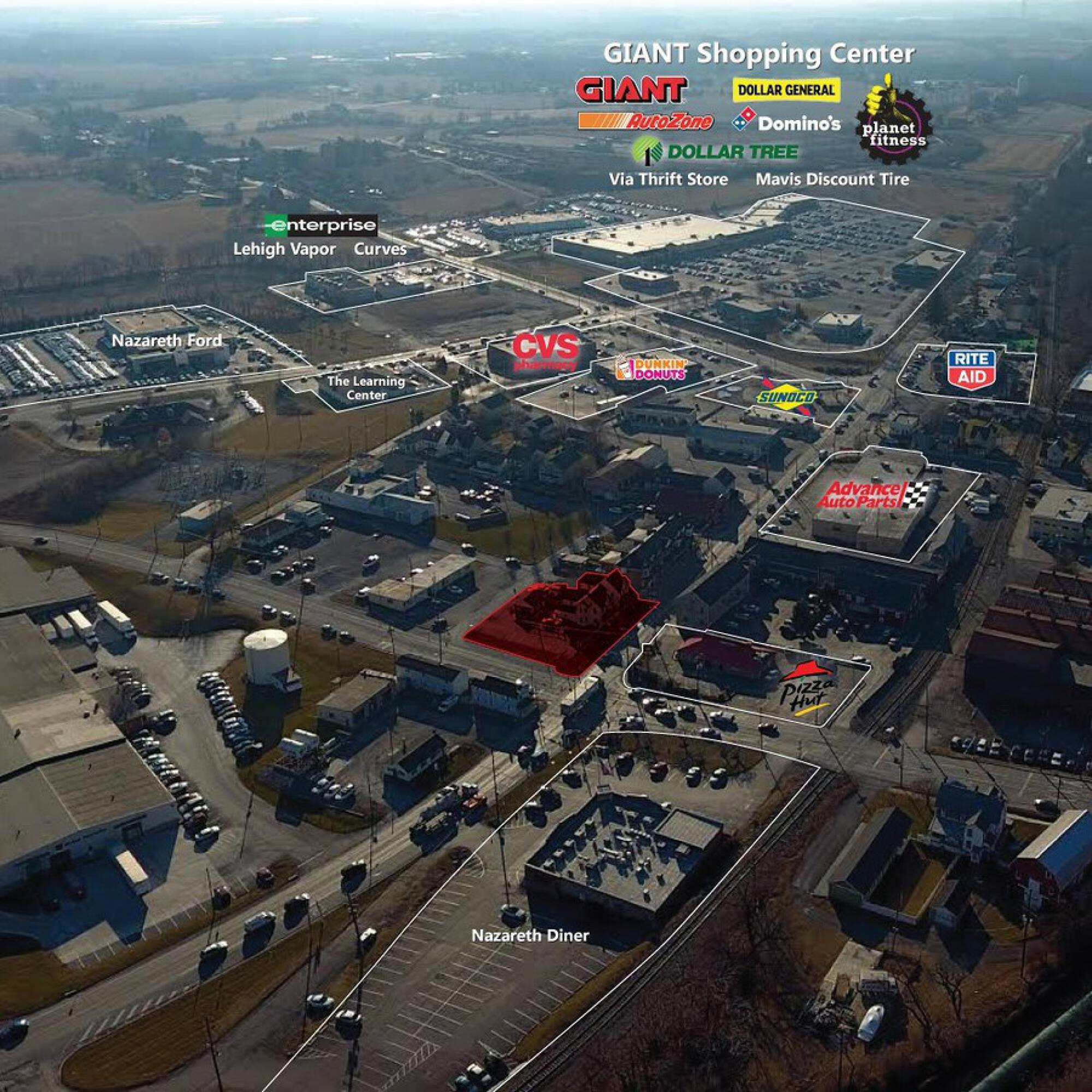 This property features: Two parcels totaling .3 acres in downtown Nazareth; Located on a **signalized intersection**; **Redevelopment project opportunity**