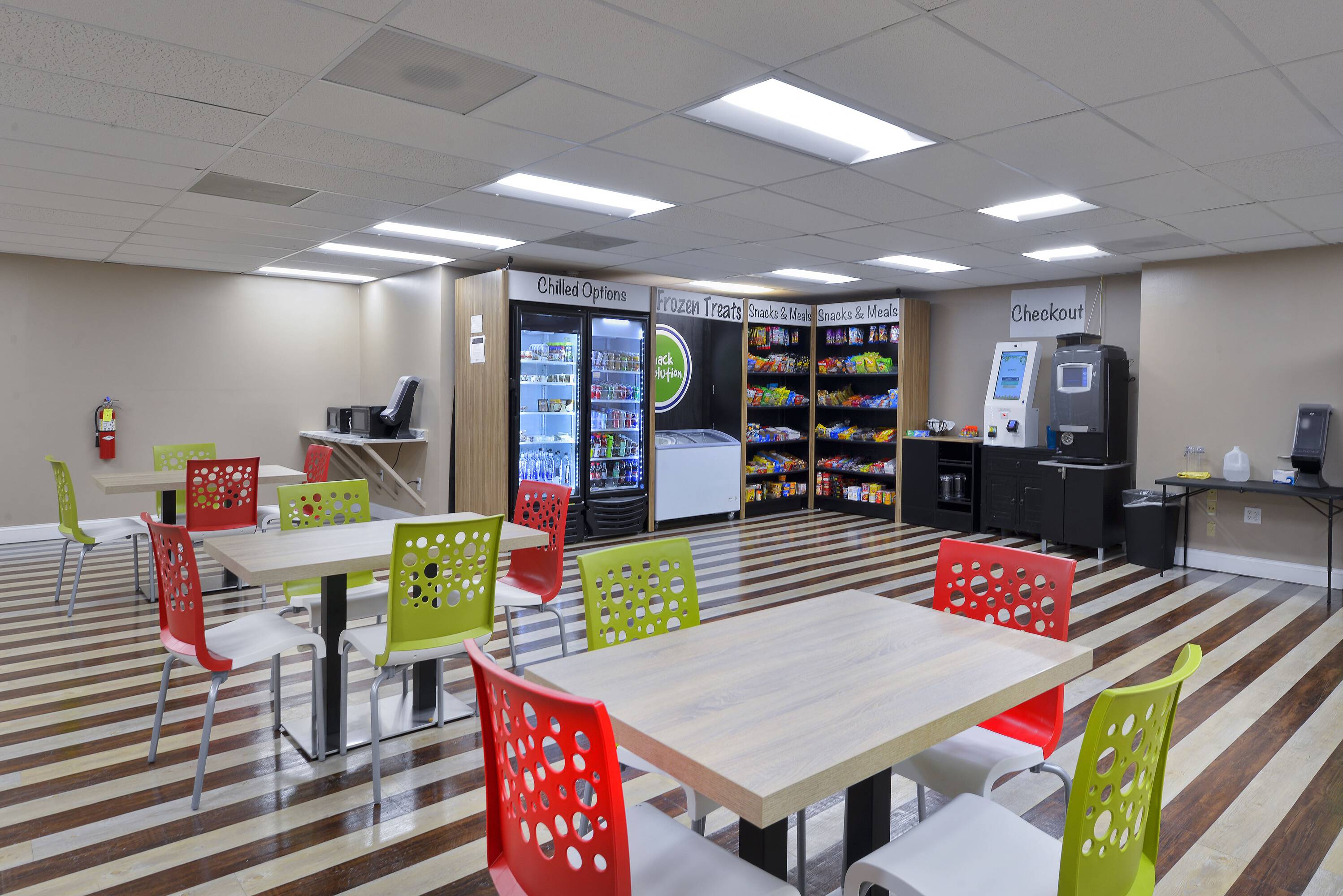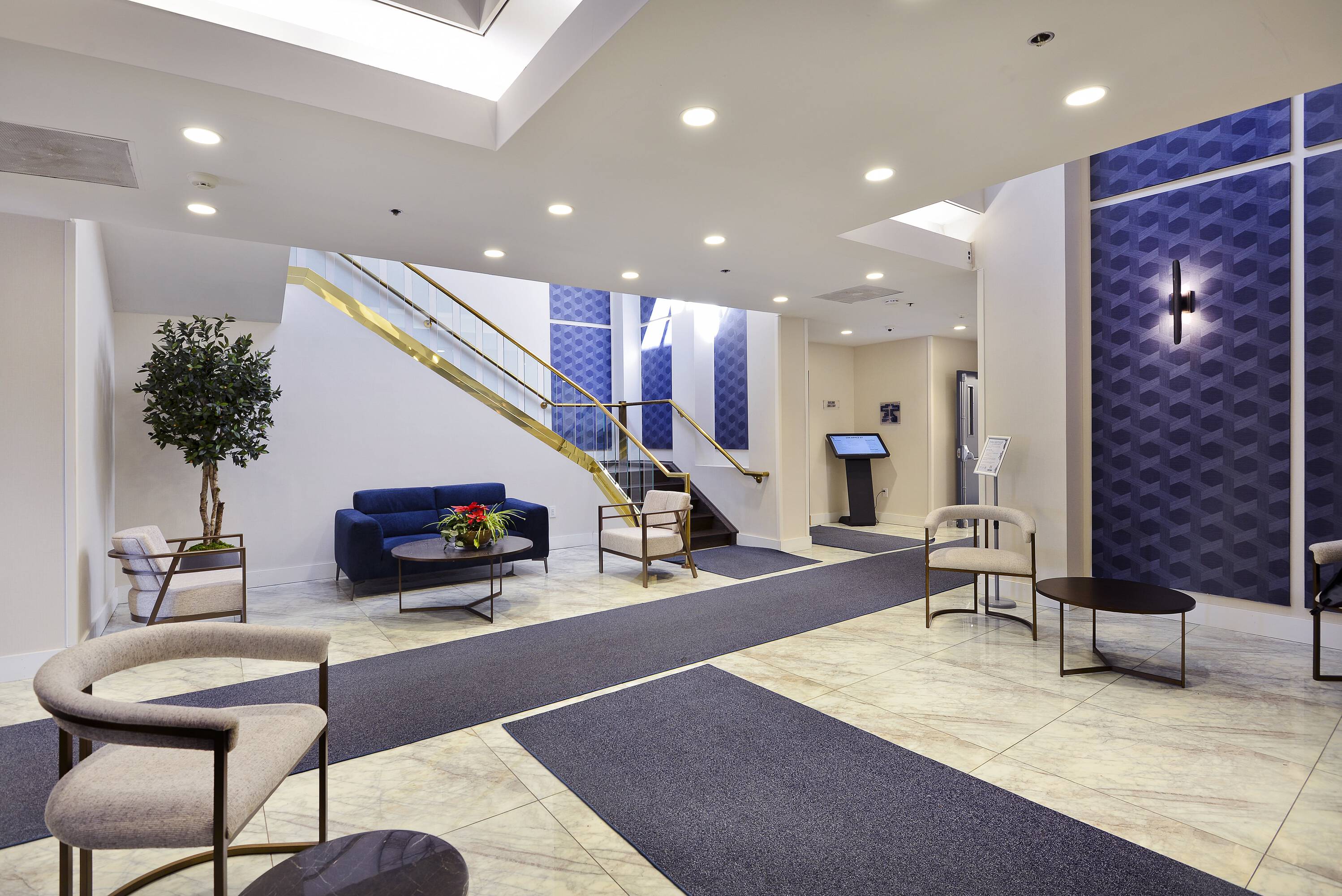 Office building featuring a fitness center and tenant lounge.