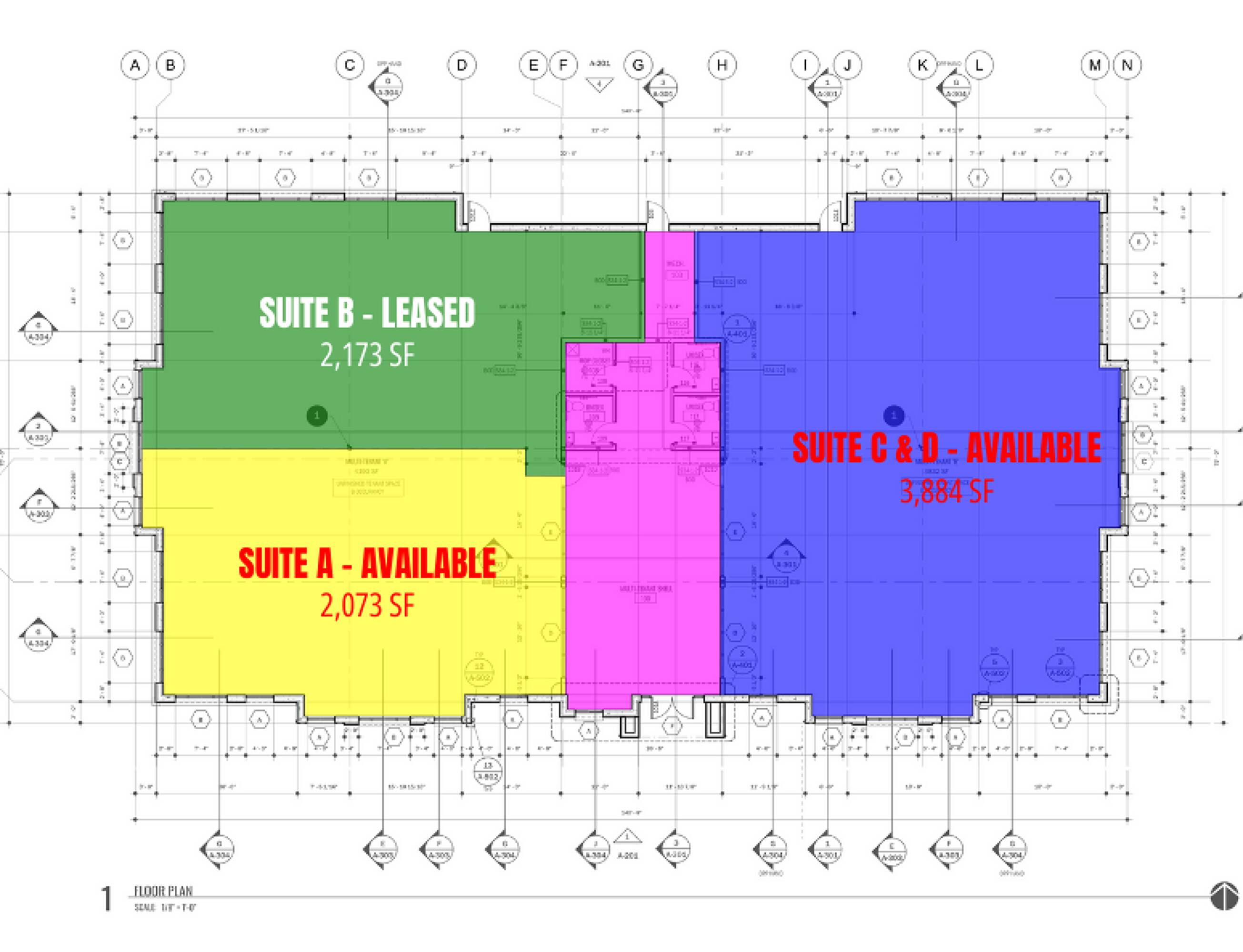 Energy-efficient office building constructed in 2023, suites available for lease.