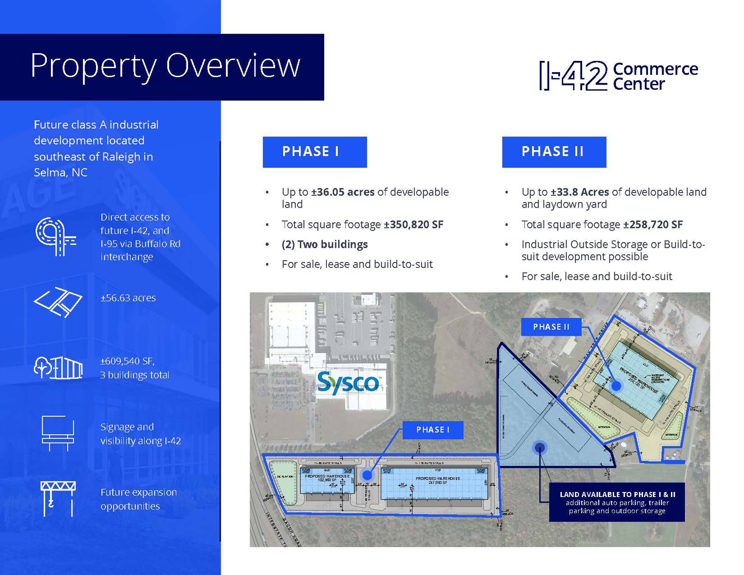 This property features: ±35.73 Acre Class A Industrial Development; Immediate access to Highway 70, future I‑42, and I‑95; Variety of site plan options up to ±350,820 SF