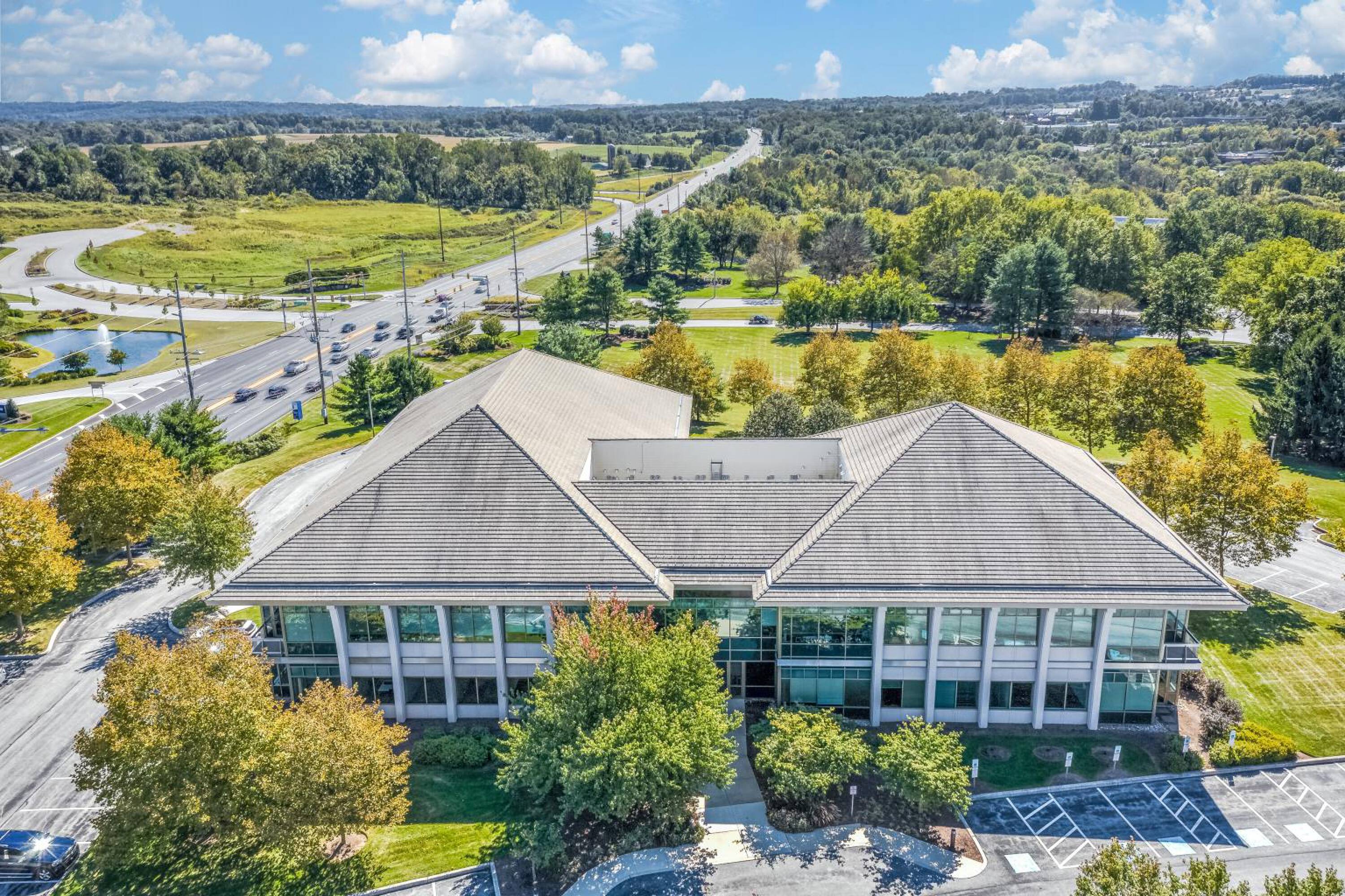 Two-story office building near PA Turnpike with high visibility.