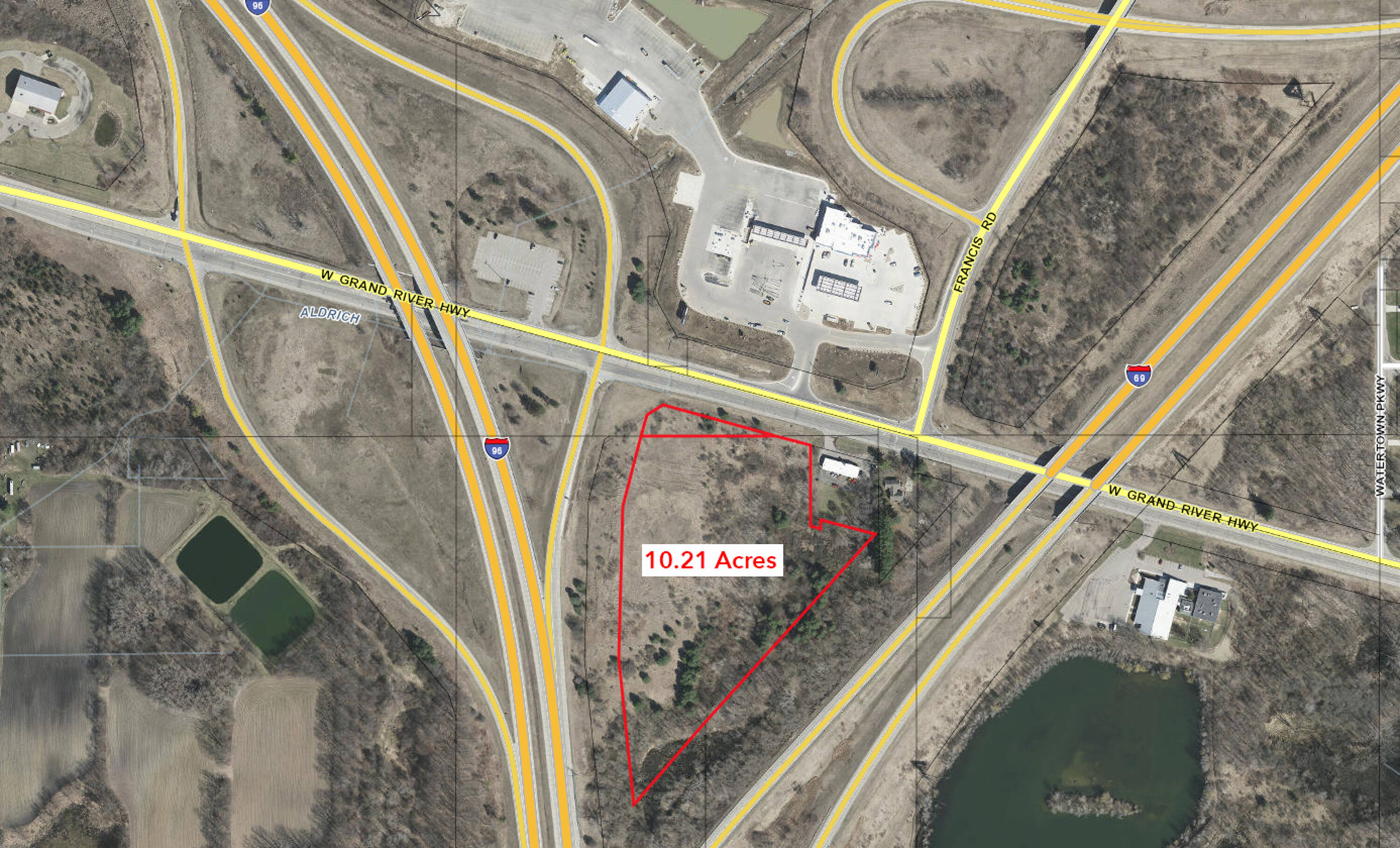 Large commercial land with highway visibility and development potential.