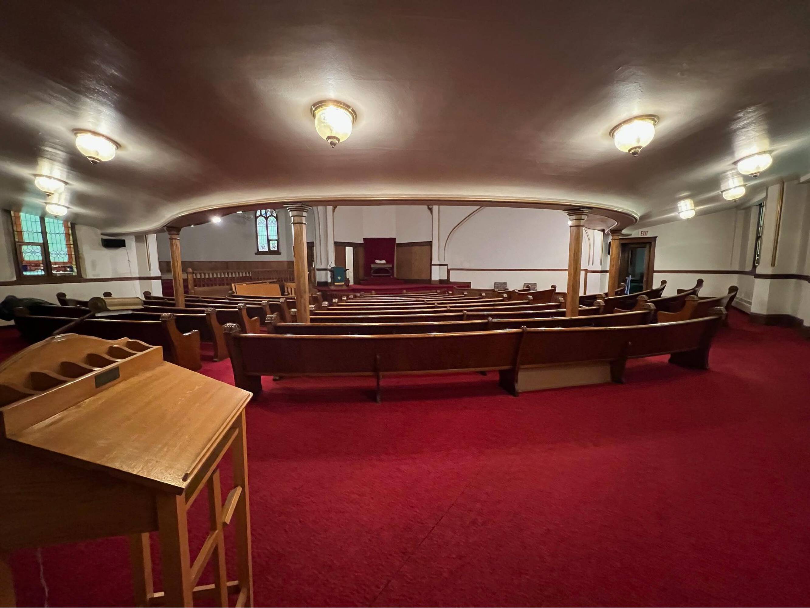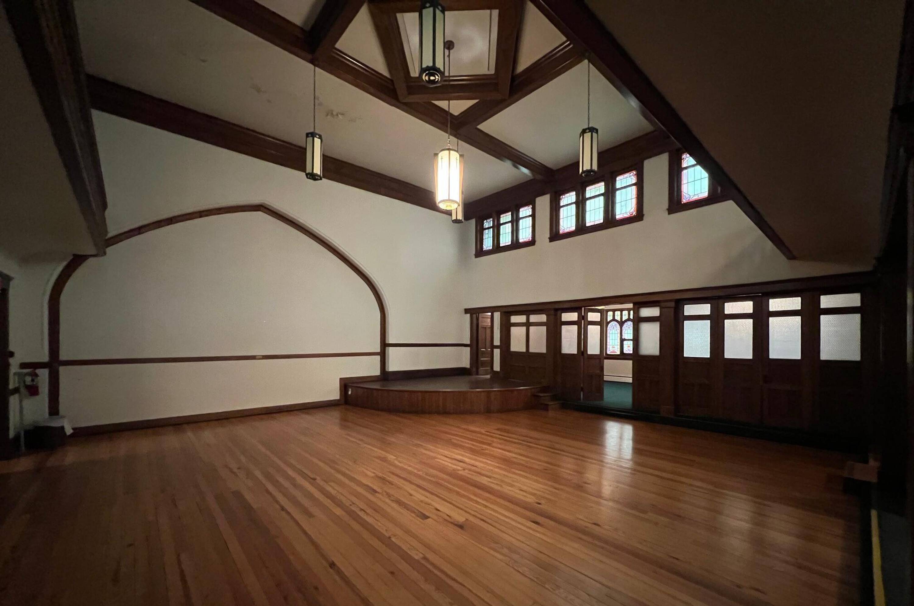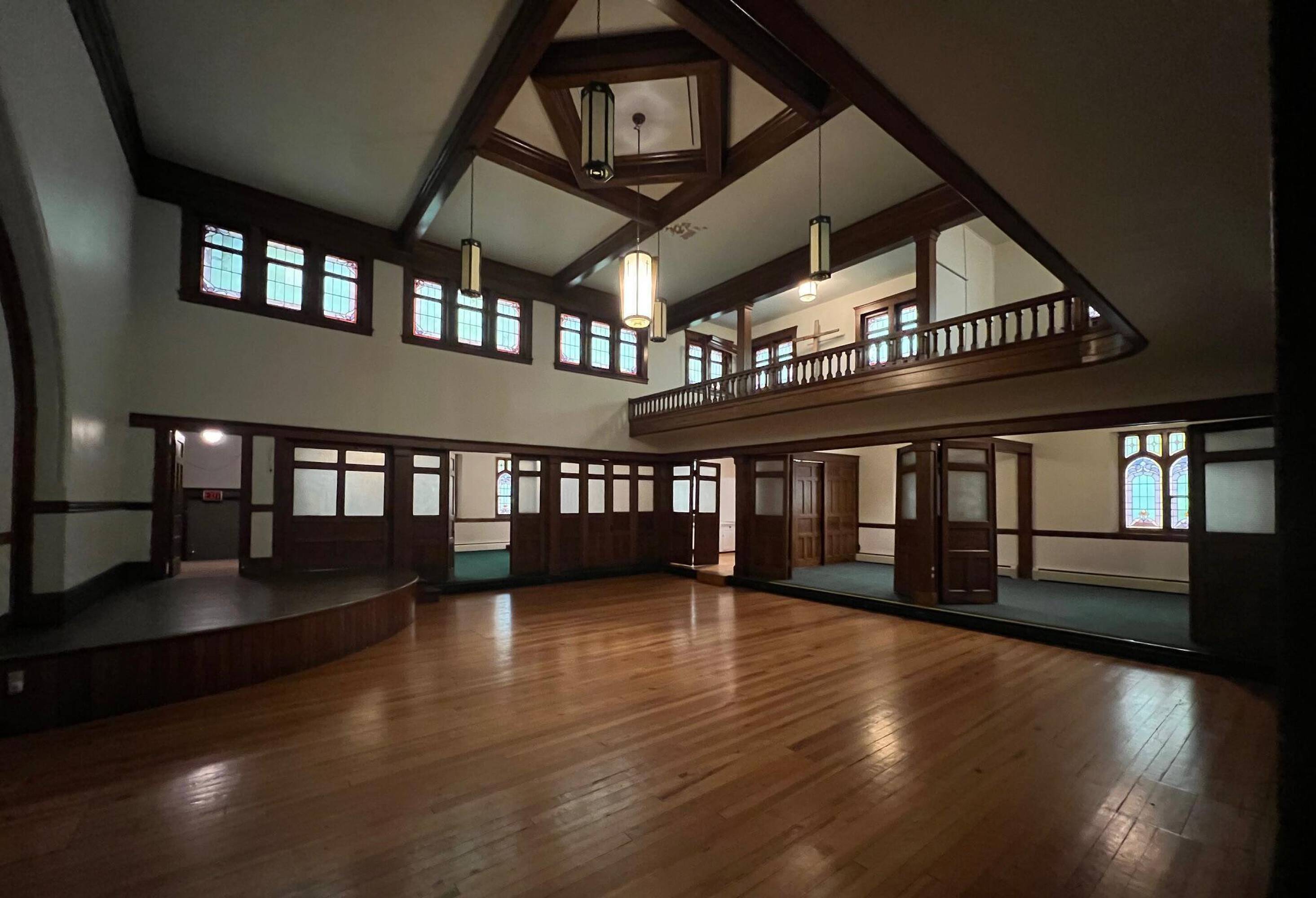 Historical place of worship with flexible spaces and peaceful aura.