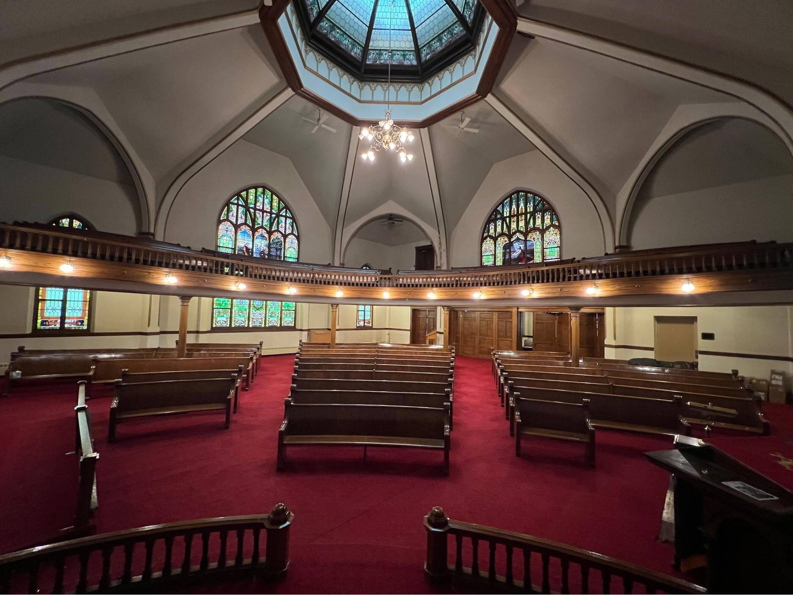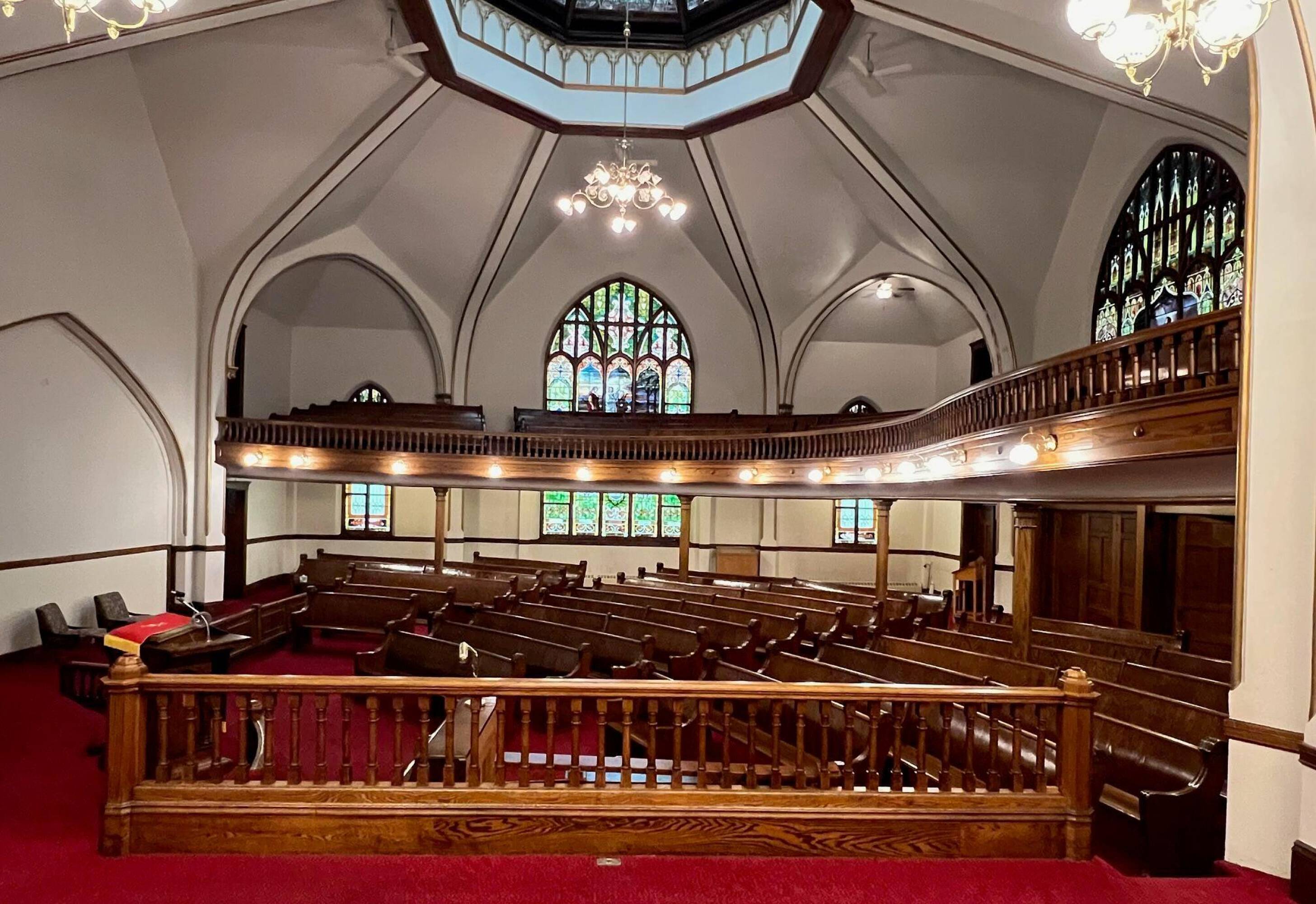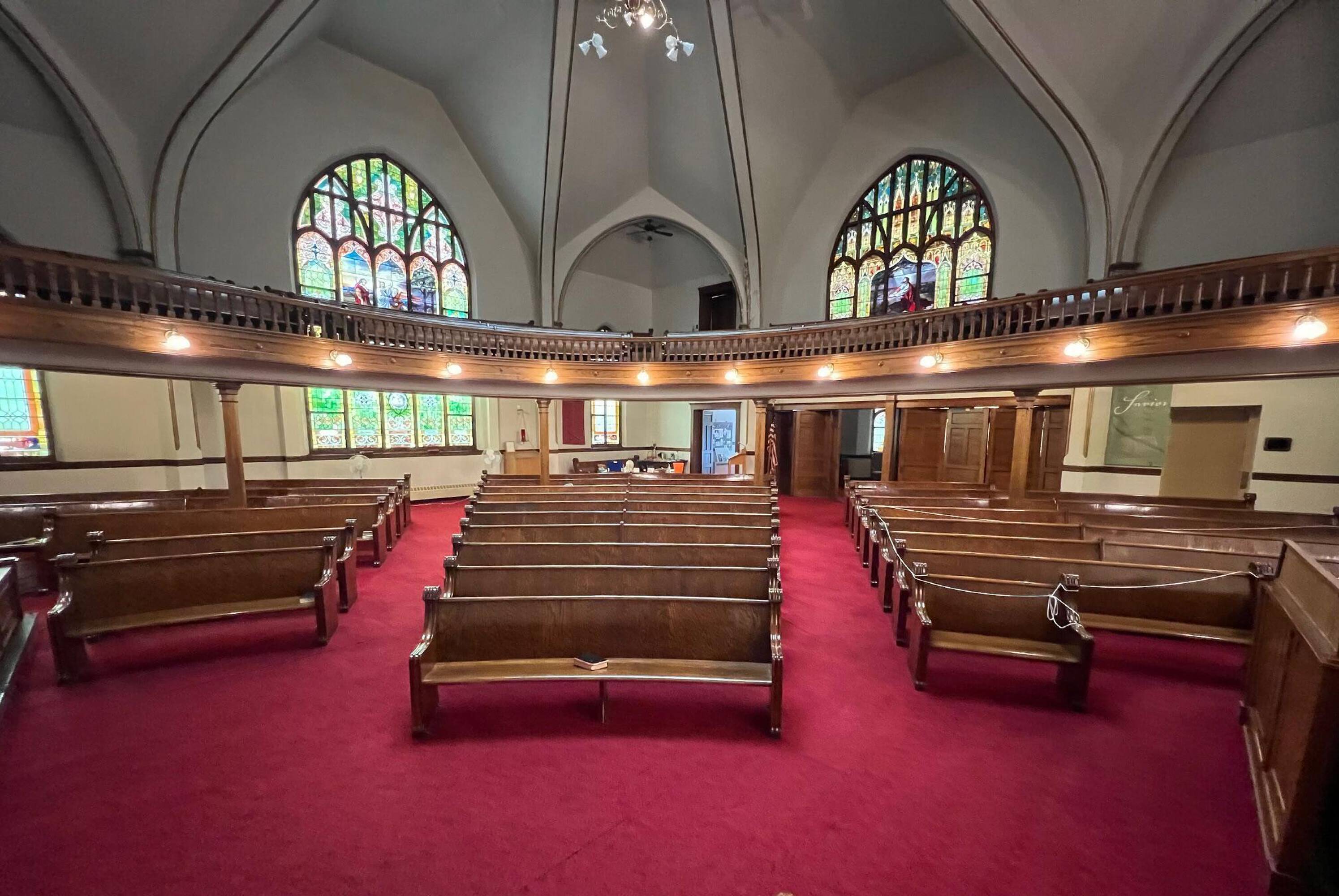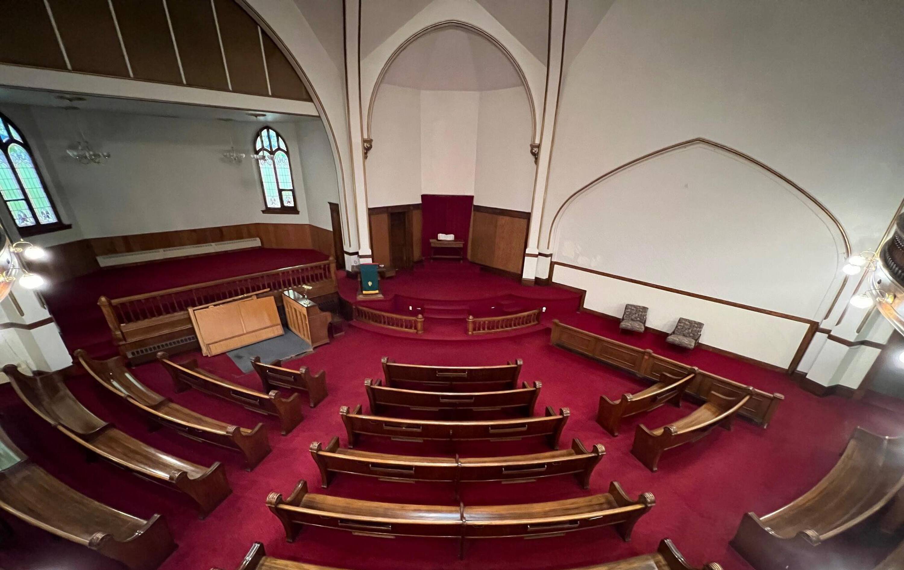 Historical place of worship with flexible spaces and peaceful aura.