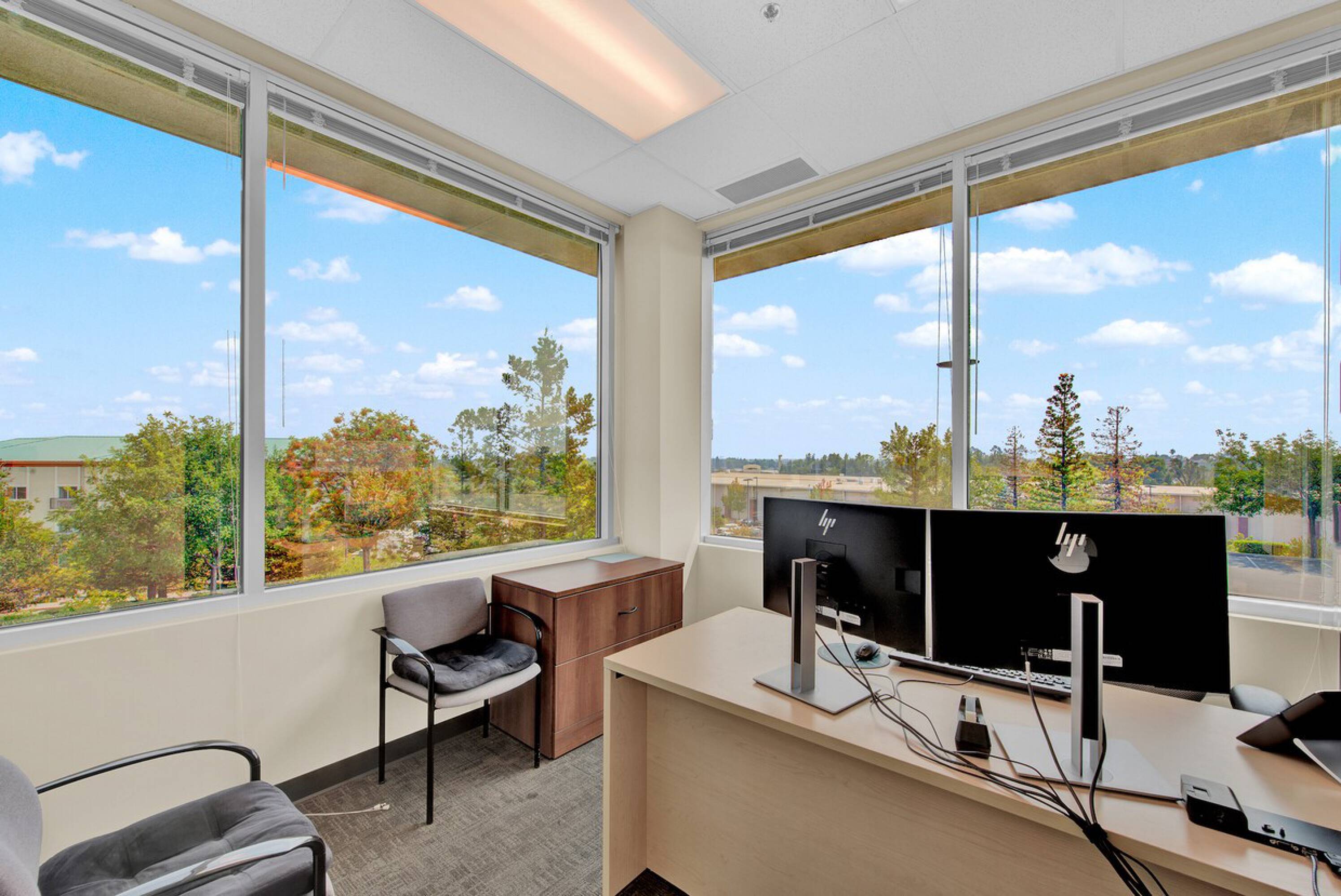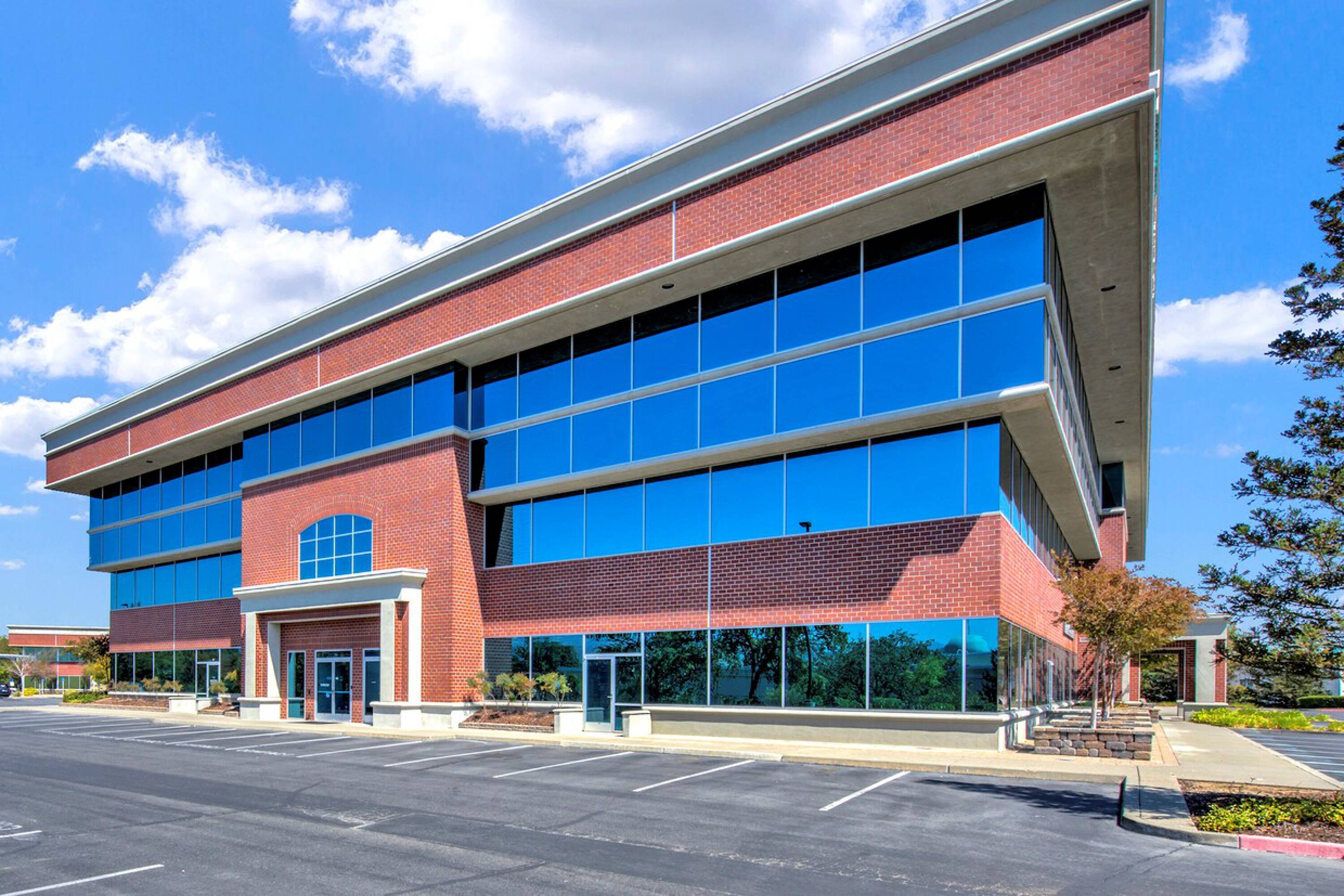 Modern, three-story office building with flexible layouts, available for lease.