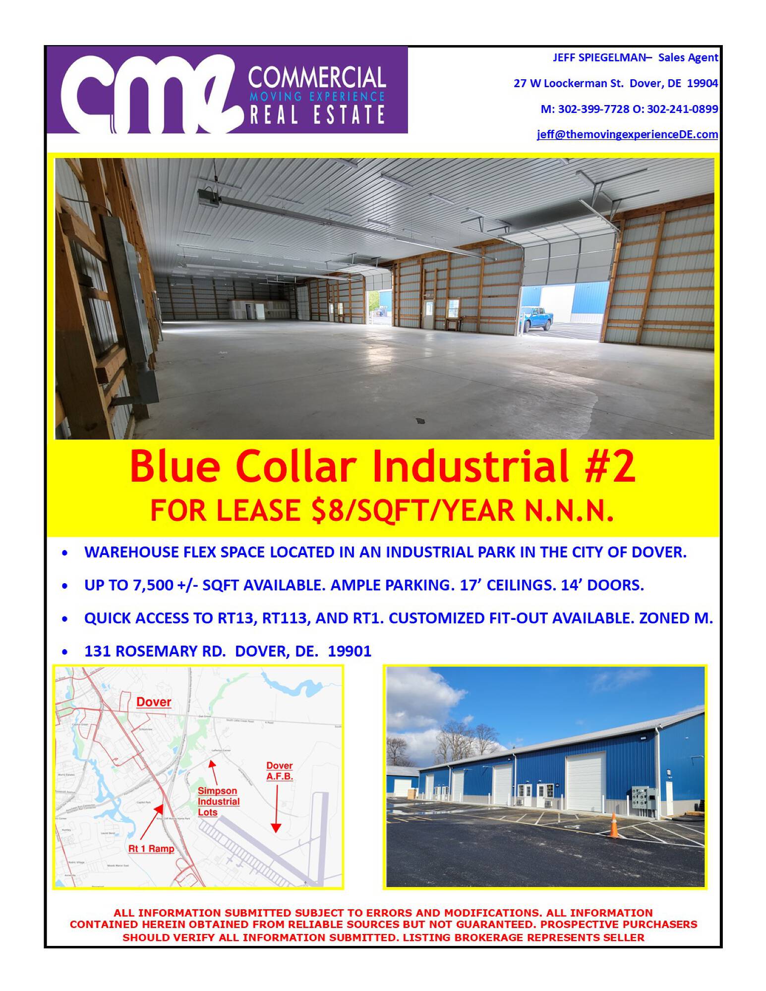 Recently constructed flex warehouse in Dover, DE available for lease.