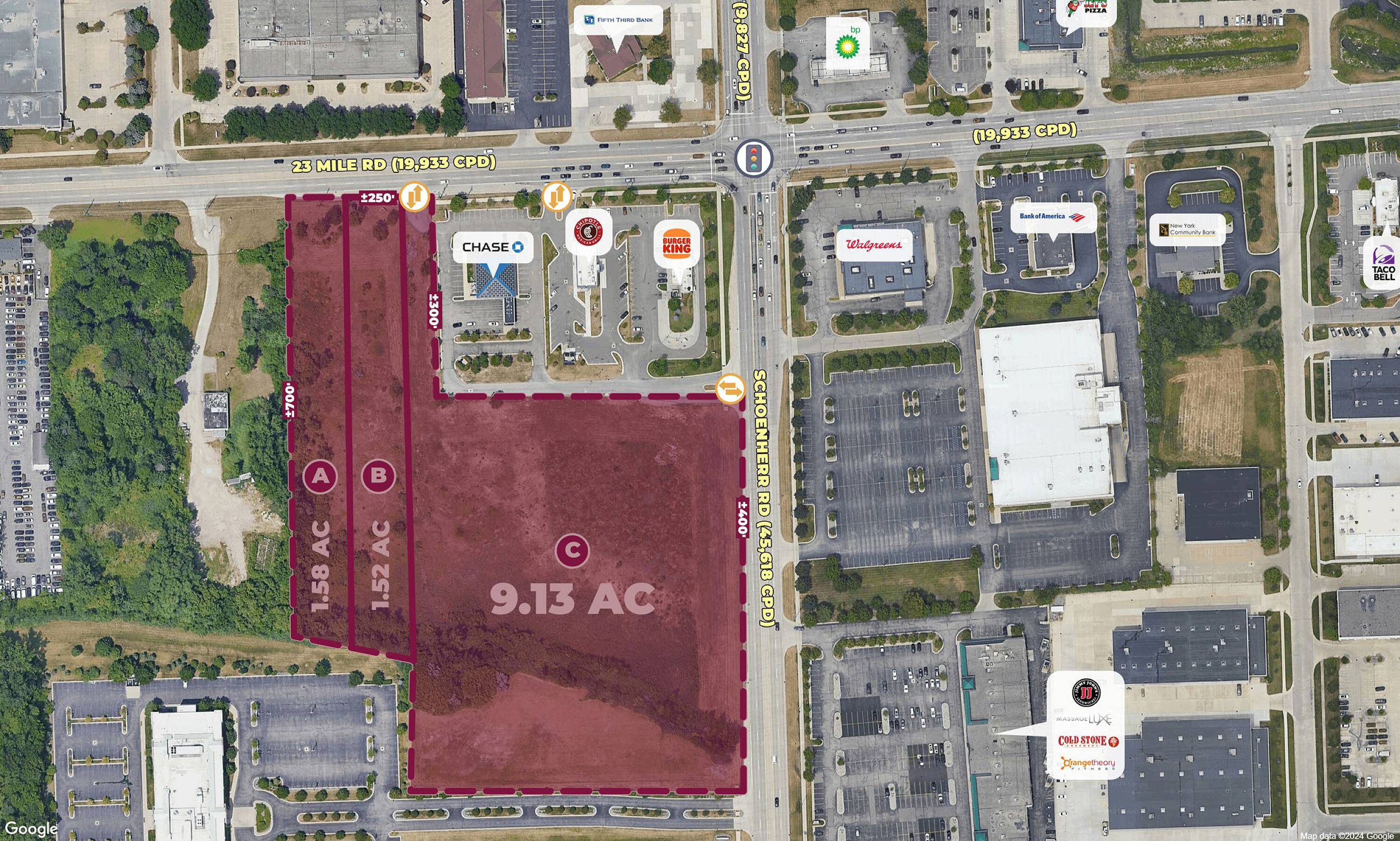 Commercial land available for lease in Shelby Township, Michigan.