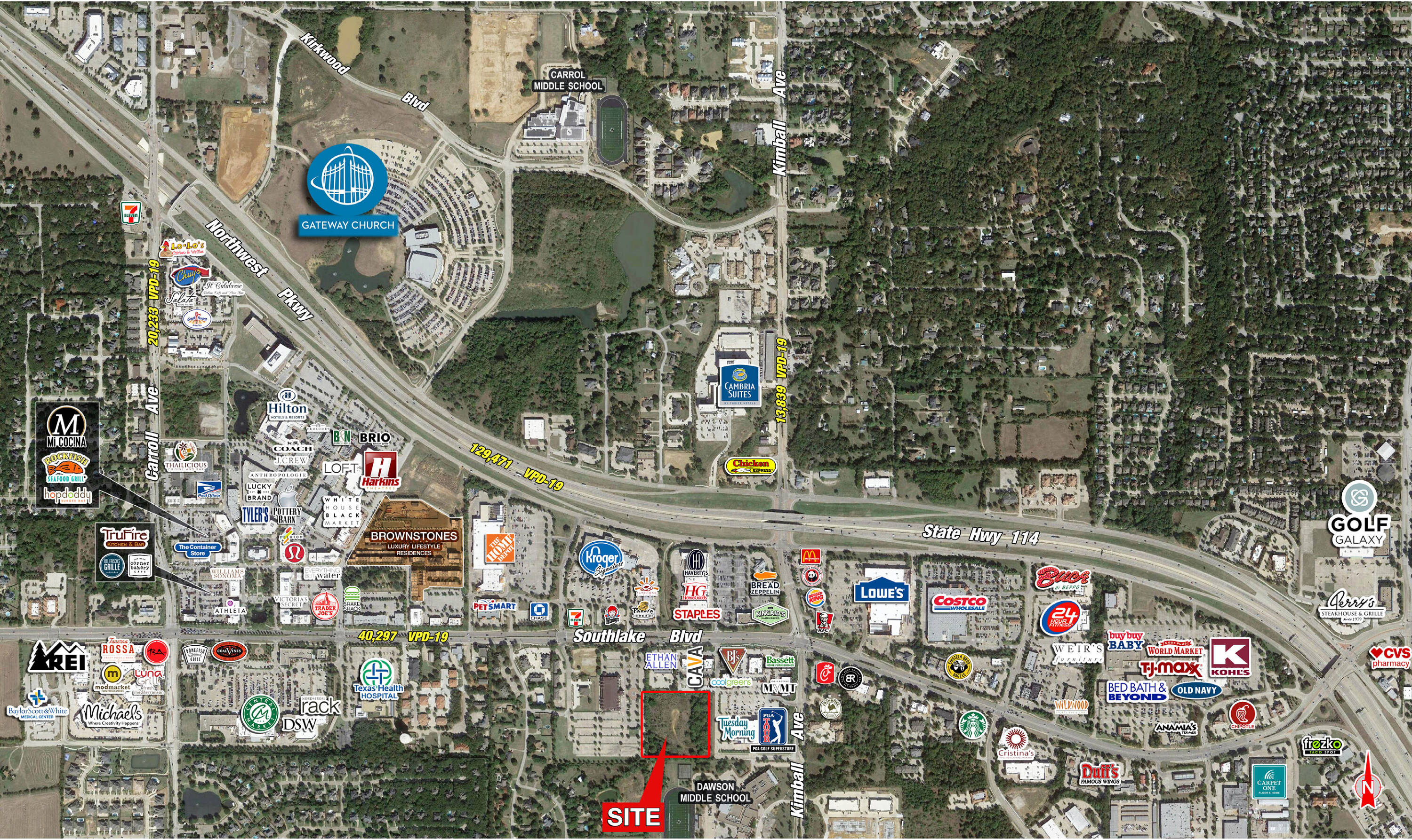 Commercial development site in the heart of Southlake retail area.