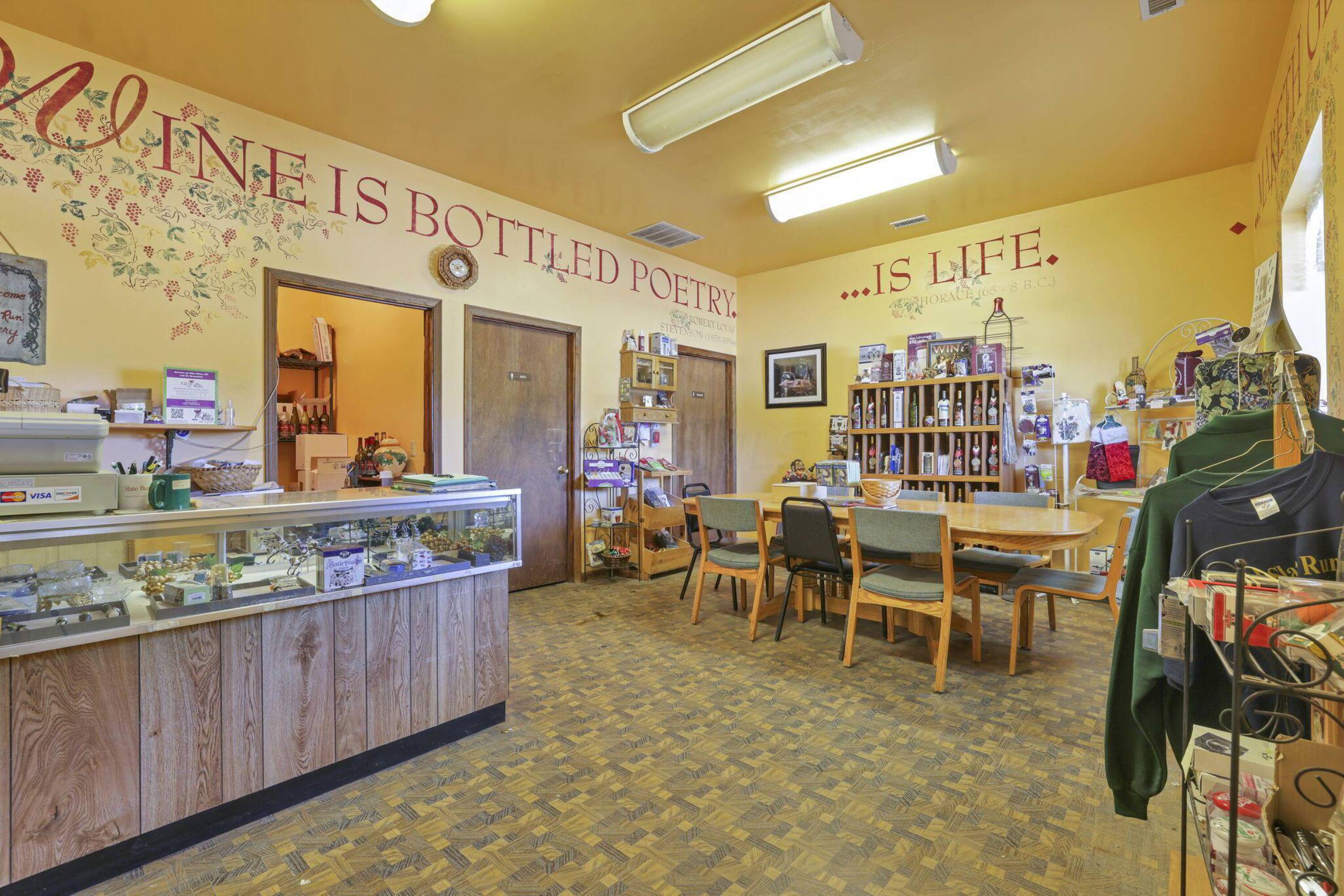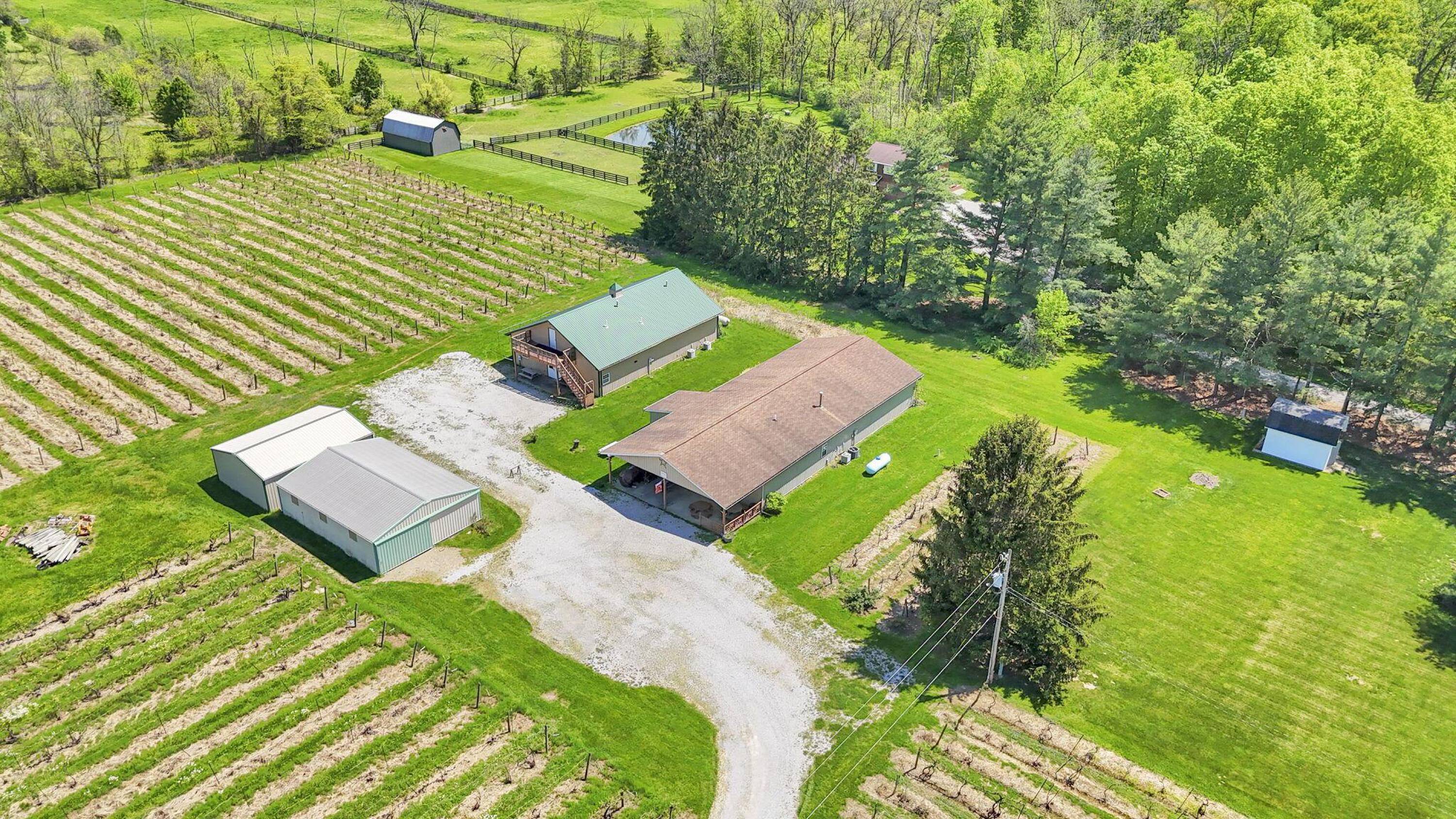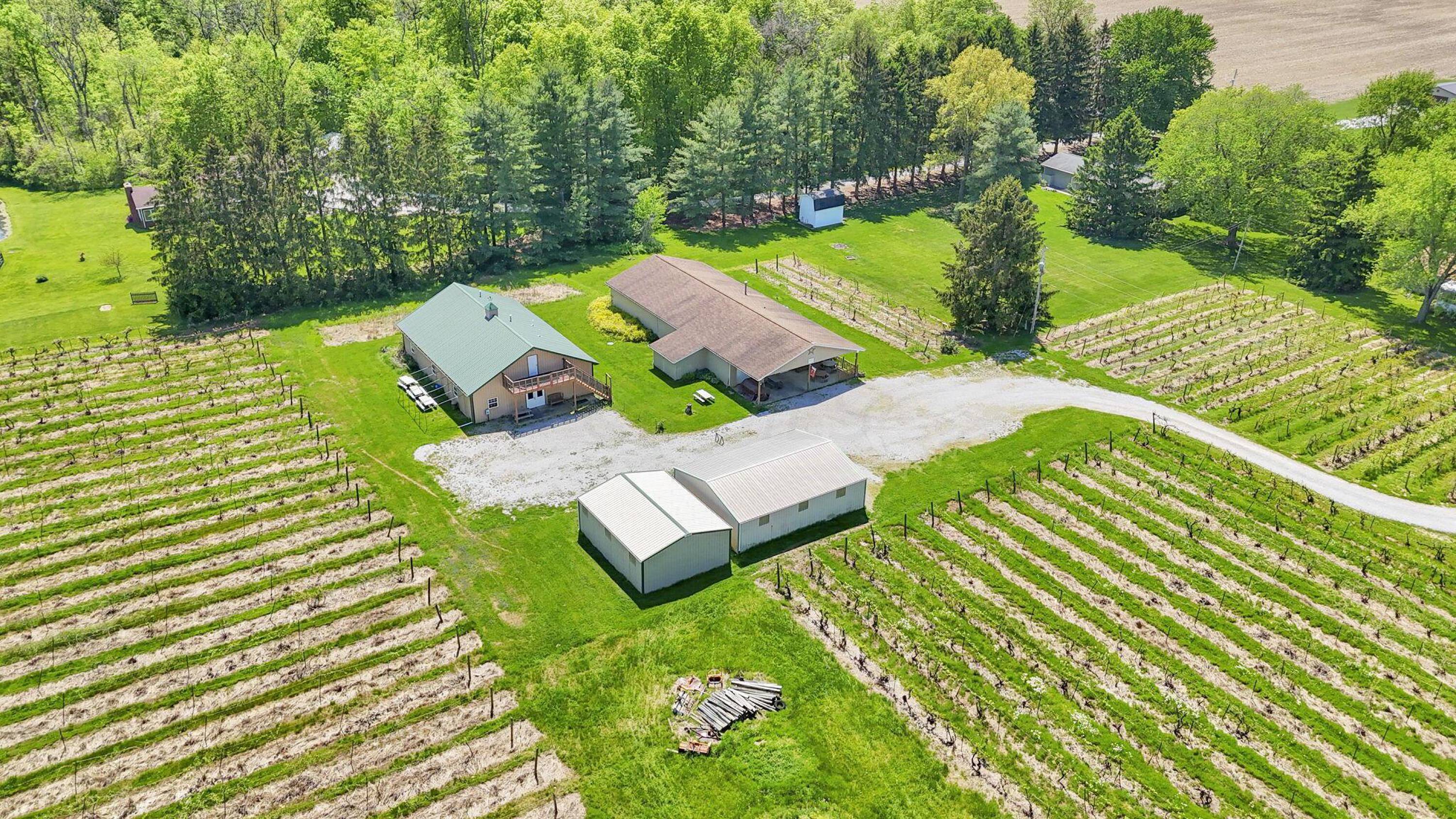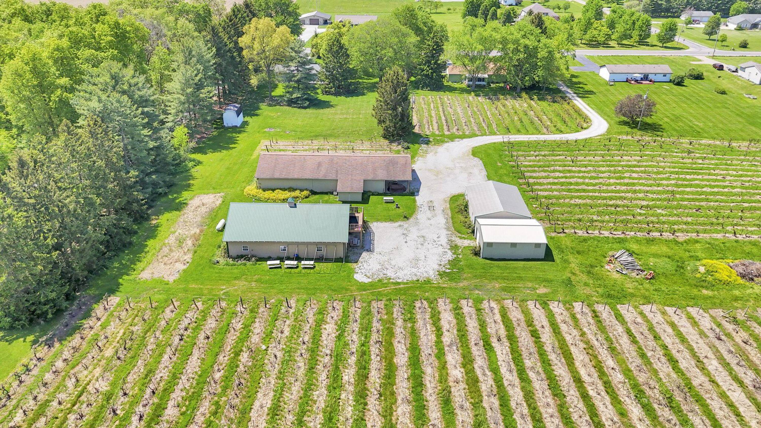 This property features: Established vineyard winery with over 4 acres of vineyards and 60 types of grapes.; Four buildings included: 30x40, 40x80, 40x60, and 24x30.; Tasting room/store with seating, bathrooms, and attached warehouse.