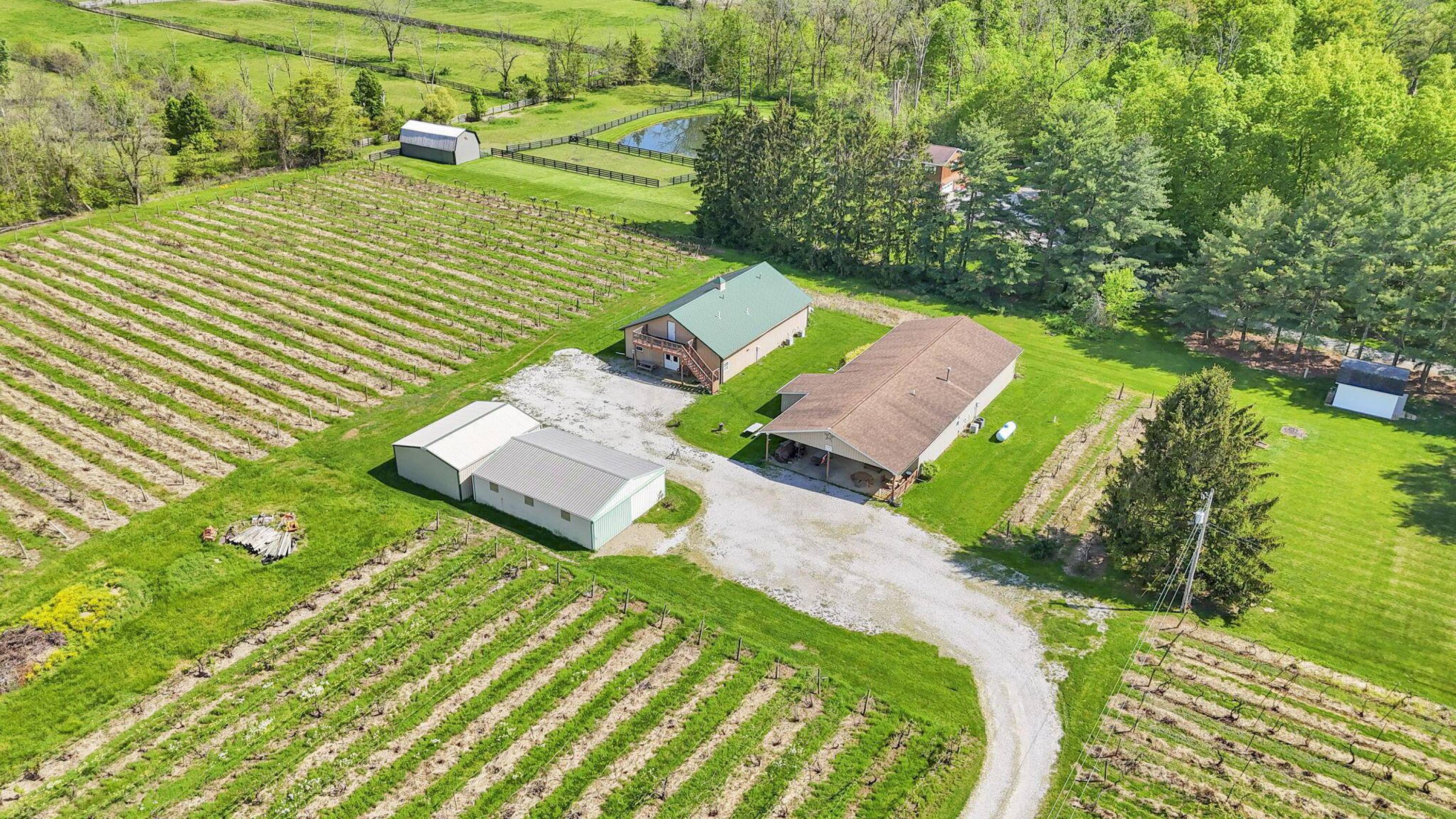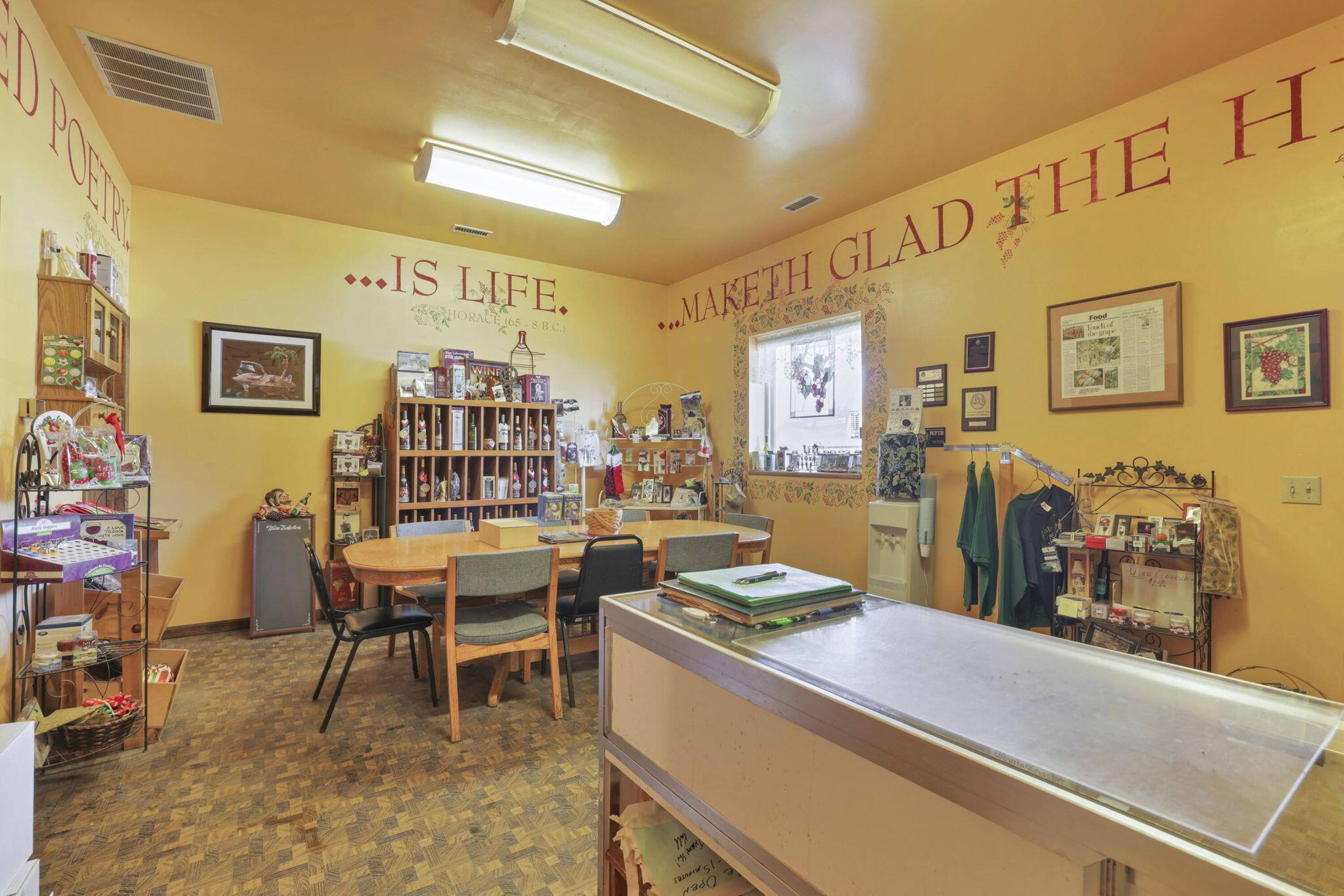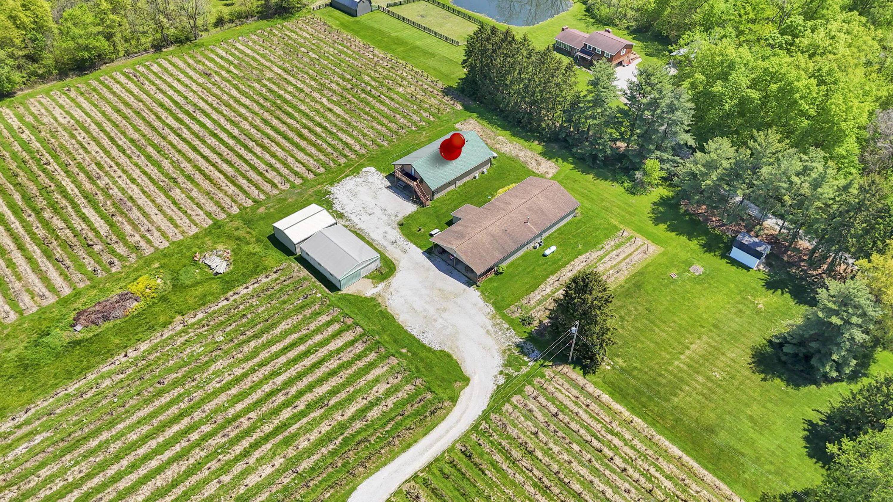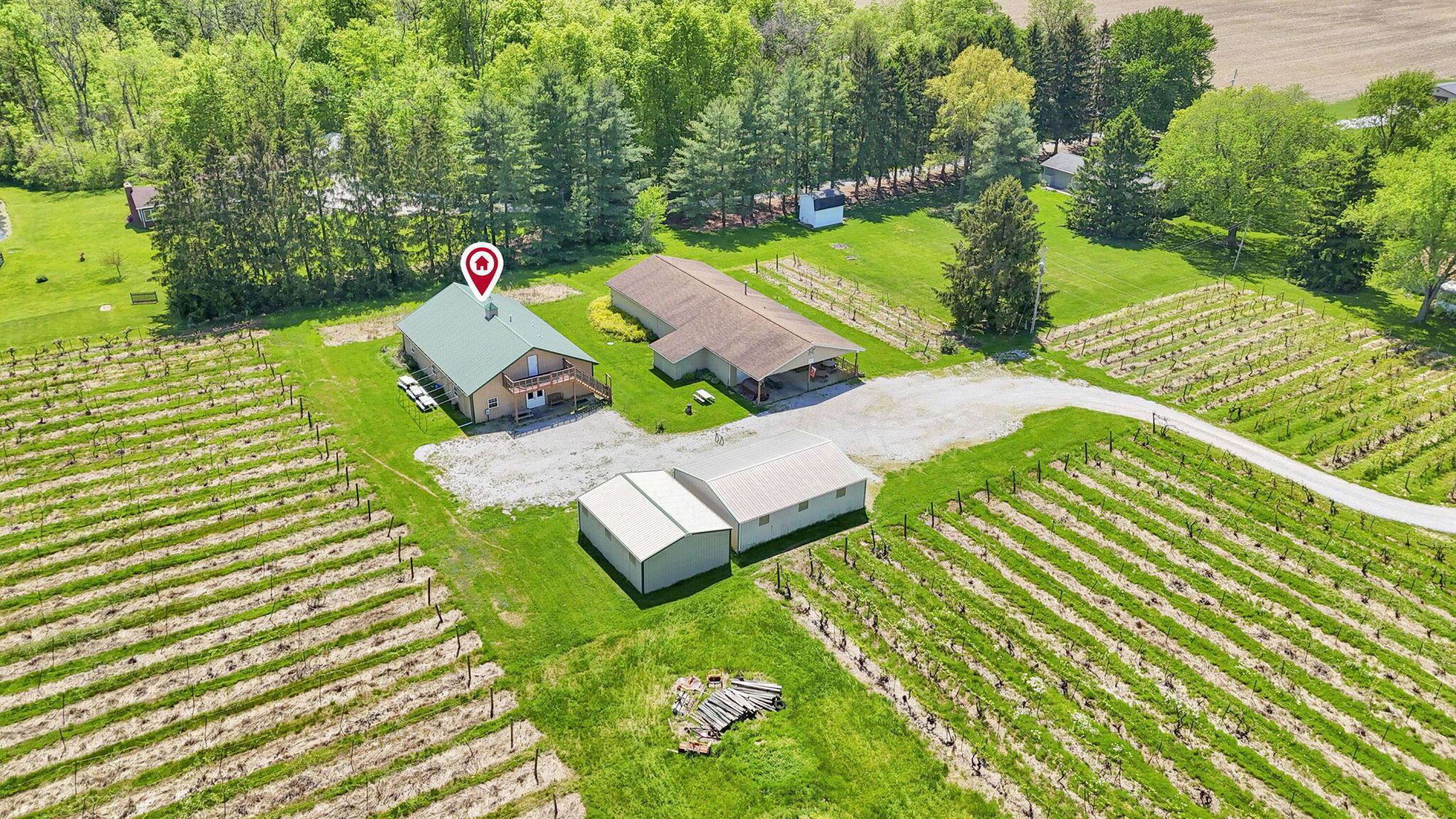 This property features: Established vineyard winery with over 4 acres of vineyards and 60 types of grapes.; Four buildings included: 30x40, 40x80, 40x60, and 24x30.; Tasting room/store with seating, bathrooms, and attached warehouse.