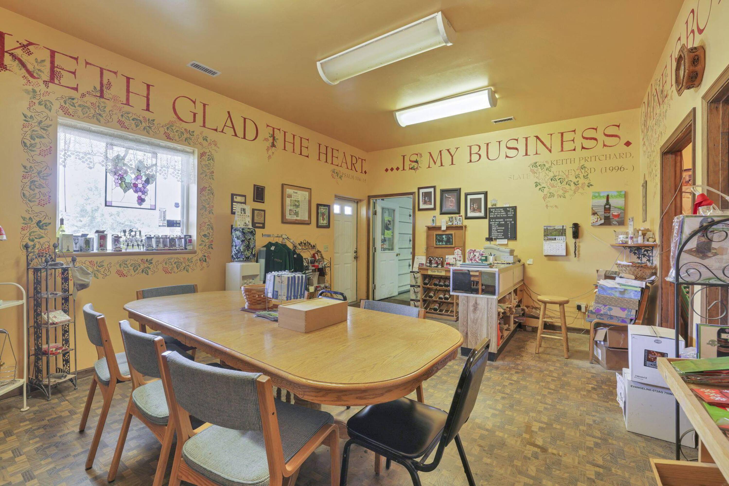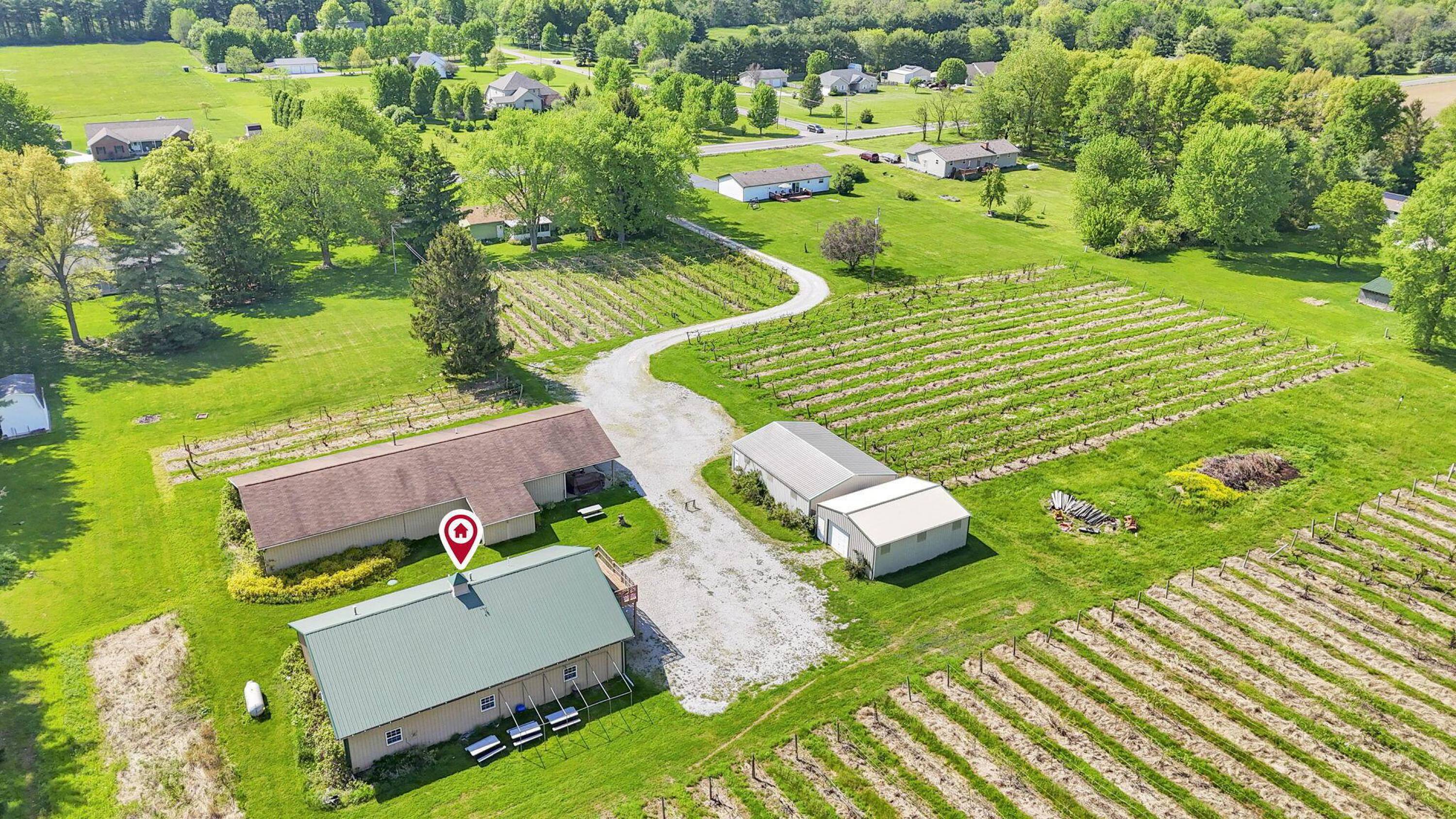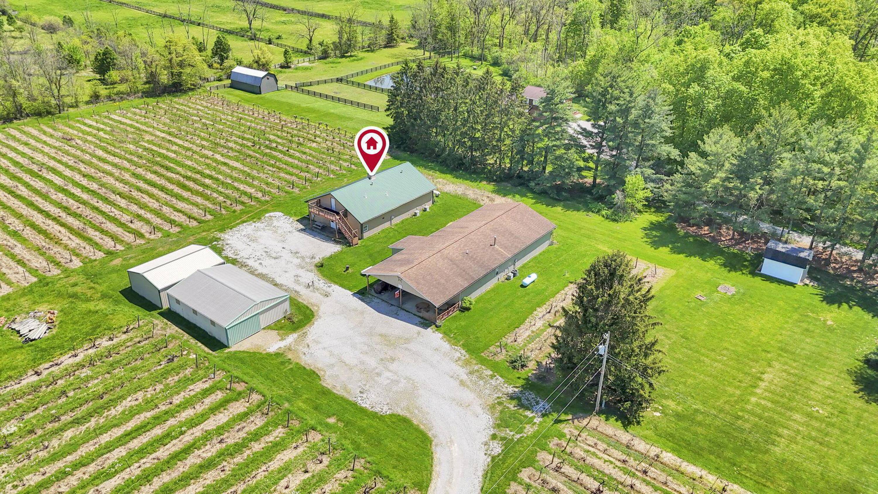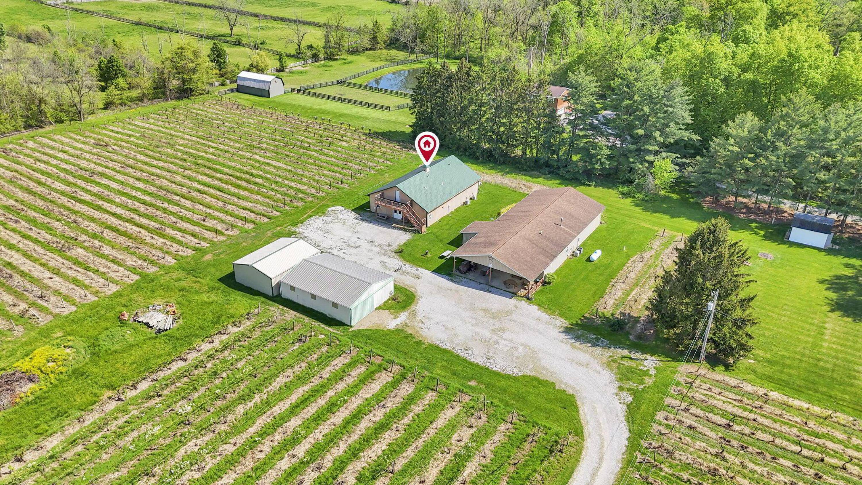 This property features: Established vineyard winery with over 4 acres of vineyards and 60 types of grapes.; Four buildings included: 30x40, 40x80, 40x60, and 24x30.; Tasting room/store with seating, bathrooms, and attached warehouse.
