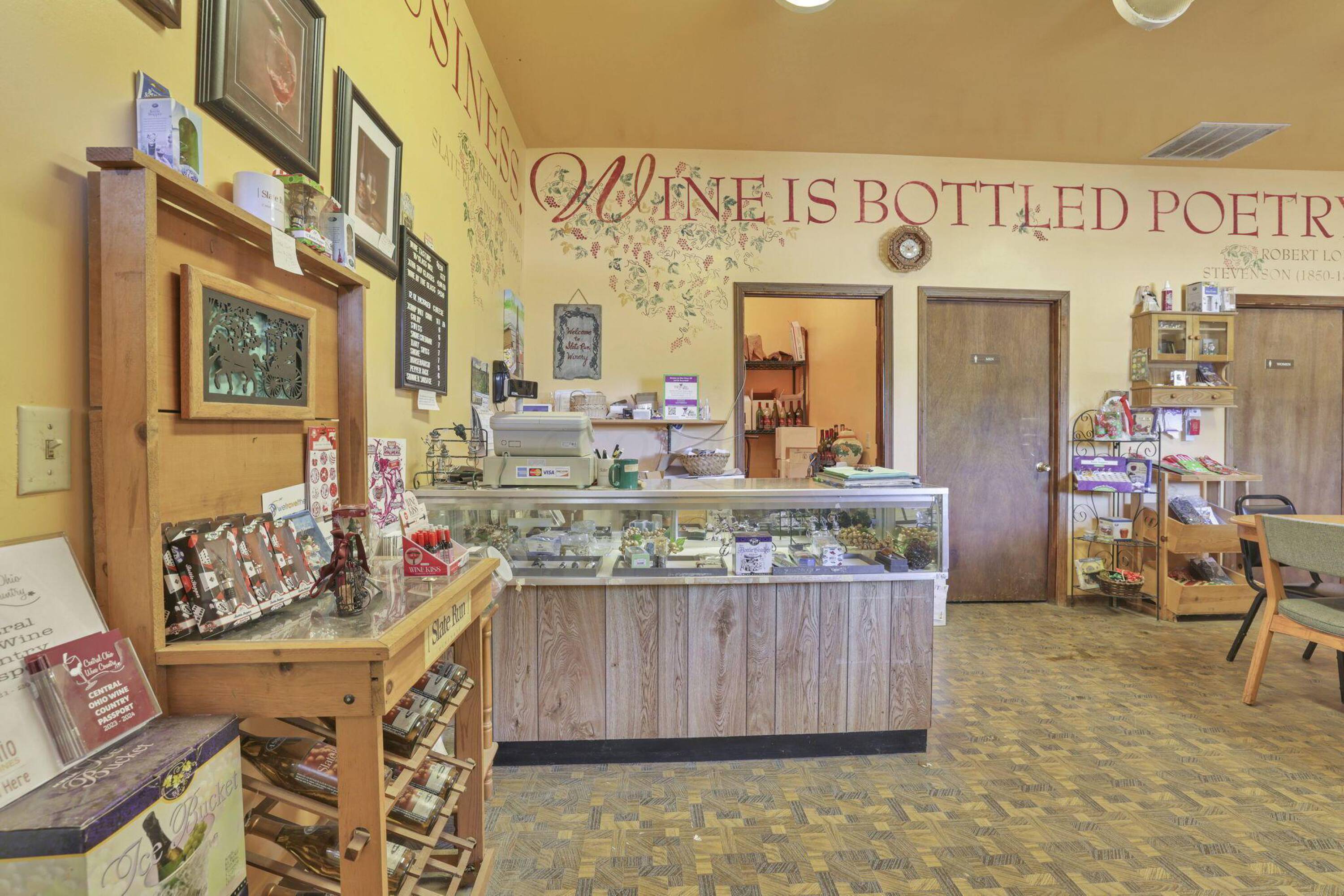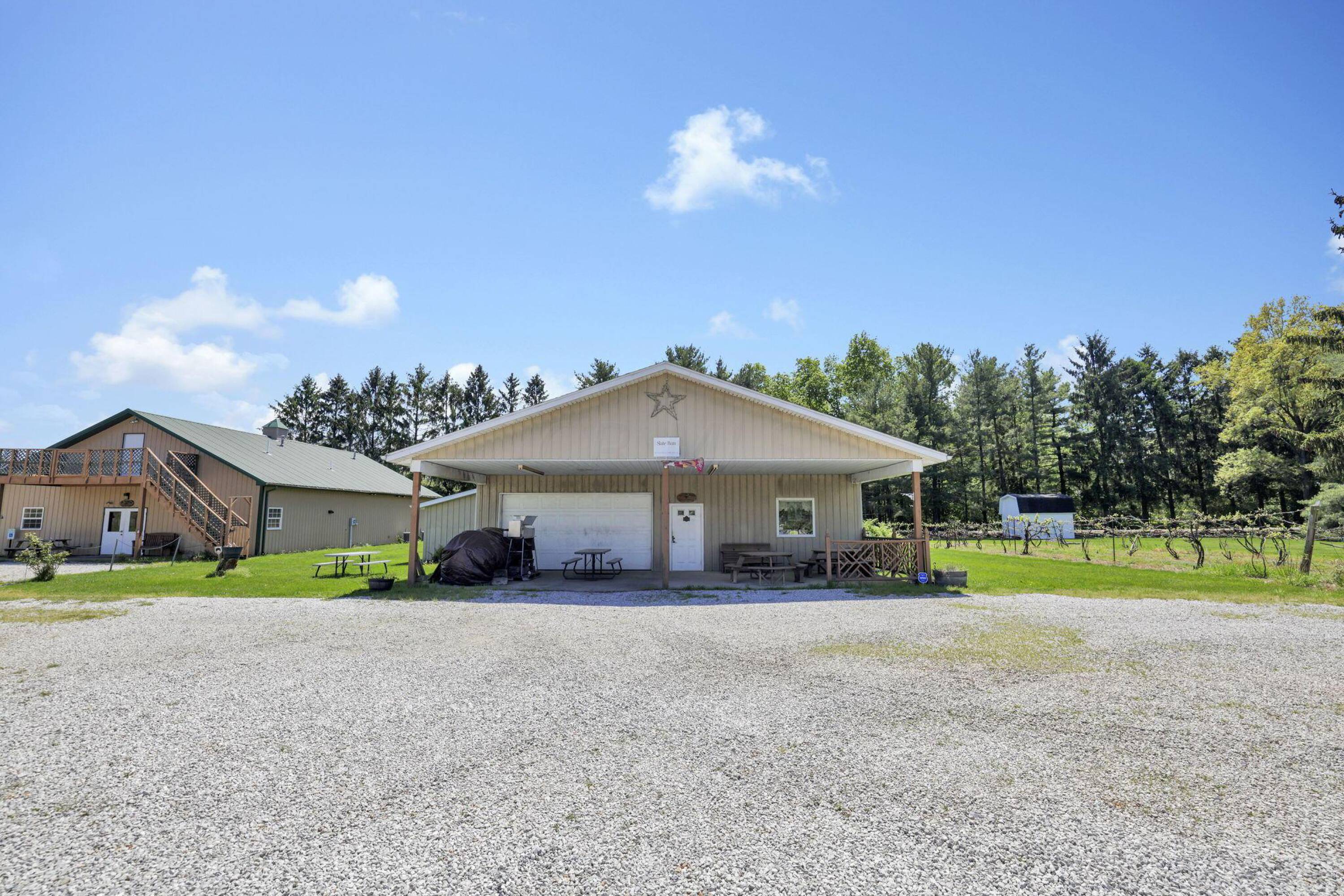 This established Slate Run Vineyard Winery is available for purchase, presenting a unique opportunity with over 4 acres of vineyards featuring over 60 types of grapes. The property includes four buildings with dimensions of 30 x 40, 40 x 80, 40 x 60, and 24 x 30. The tasting room and store provide seating, bathrooms, and an attached warehouse. A second building, previously used as an event center, offers rental potential. Buildings three and four are currently utilized for storage. The property is conveniently located across from Slate Run Metro Park and includes an easement off of Alspach Road. The seller is willing to assist the new owner during the transition, ensuring a smooth handover. This property presents opportunities for various ventures, including an event center or music venue.