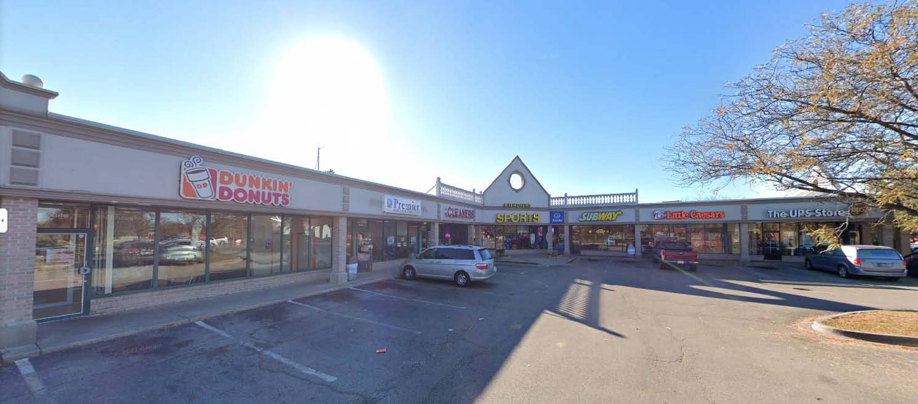 Shopping center with retail and office spaces for lease.