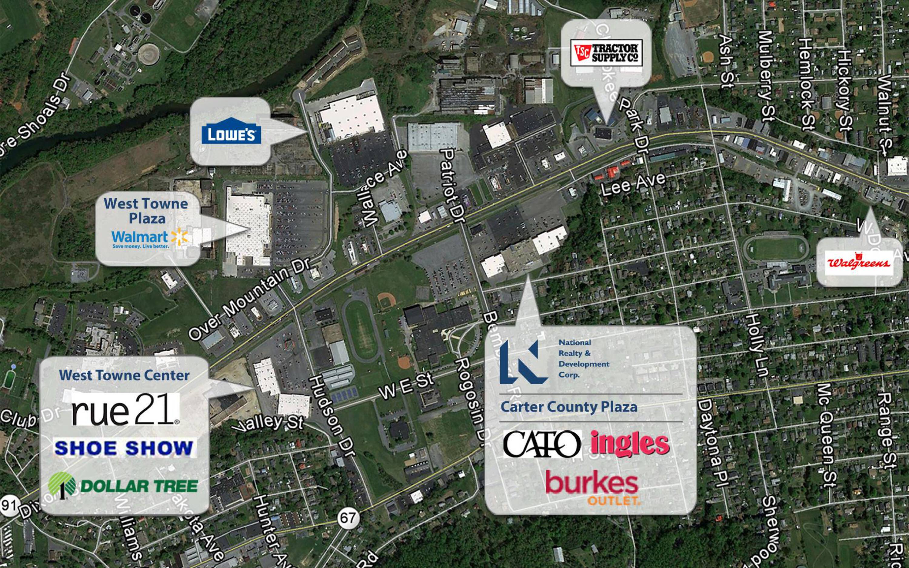 Retail space available for lease in Elizabethton, Tennessee.