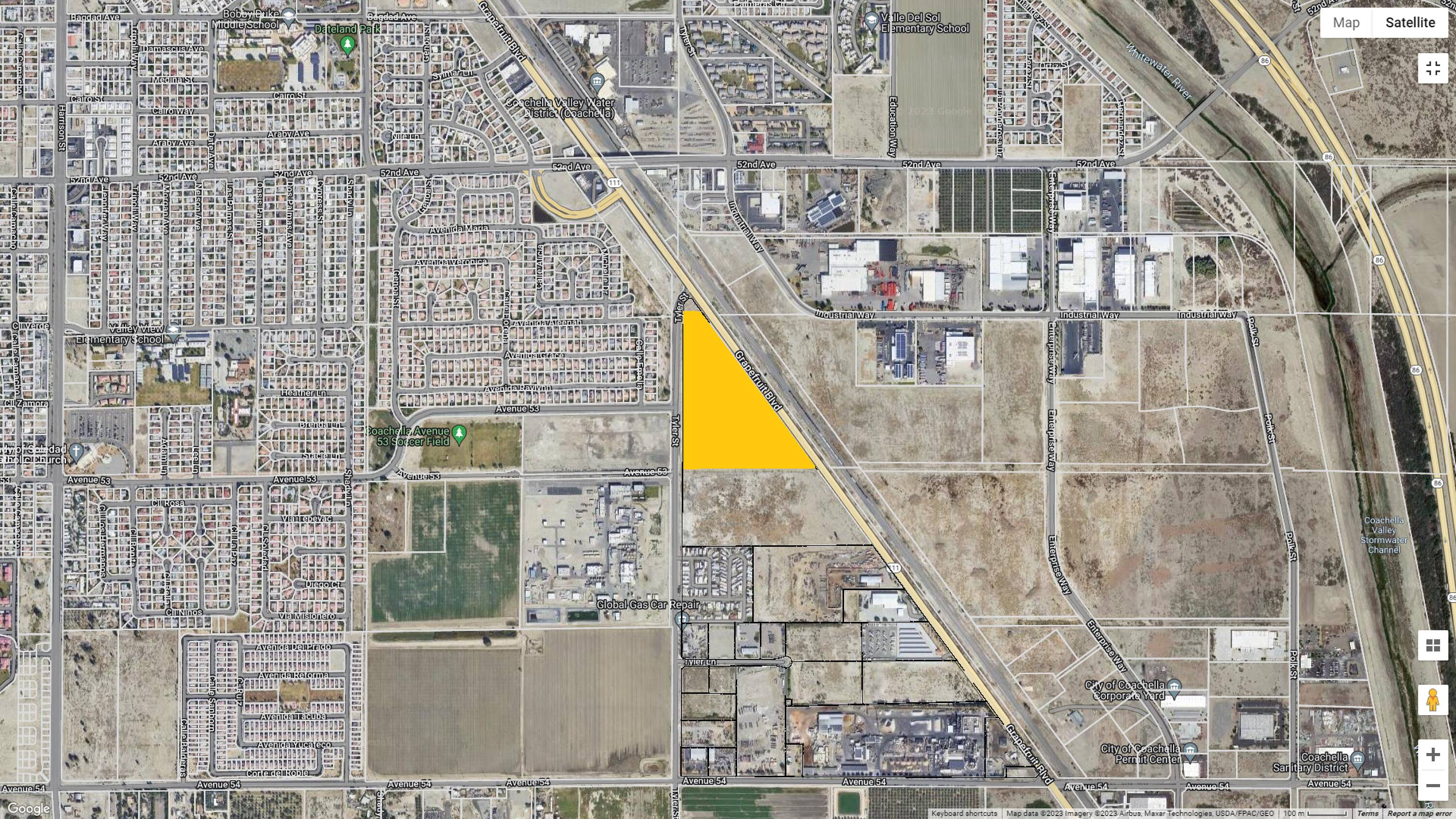 This commercial land offers valuable frontage on Highway 111, along with additional frontage on Tyler Street. Water and sewer utilities are accessible on Tyler Street. The property's location benefits from area events such as the Coachella Music and Arts Festival, Stagecoach Music Festival, BNP Paribas Tennis Tournament, and the International Horse Park. The land use designation is Suburban Retail District, intended to provide a concentration of retail businesses, including large format retailers, while accommodating parking needs. This district aims to offer pedestrian connectivity and town-scale buildings along corridor frontages, bringing shopping amenities and fiscal resources to Coachella.