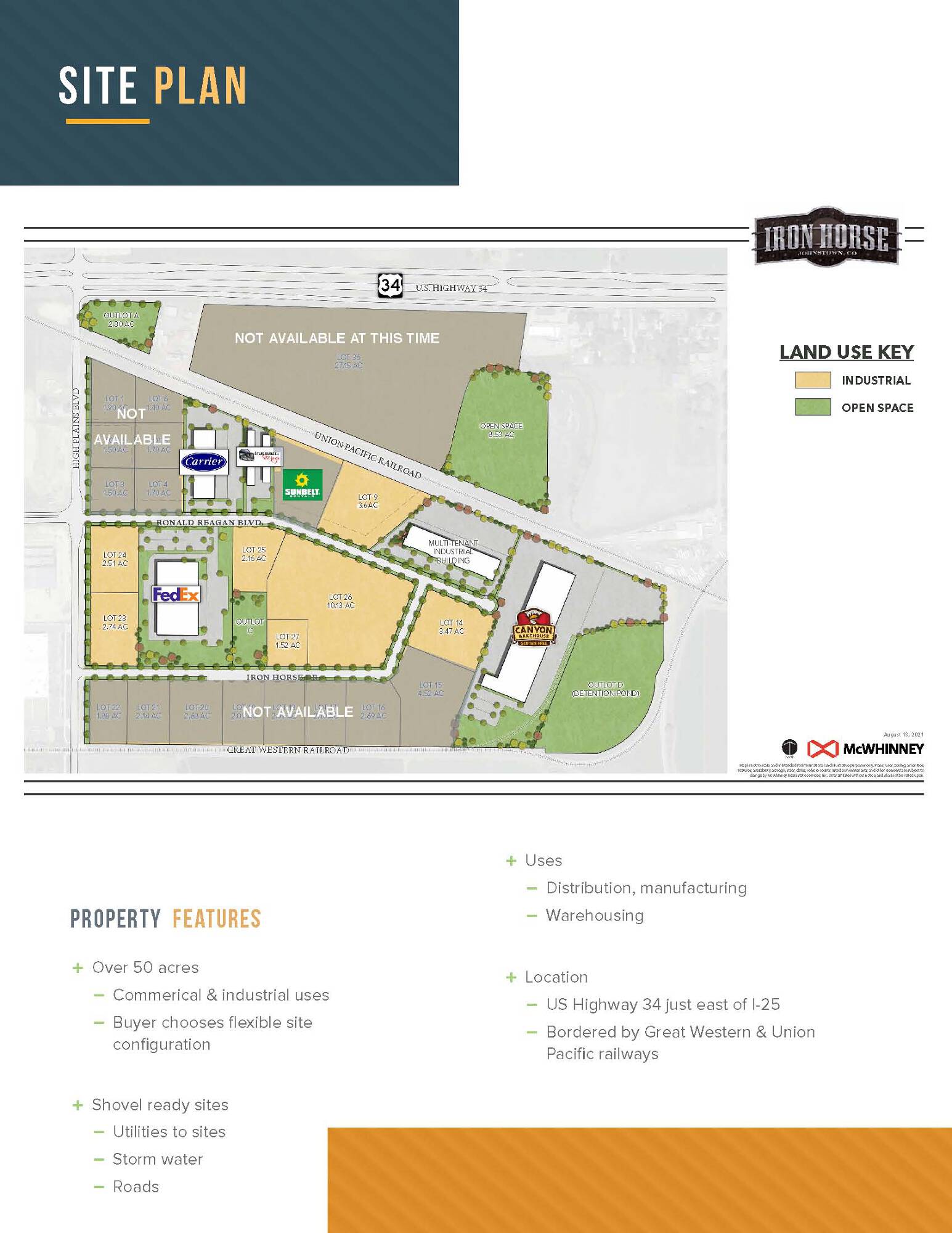 Land available for lease, sale, or build-to-suit.