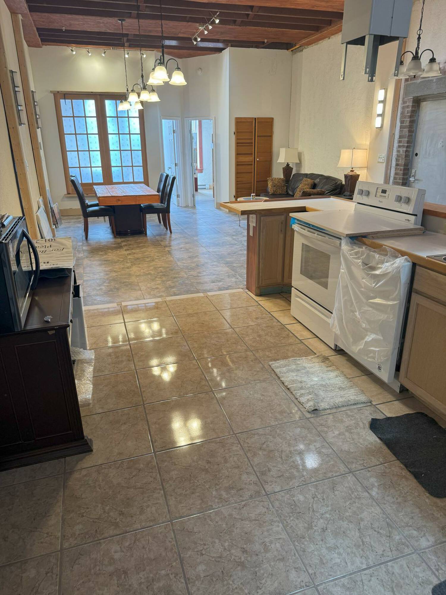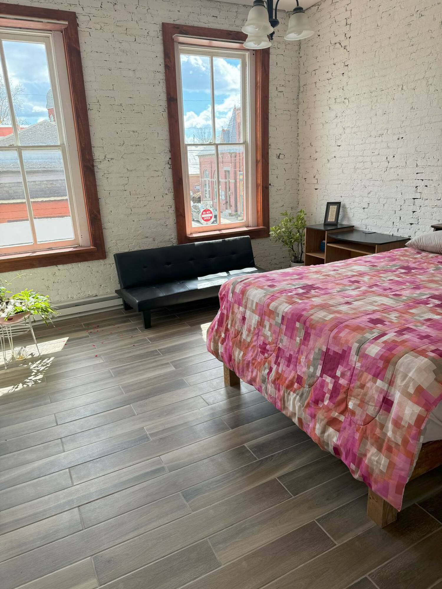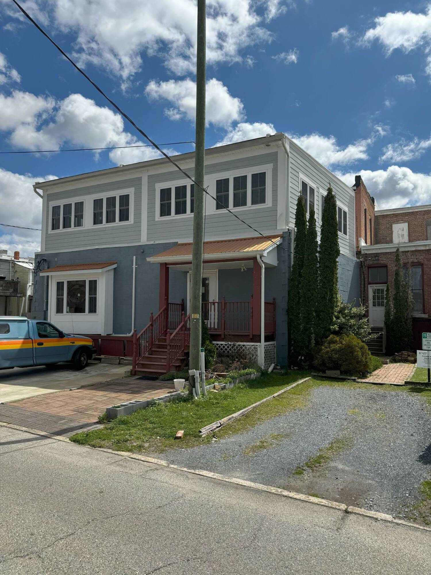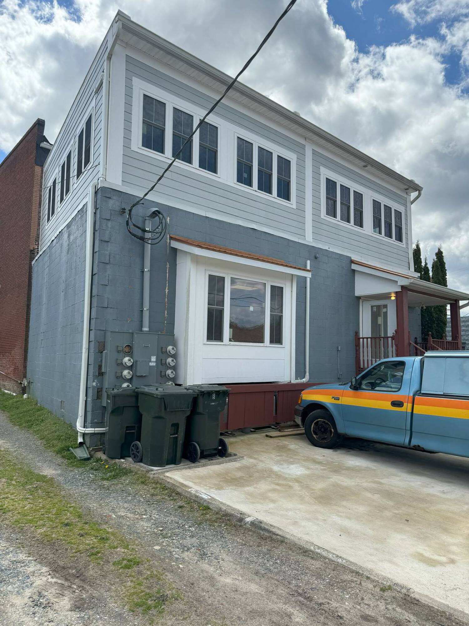 Renovated mixed-use building with commercial and residential units.