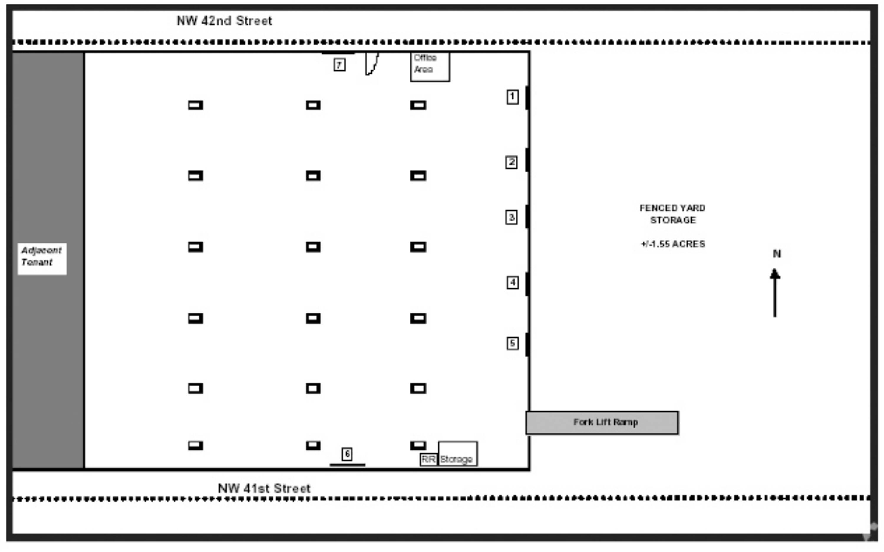 This freestanding showroom/warehouse offers between 50,000 and 118,350 square feet of space on a 5-acre lot. The property includes 18,350 square feet of showroom/office space and features 14 dock-high doors along with one double-wide ramp. The building has a twin-T concrete roof and ceiling heights ranging from 20 to 21 feet. It is fully sprinklered and has column spacing of 33' x 42'. The location provides exposure and access to Milam Dairy, with a daily vehicle traffic count exceeding 36,000. Situated less than 1 mile from Miami International Airport (MIA), the property also features heavy power, making it suitable for refrigeration or coolers. It is also ideal for an indoor pickleball or sports facility.