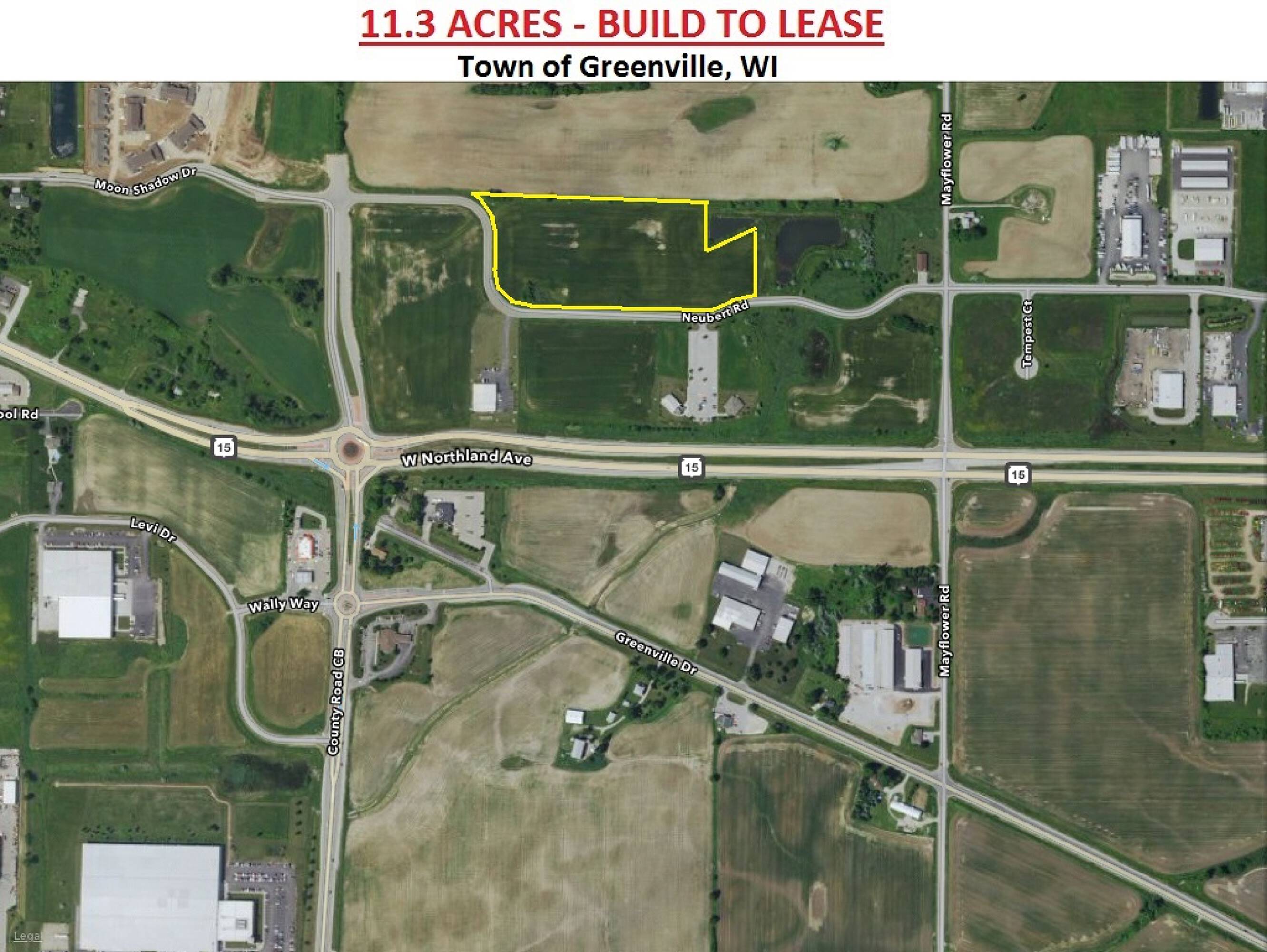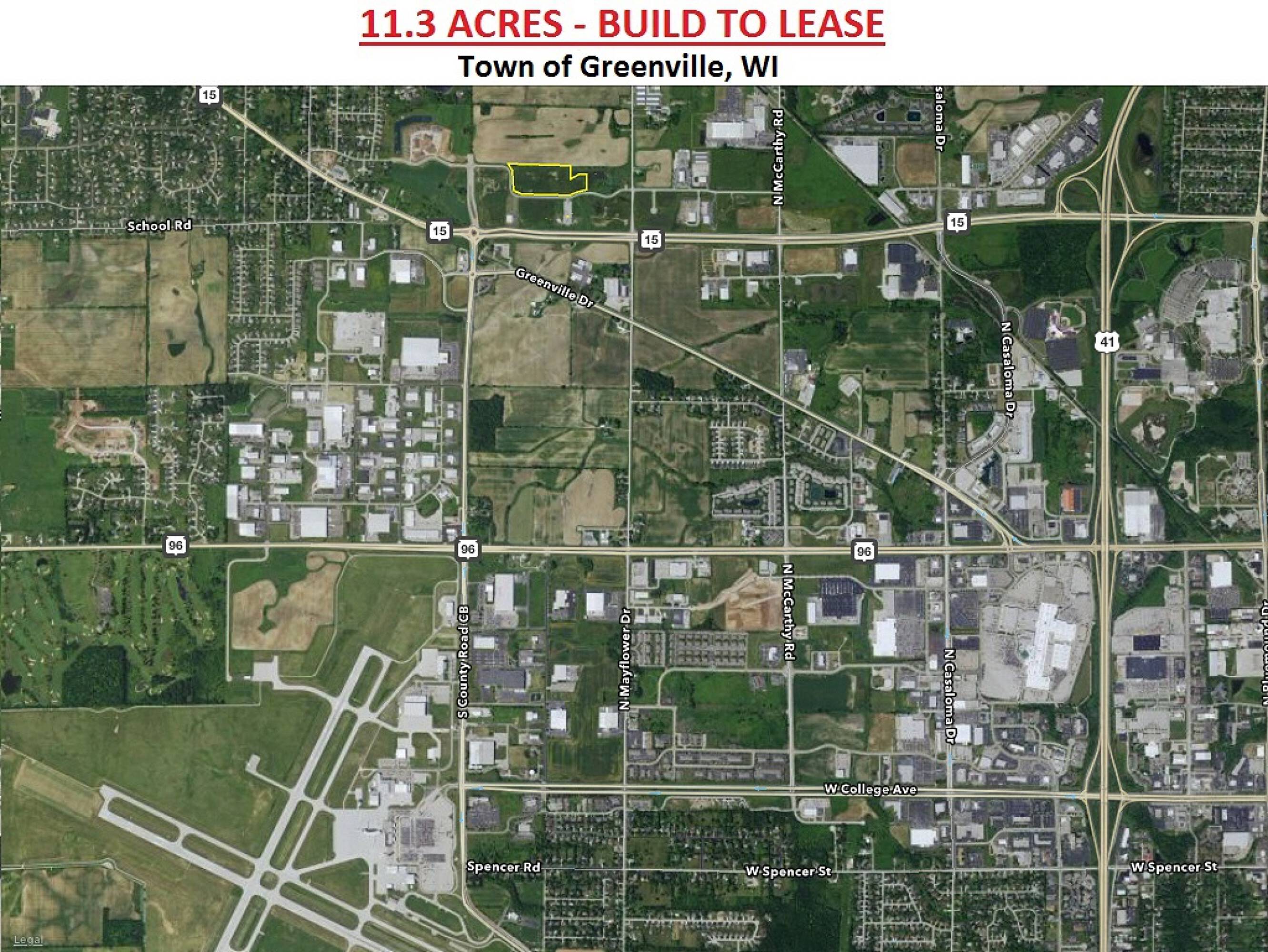 Improved industrial land available for lease in Greenville, Wisconsin.