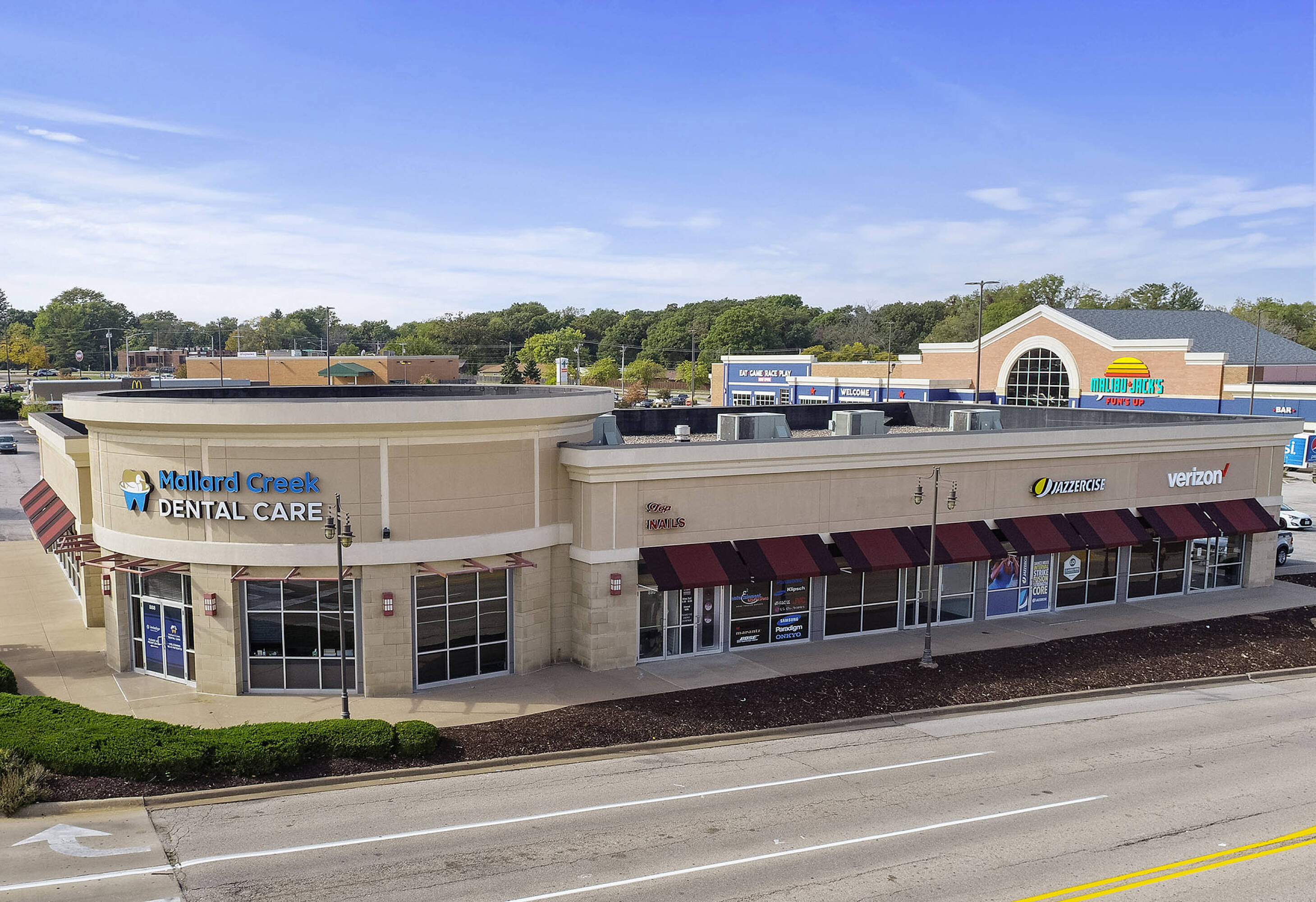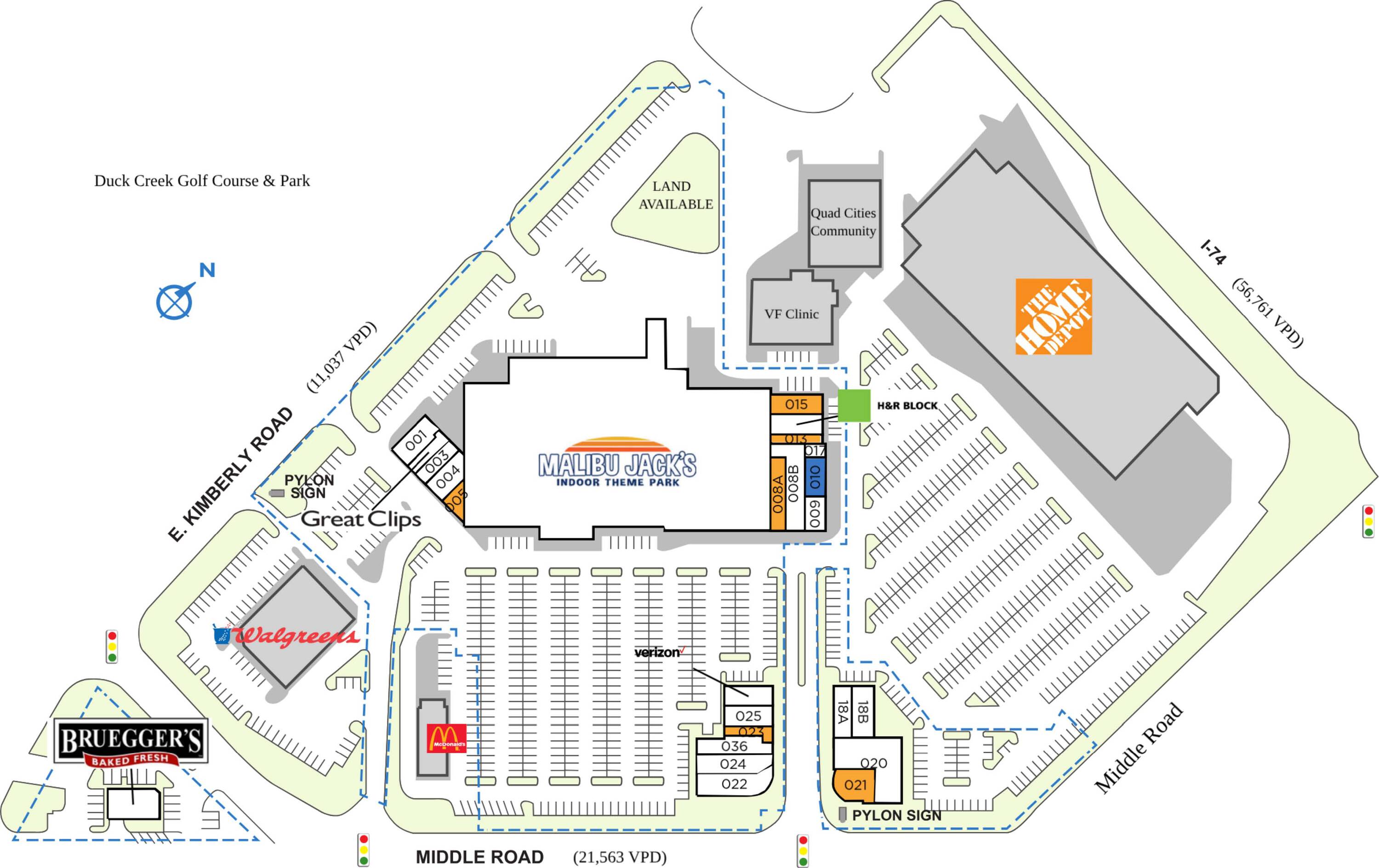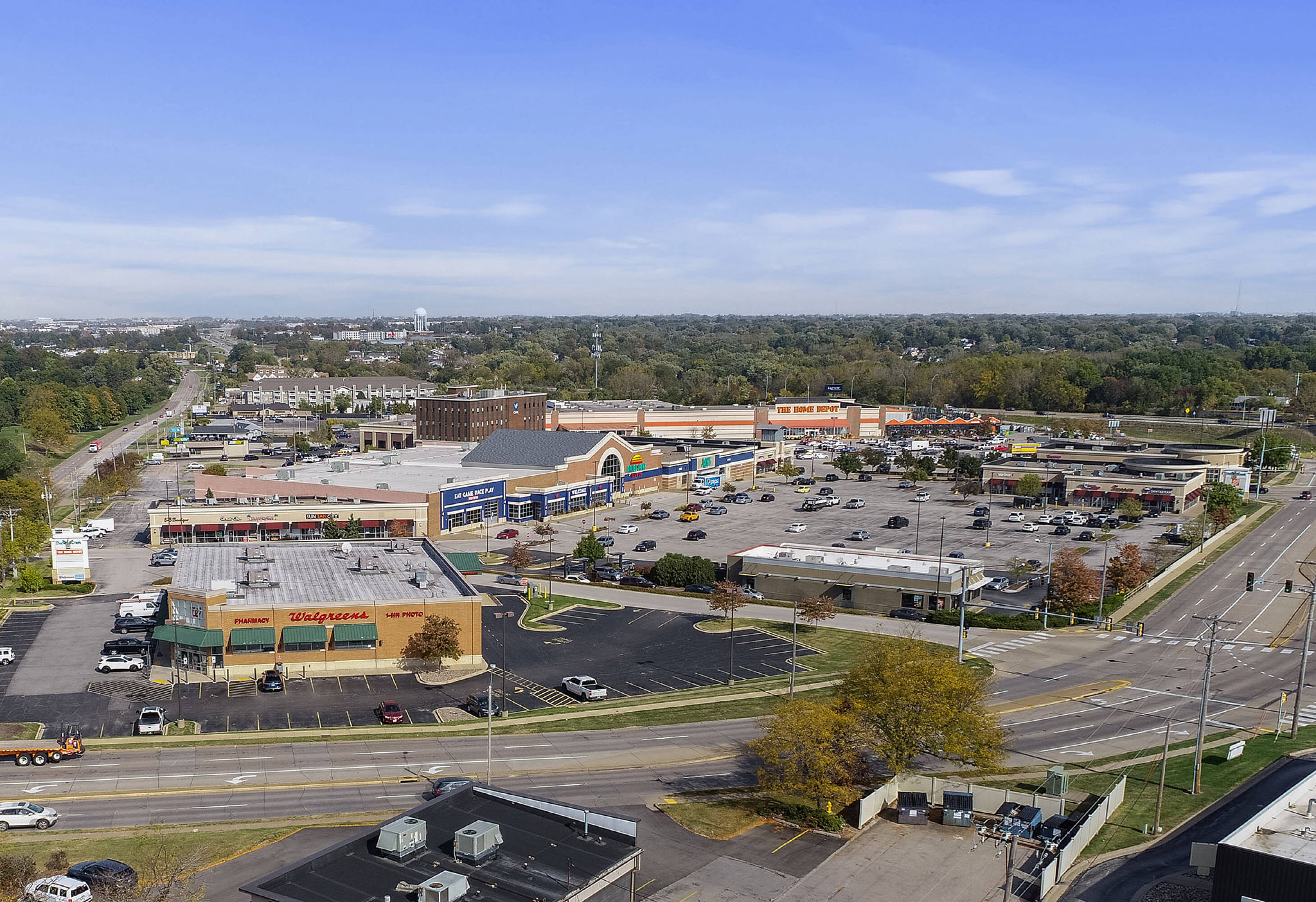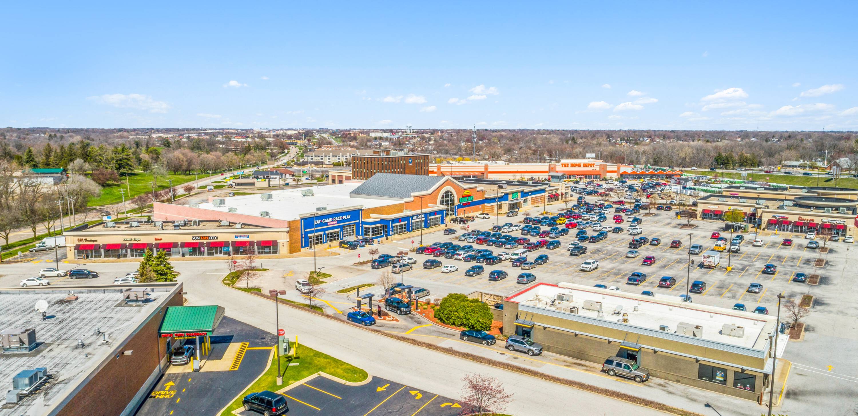 This property features: High traffic location: Over 89,000 vehicles per day due to its proximity to I‑74.; Shadow‑anchored by Home Depot and Walgreens, driving consistent customer visits.; Diverse tenant mix: Includes national and local retailers, such as Malibu Jack's.