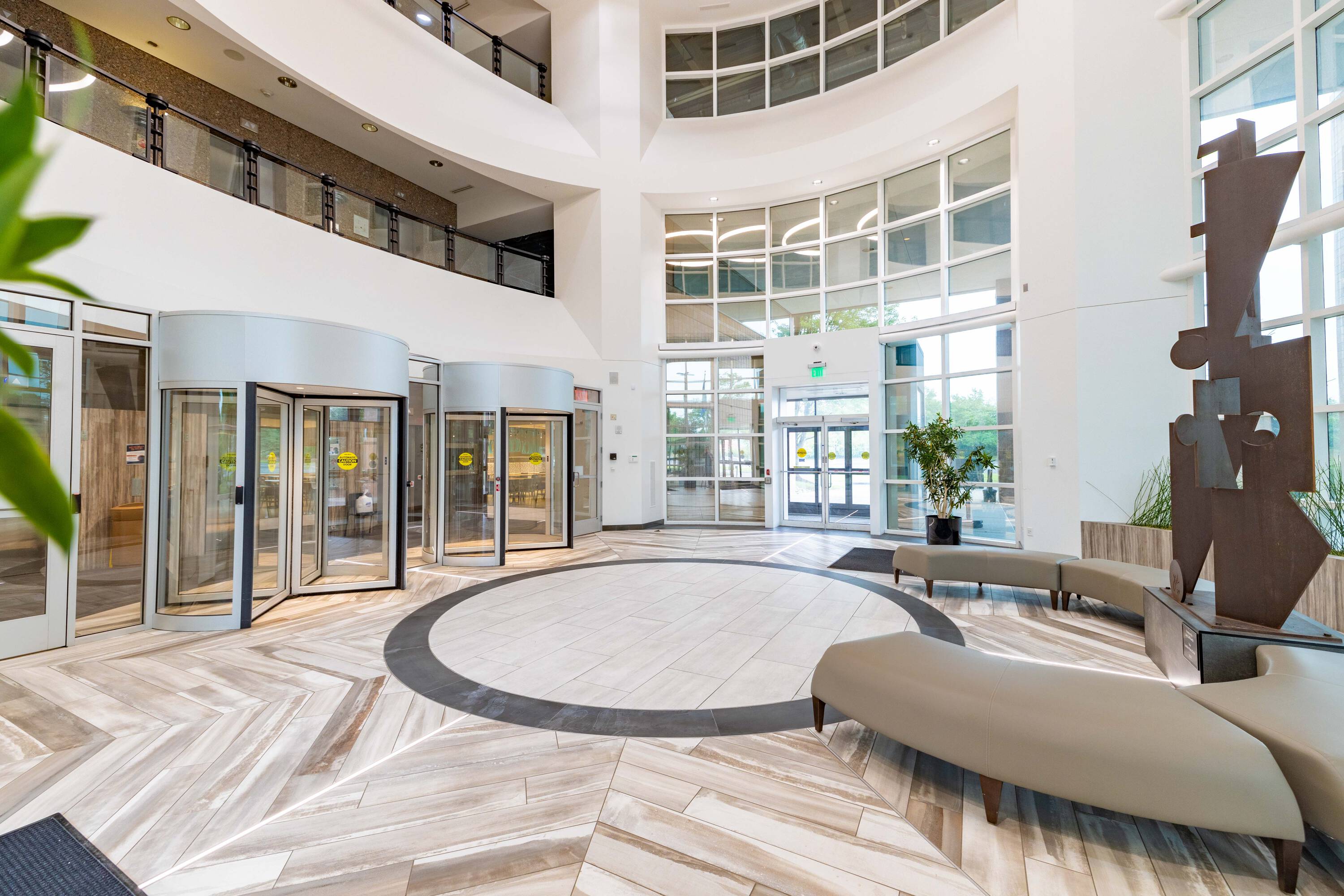 Renovated office building with modern amenities and ample parking.