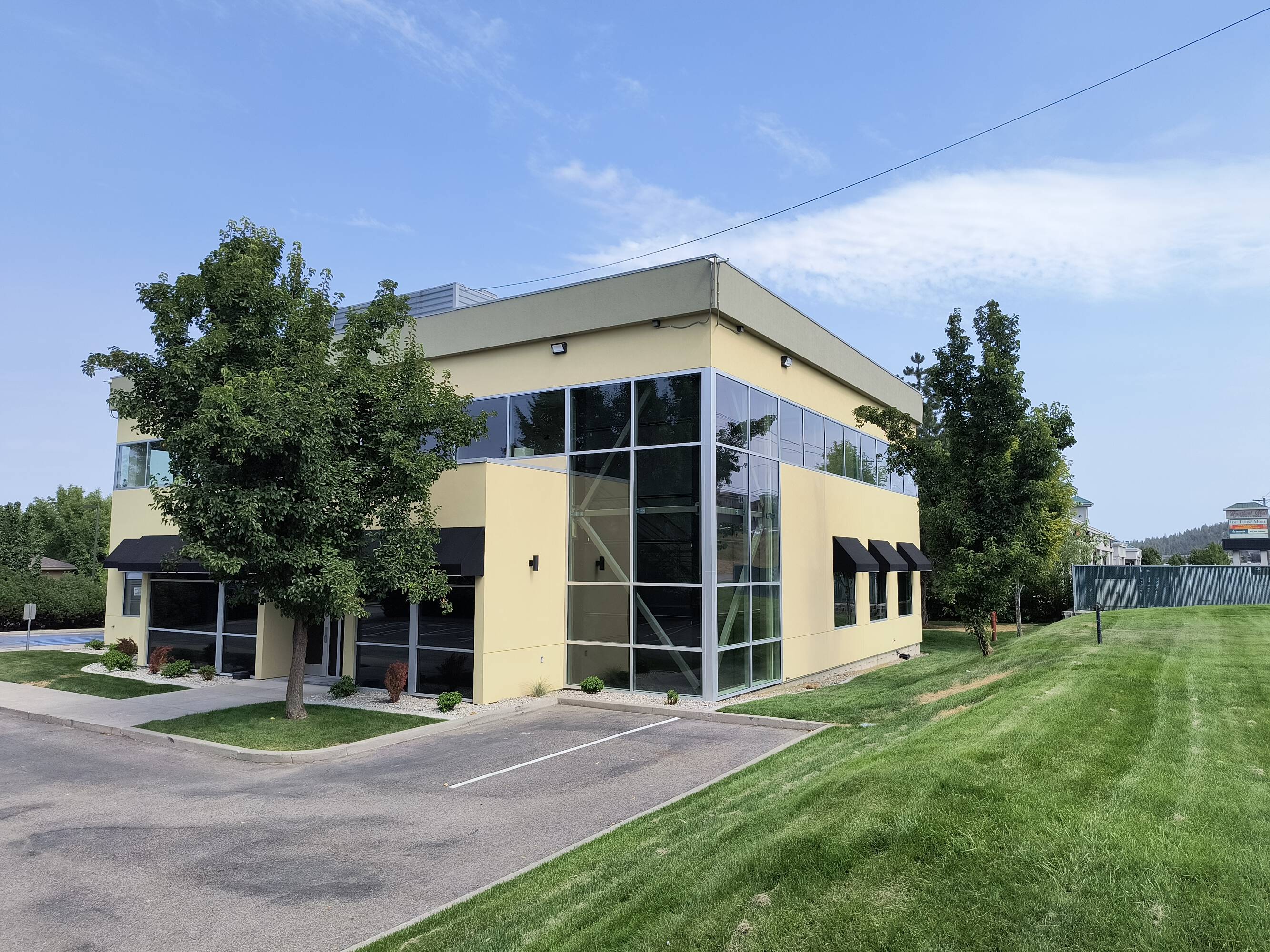 Modern office building with recent renovations available for sale or lease.
