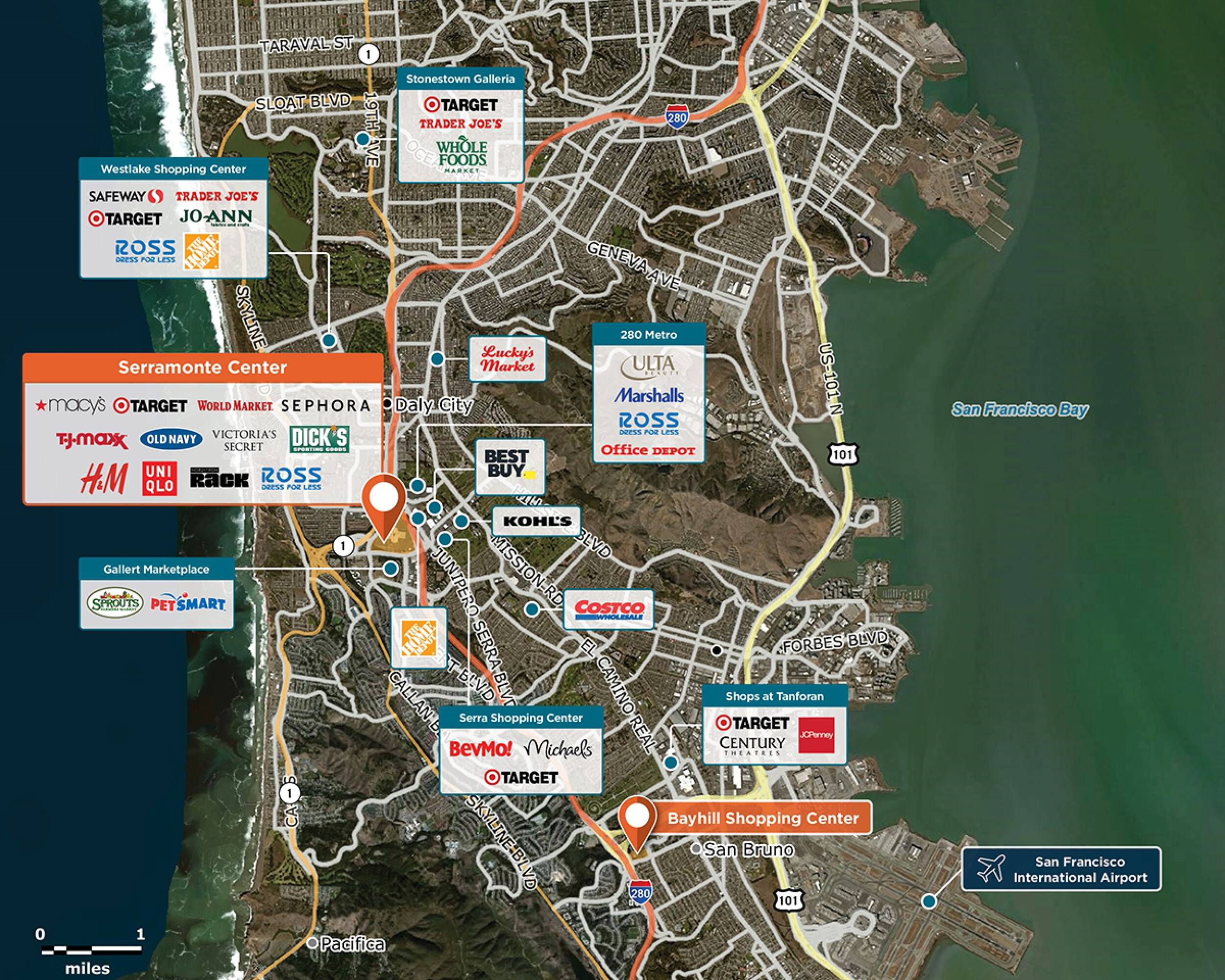 Conveniently located shopping center at I-280 and HWY 1.