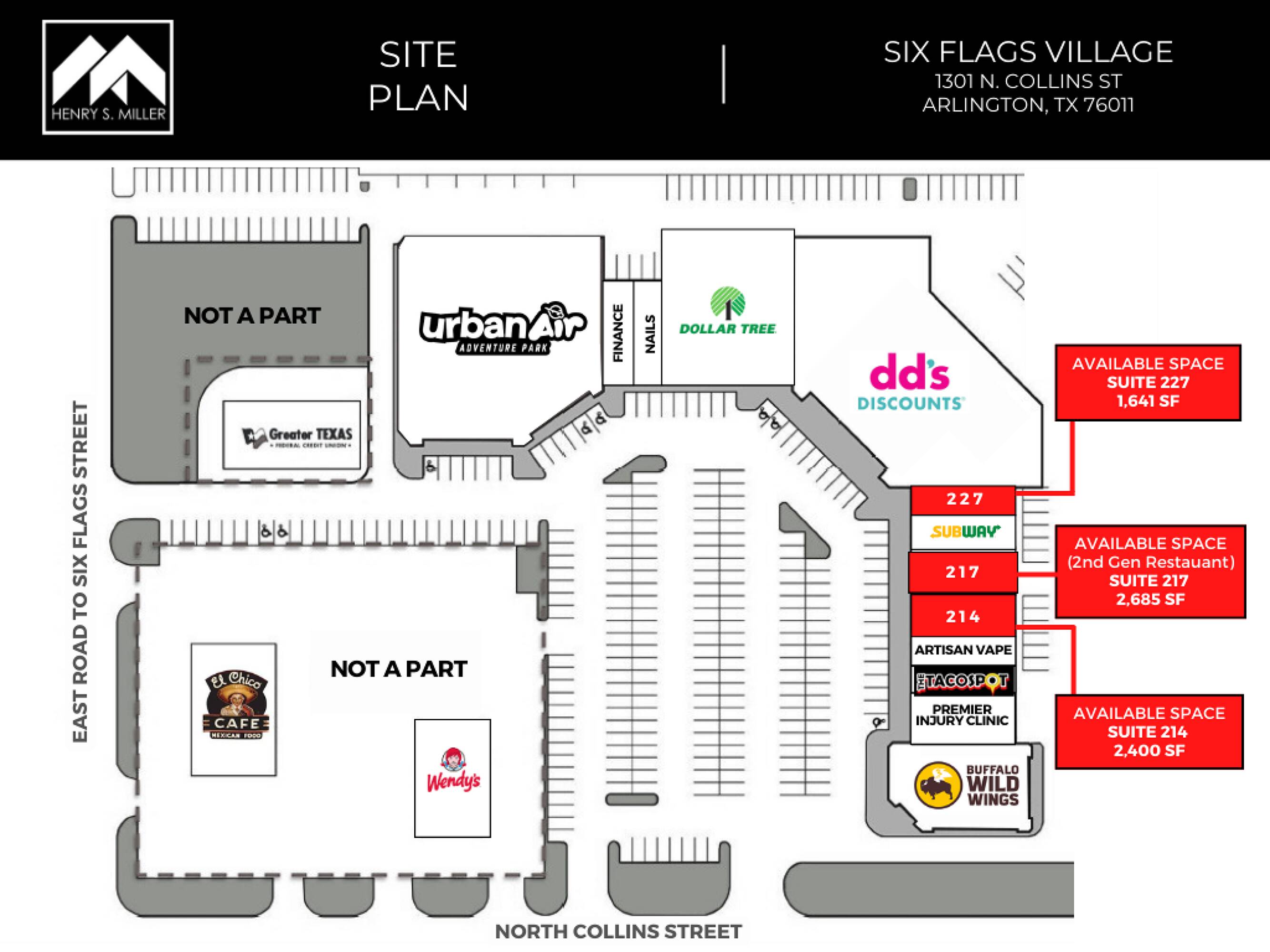 Retail leasing opportunity near AT&T Stadium and Six Flags.