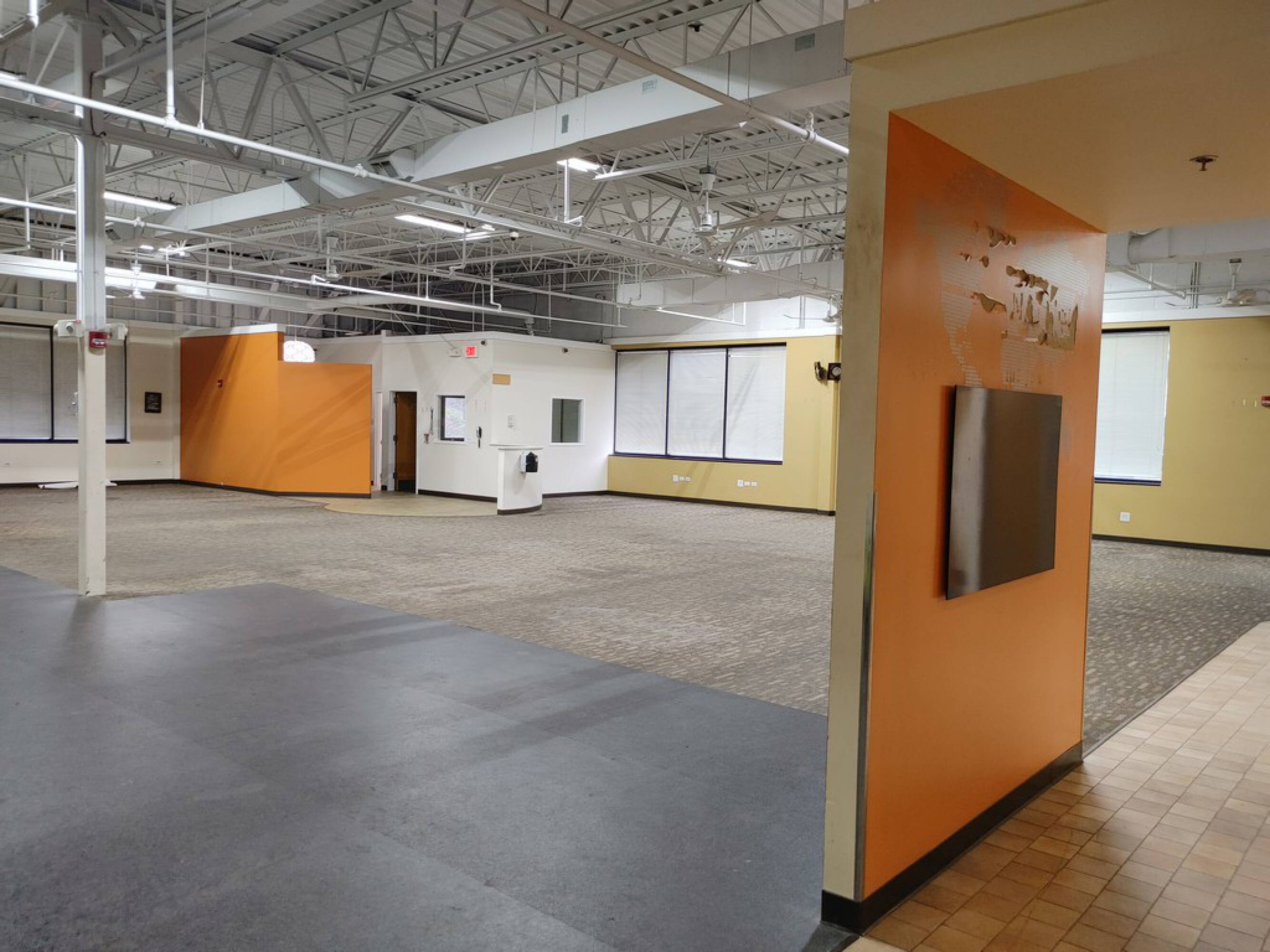 This highly visible retail space is located at the signalized intersection of Route 14 (Northwest Highway) and Cary-Algonquin Road. The space is an end cap within a 26,000 square foot strip center anchored by Walgreens. The space, formerly an Anytime Fitness, features high ceilings, mirrored walls, two training rooms, four bathrooms (two with showers), a break room with laundry, an office, and a reception area. The layout includes a large, window-lined open area and a studio area of approximately 1,400 square feet with mirrors suitable for yoga or dance. Monument signage is available.