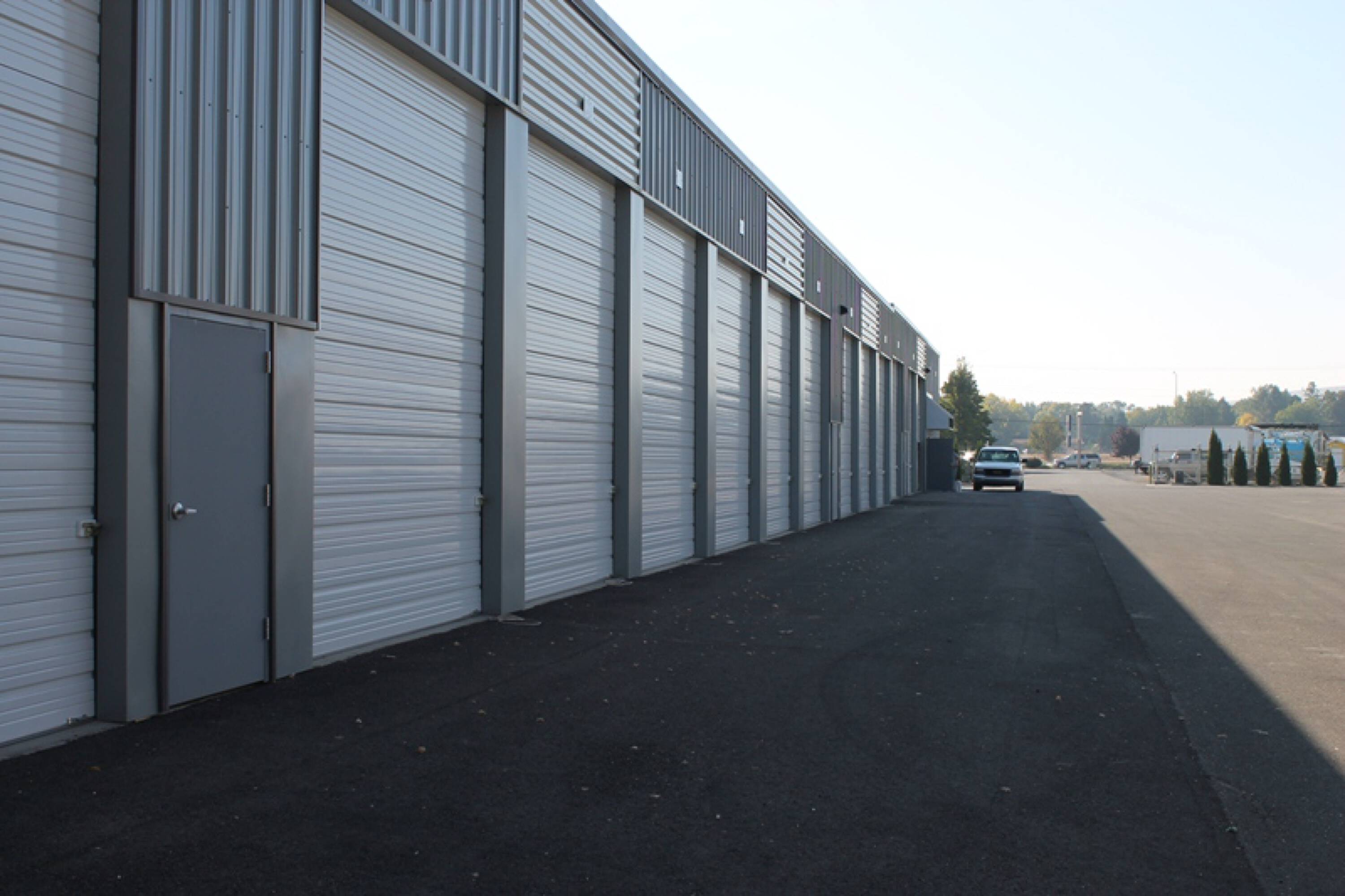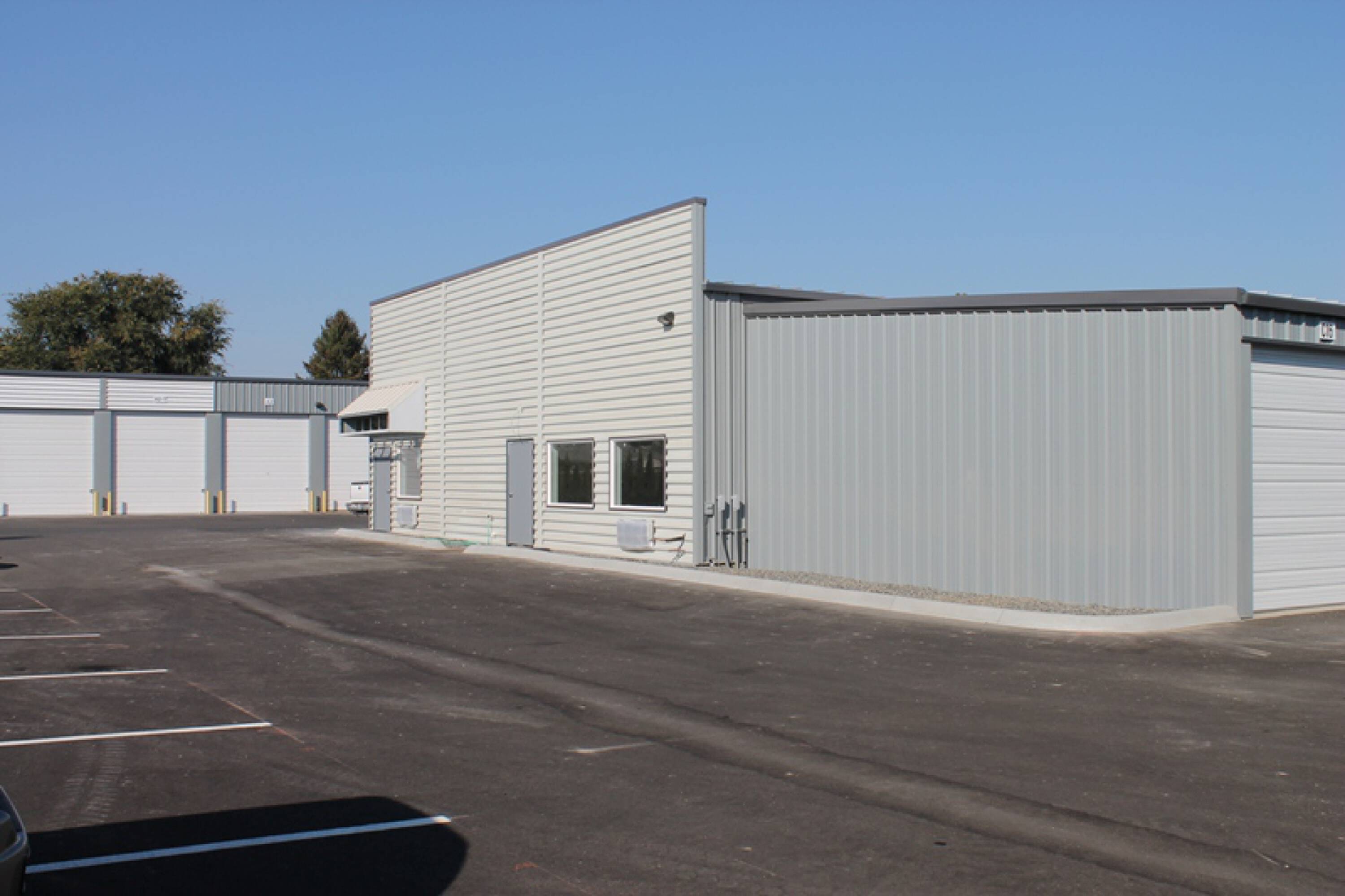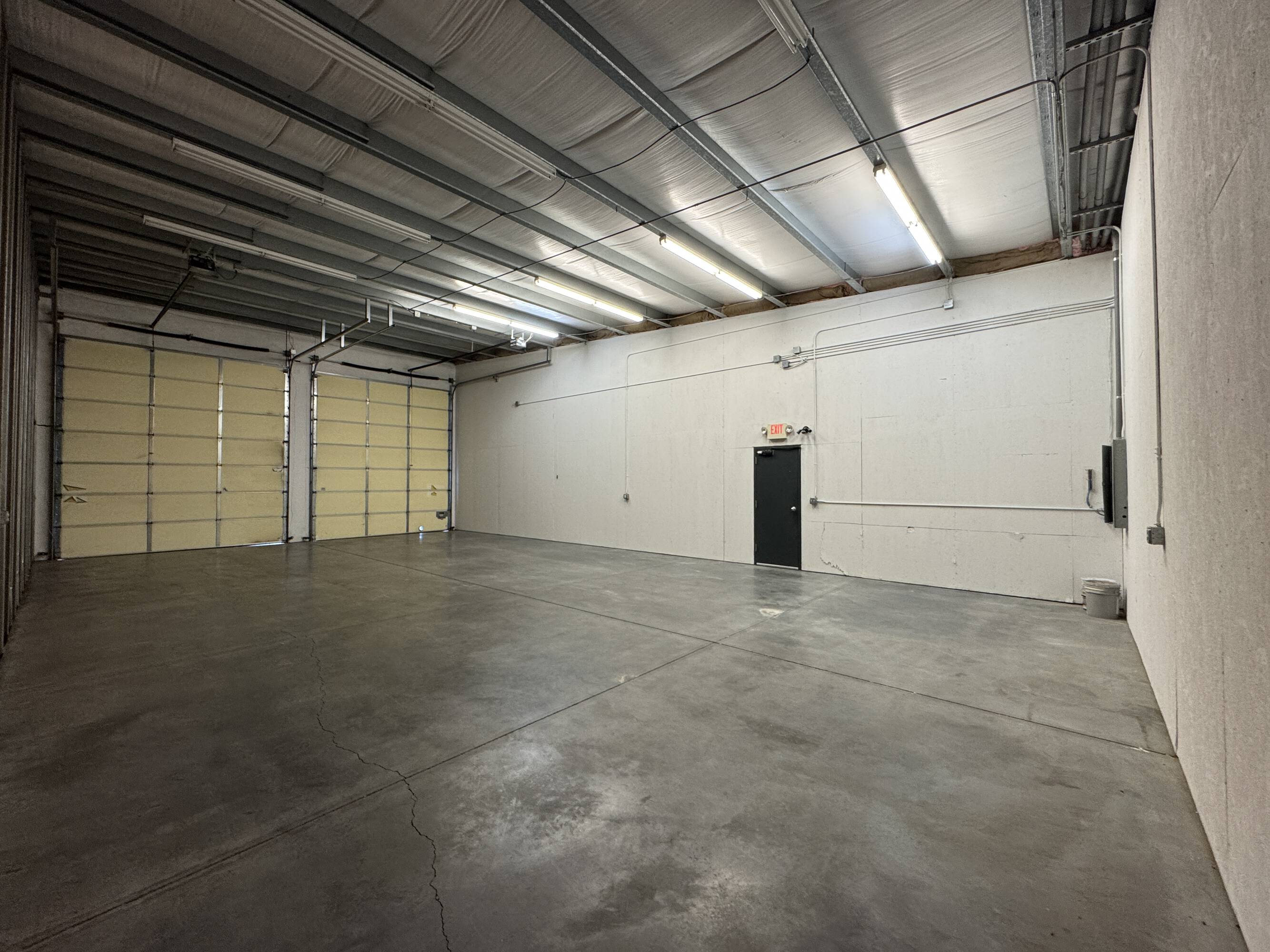Flex spaces are available for rent on Clearwater Avenue. These spaces feature a combination of office and warehouse areas, connected by large overhead doors.