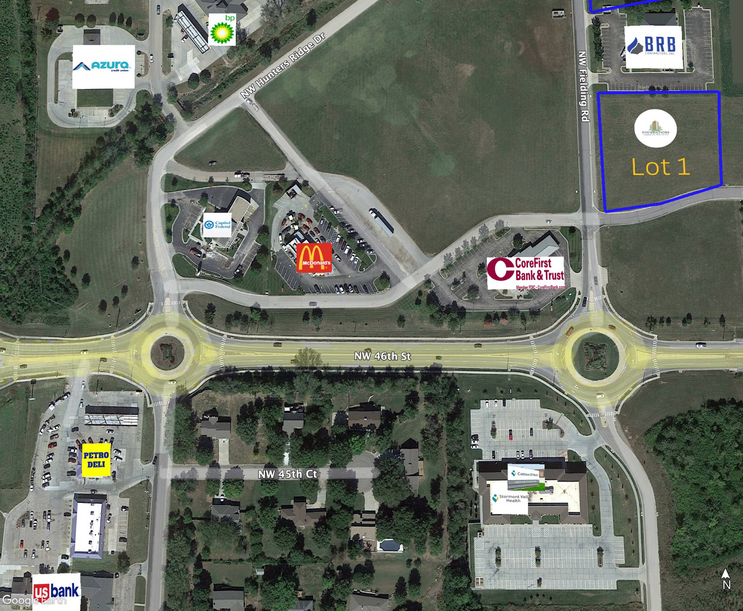 This property features: Prime commercial development land in North Topeka's growing area.; Two site options: **1.4 acres ($195,000) and 3.03 acres ($275,000)**.; **Pad site ready for immediate development** at 47th Street and Hunters Ridge.