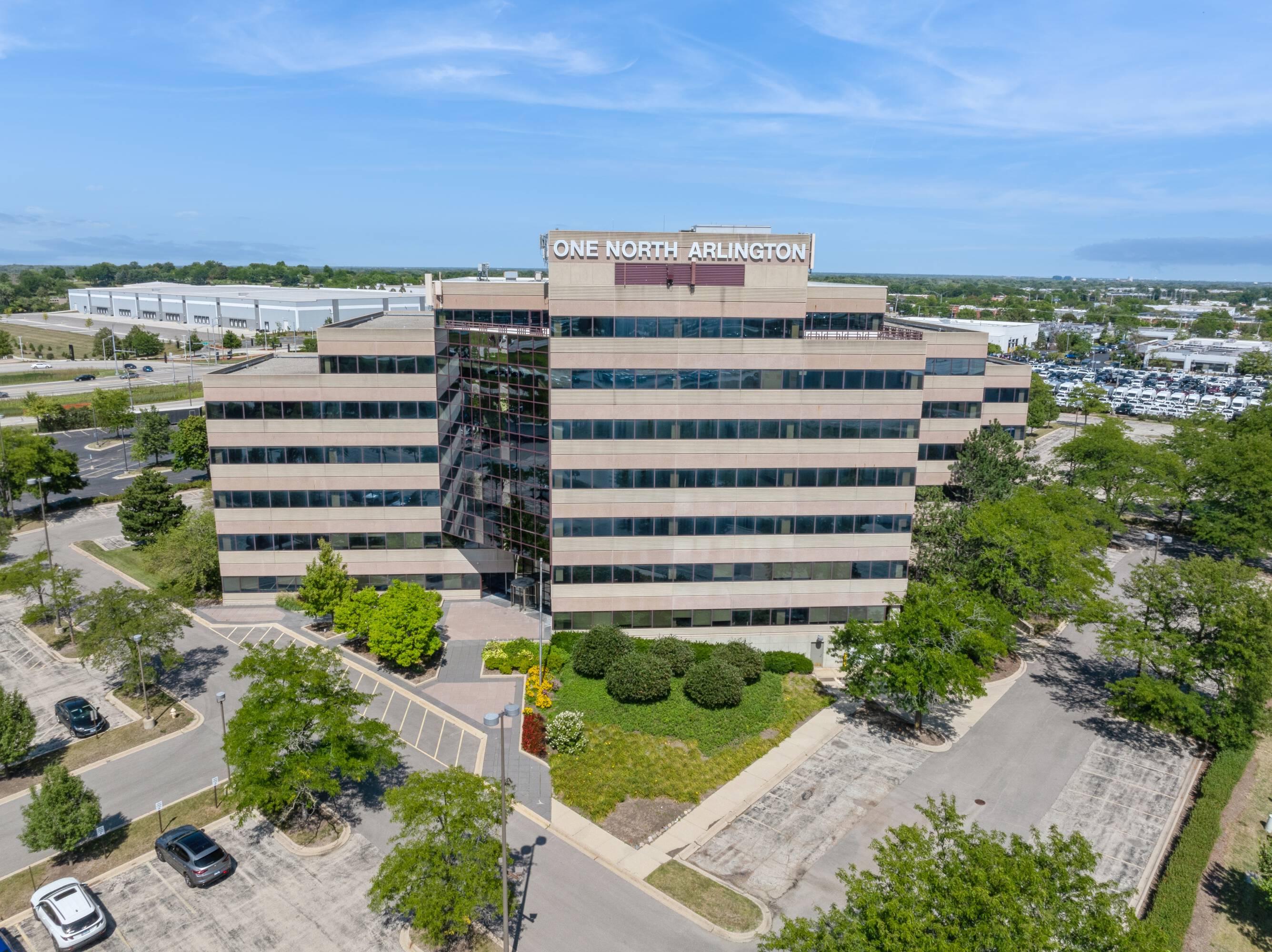 Seven-story office building with redevelopment potential in Arlington Heights, Illinois.