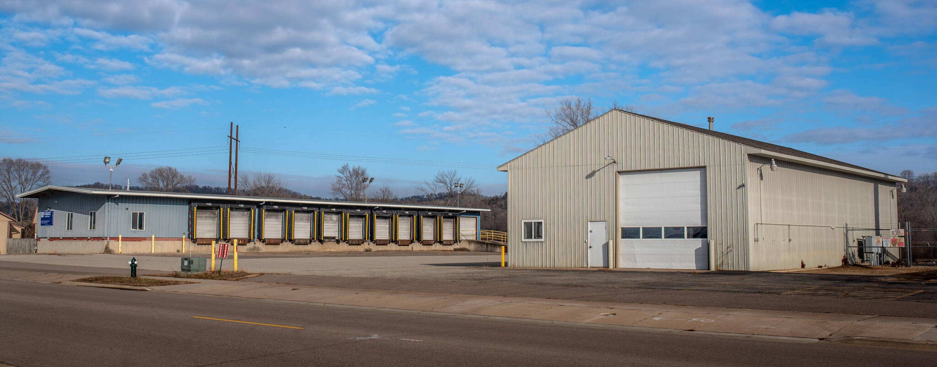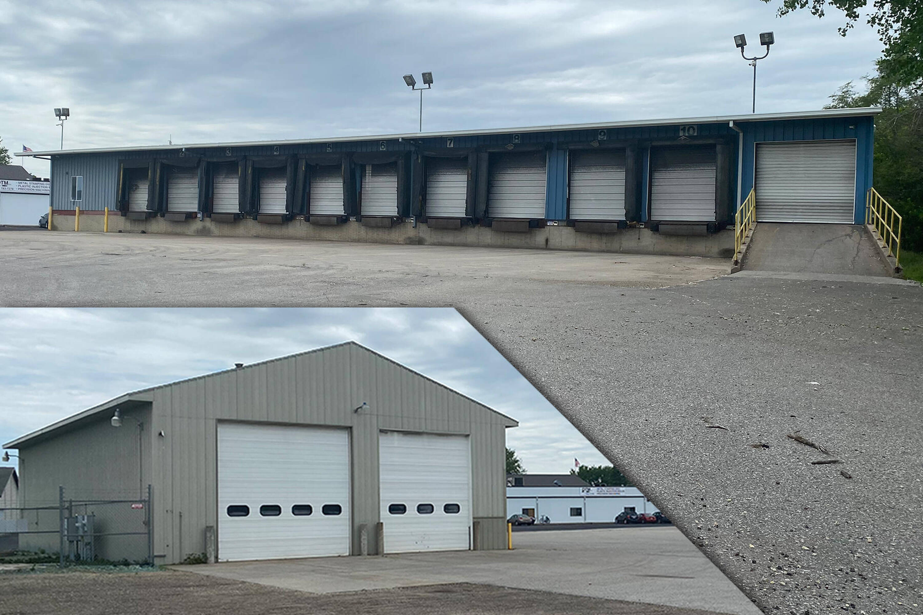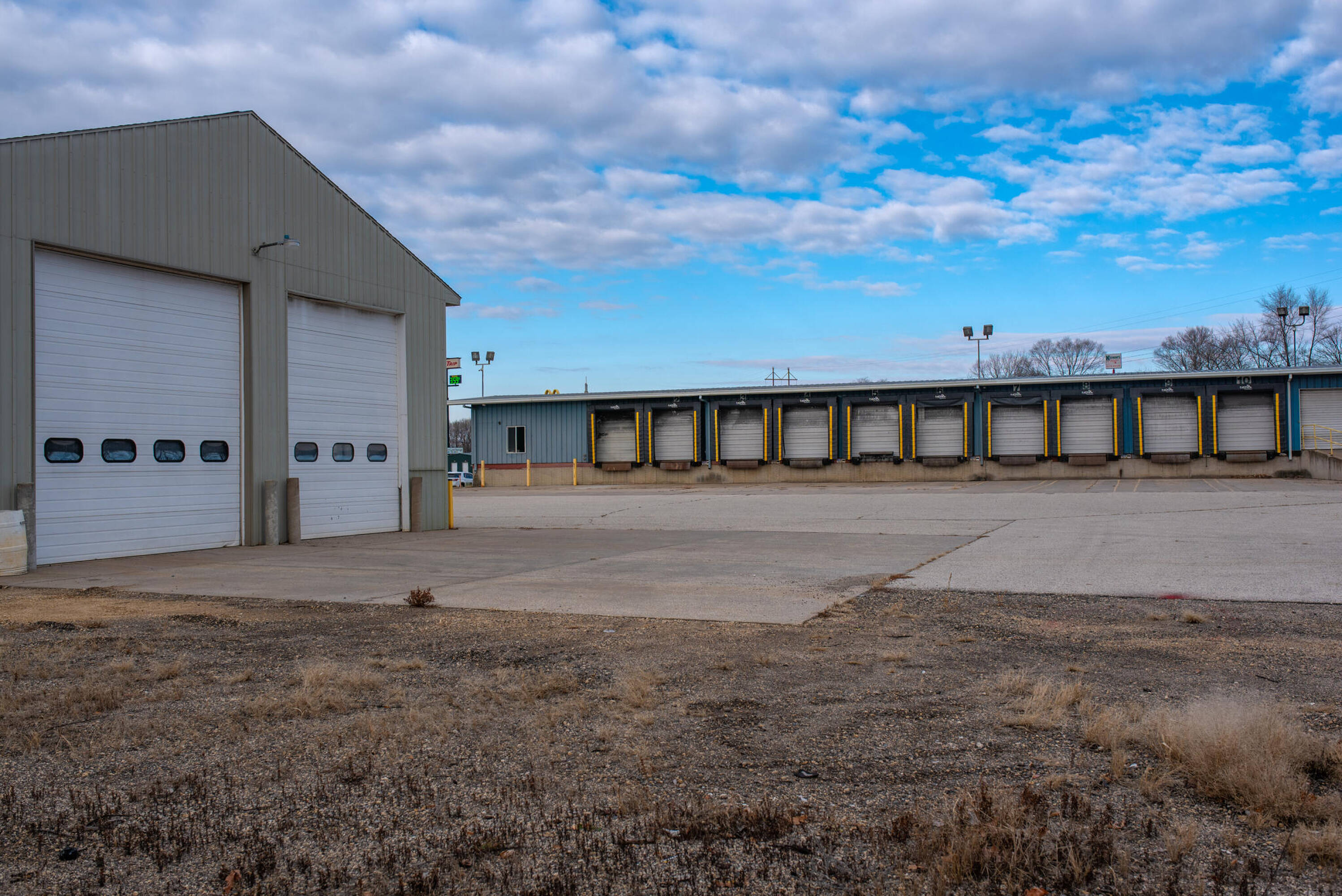 Truck terminal with loading dock and office facilities for sale.