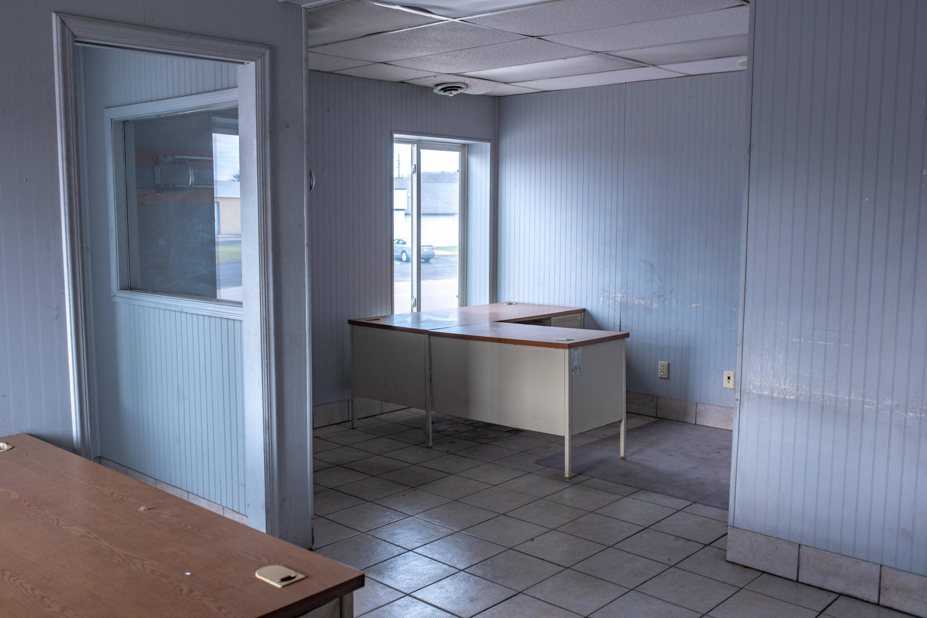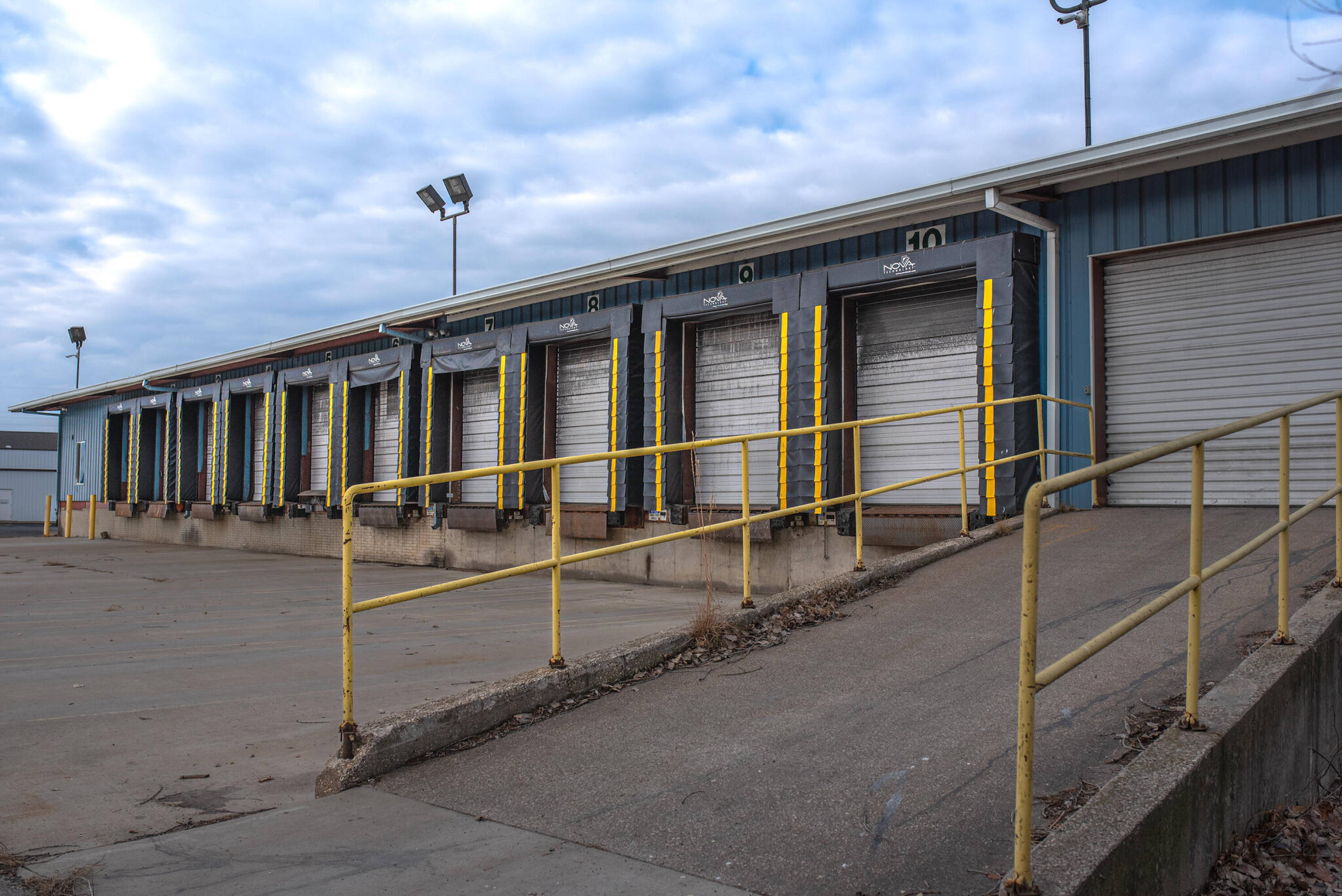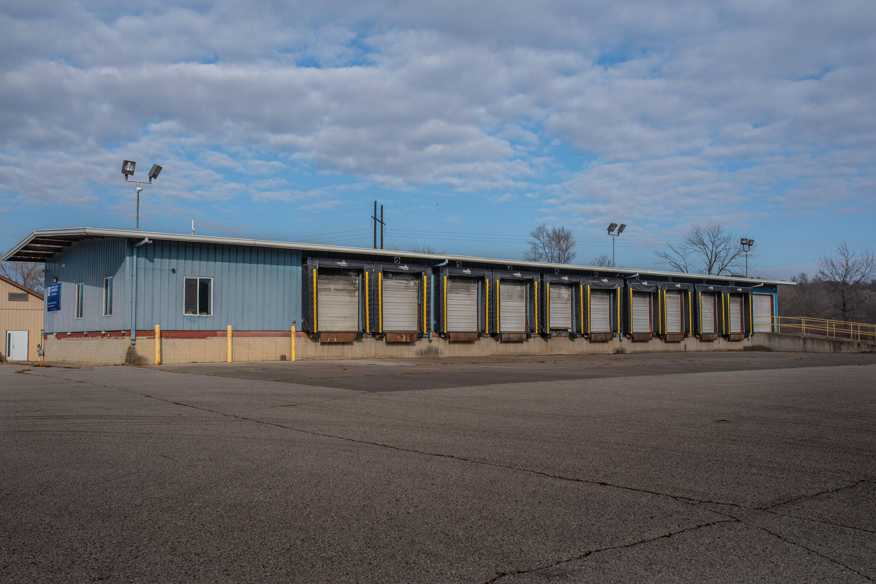 Truck terminal with loading dock and office facilities for sale.