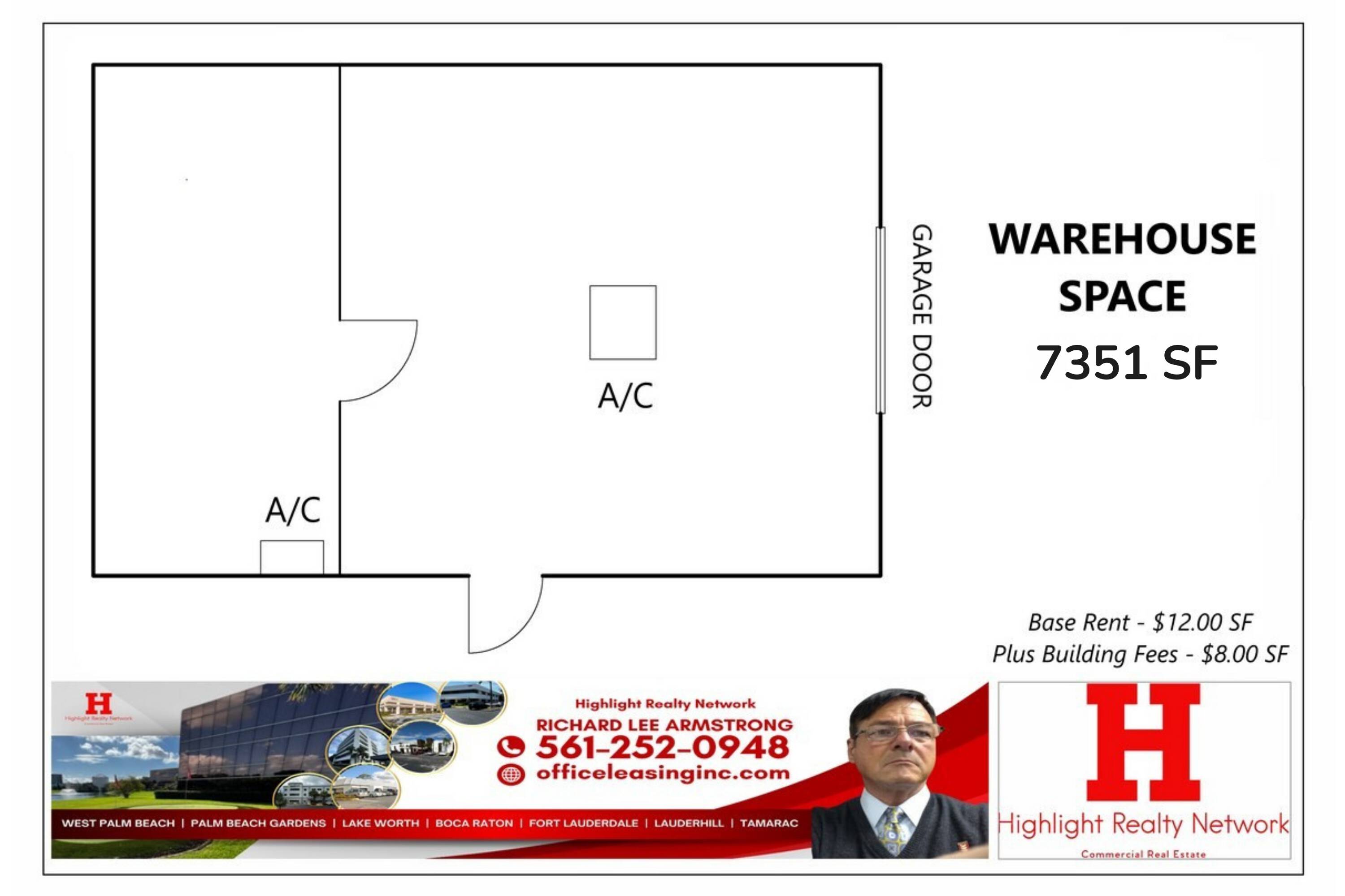 This property features: 7351 SF Warehouse /Research Center Space available for lease.; Located at 1095 Broken Sound Pkwy., Boca Raton, FL 33487 (Great Location).; Enjoy **3 FREE MONTHS** of rent on the base rent, one per year.