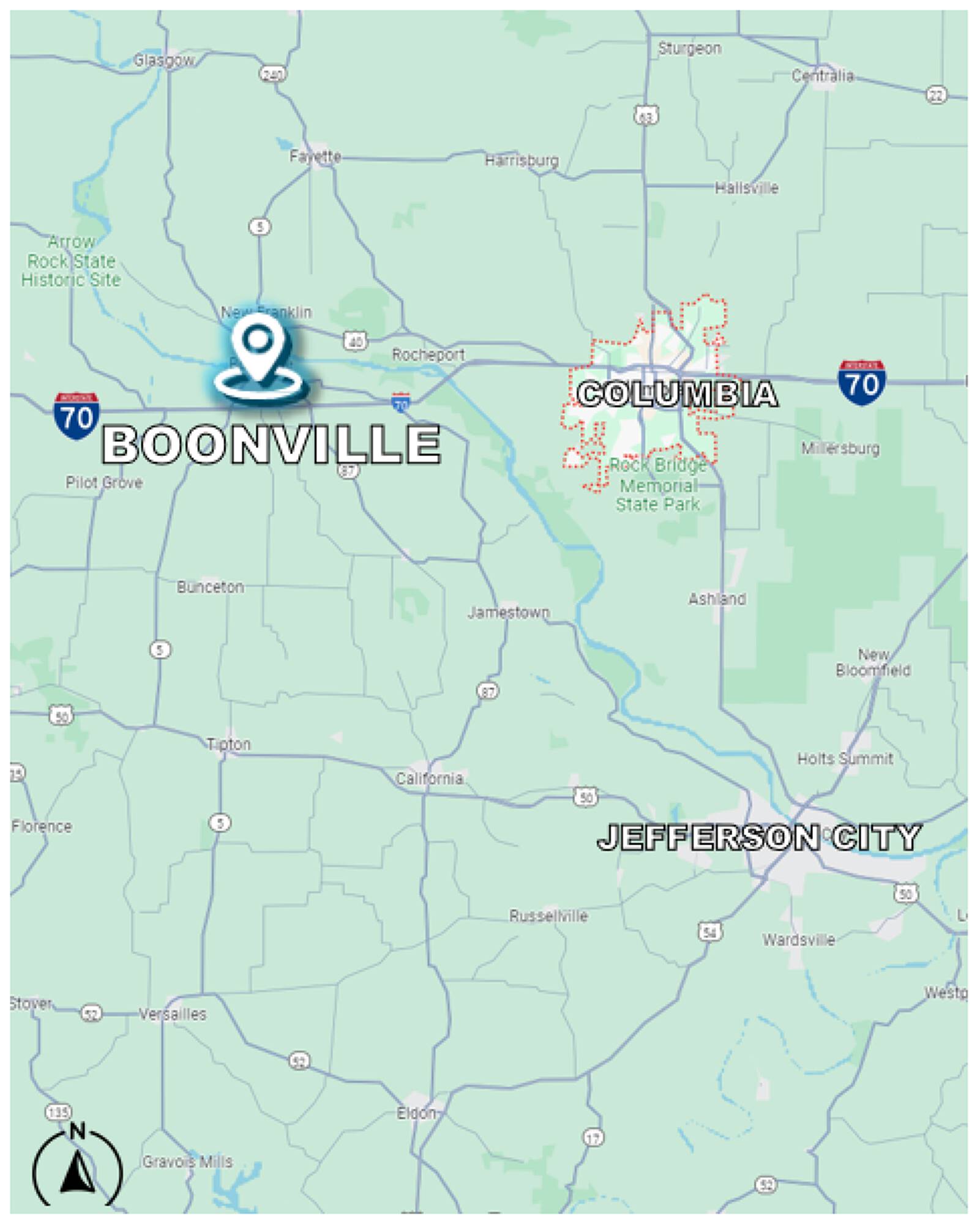 Located in Boonville's premier industrial park, this 9.62-acre site offers excellent I-70 visibility. Zoned for industrial and commercial flex use, the property is vertical ready with all utilities available to the site. The location provides convenient access to I-70 and is centrally located between Kansas City, Columbia, Jefferson City, and St. Louis, MO. Adjacent businesses include Caterpillar, Spirit of 76, Holiday Inn Express, Arby’s, Pilot Travel Center, and Wendy’s. The property is located at Lot 16 Mid-America Industrial Ct, Boonville, MO 65233.