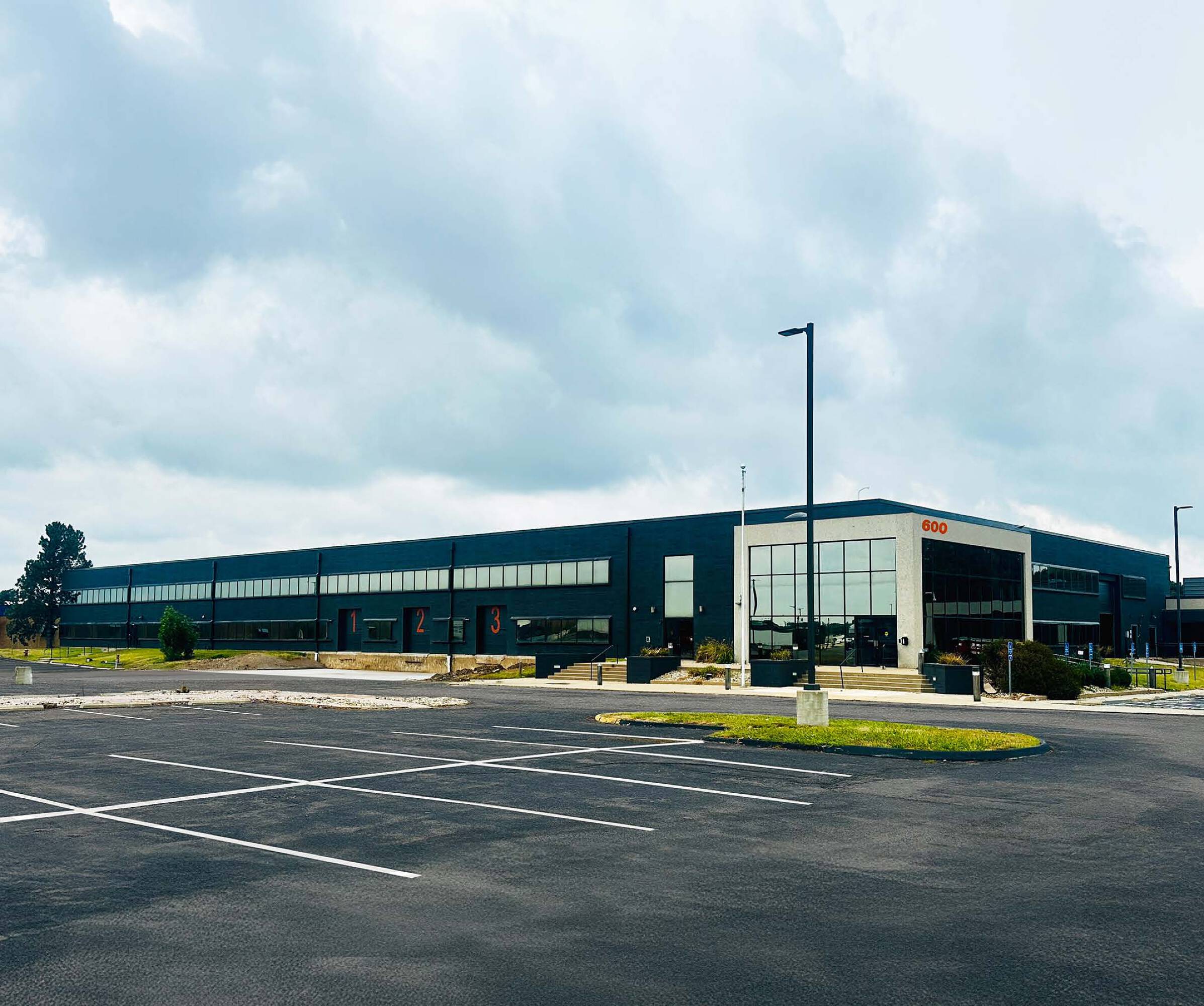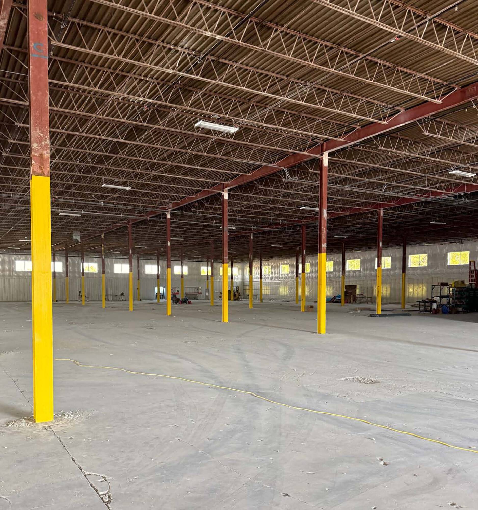 Industrial redevelopment with warehouse space and outdoor storage, available Q2 2024.