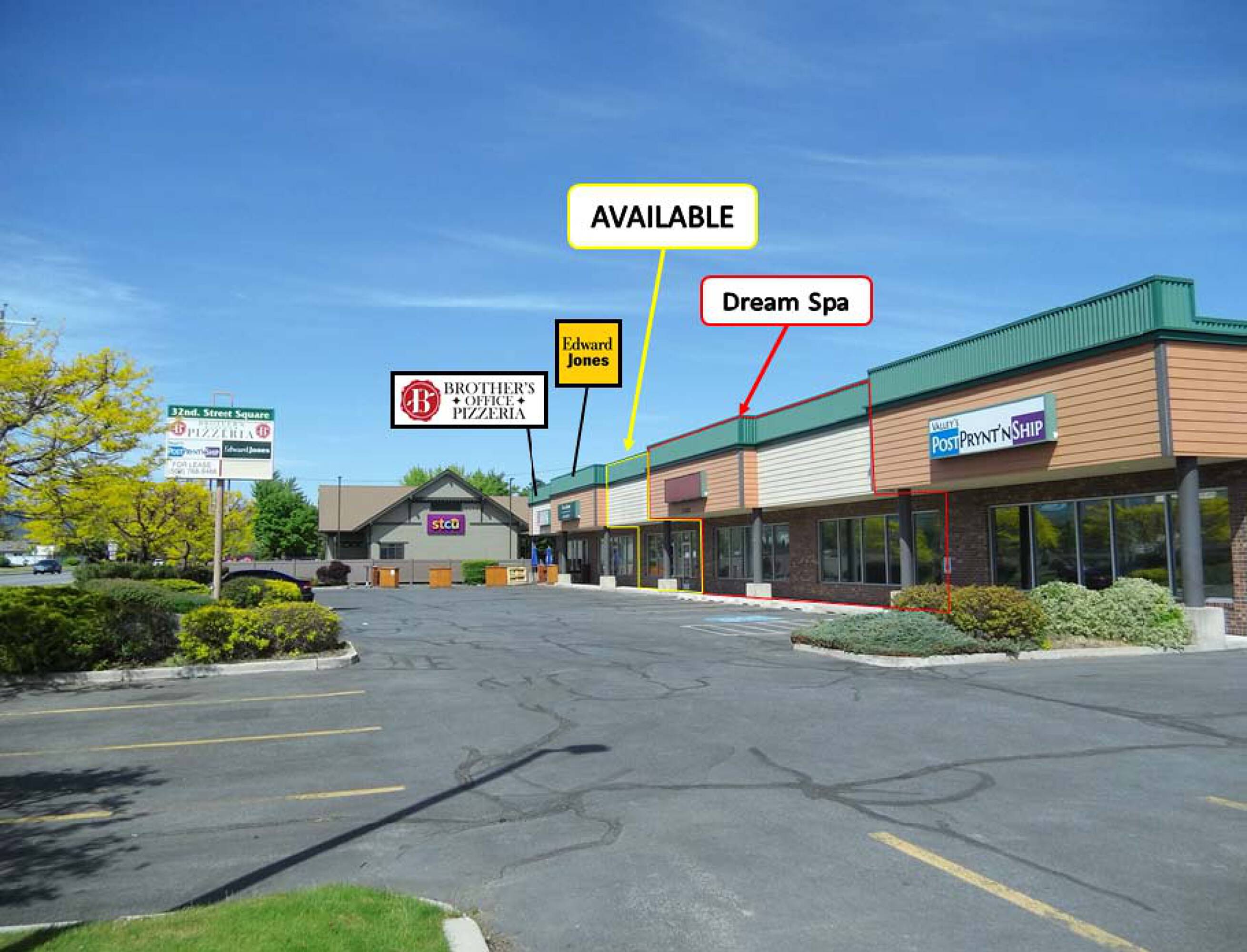 Retail and office spaces available for lease in Spokane Valley.