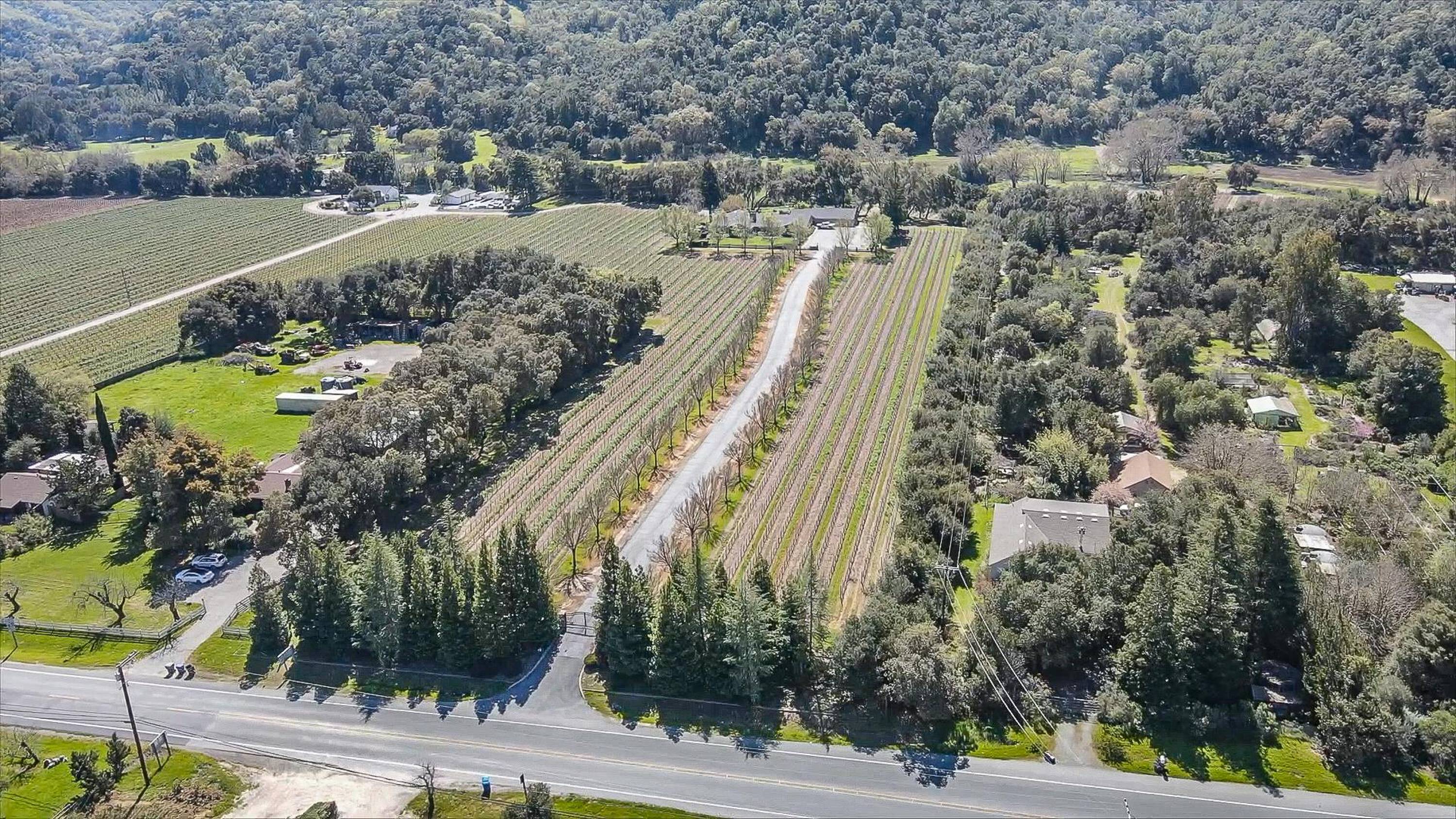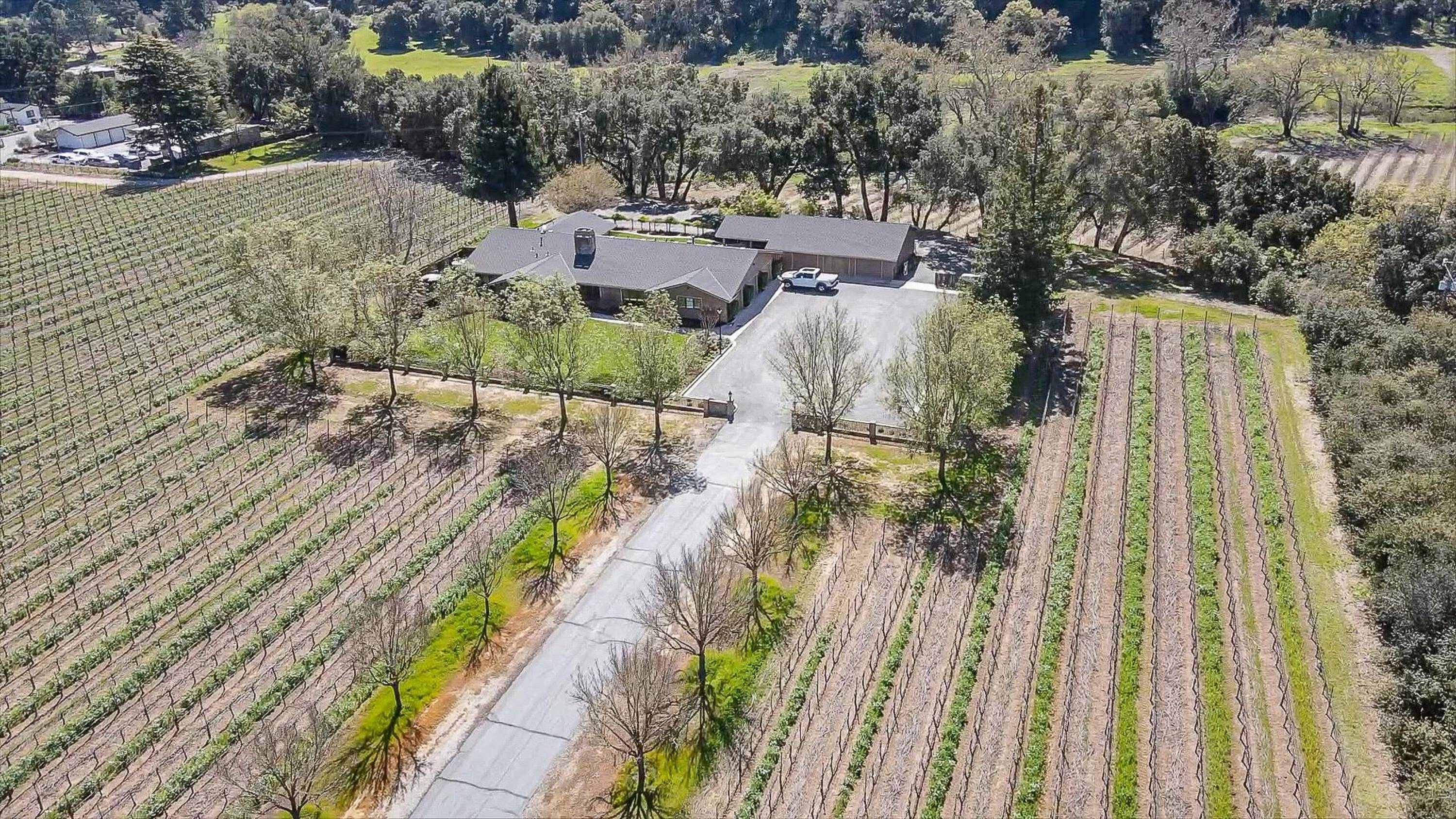 Vineyard property featuring a residence and barn near wineries.