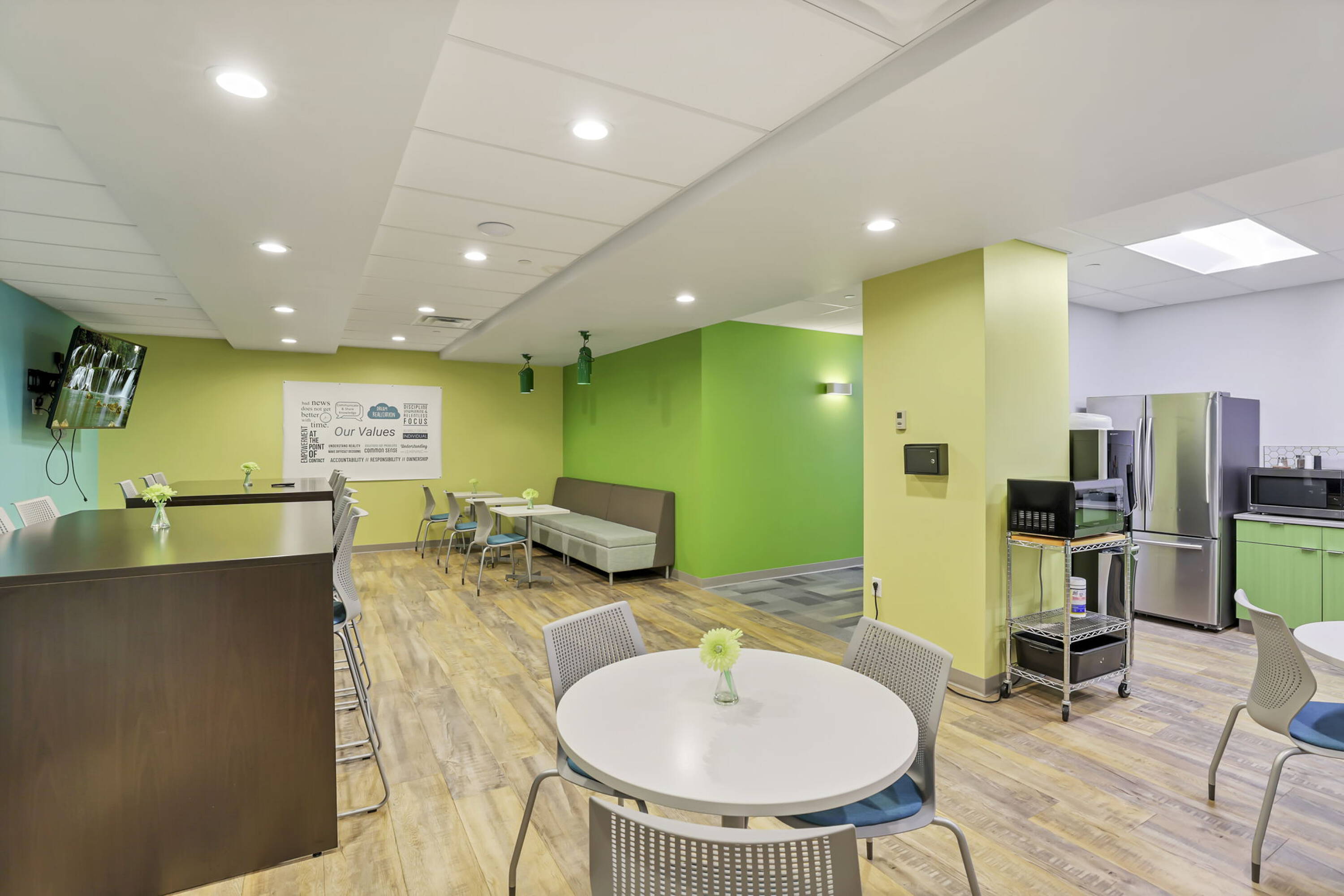 Class A office building in high-traffic area near dining.