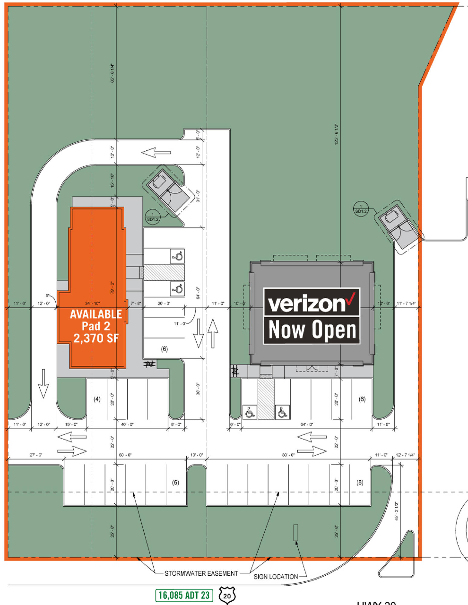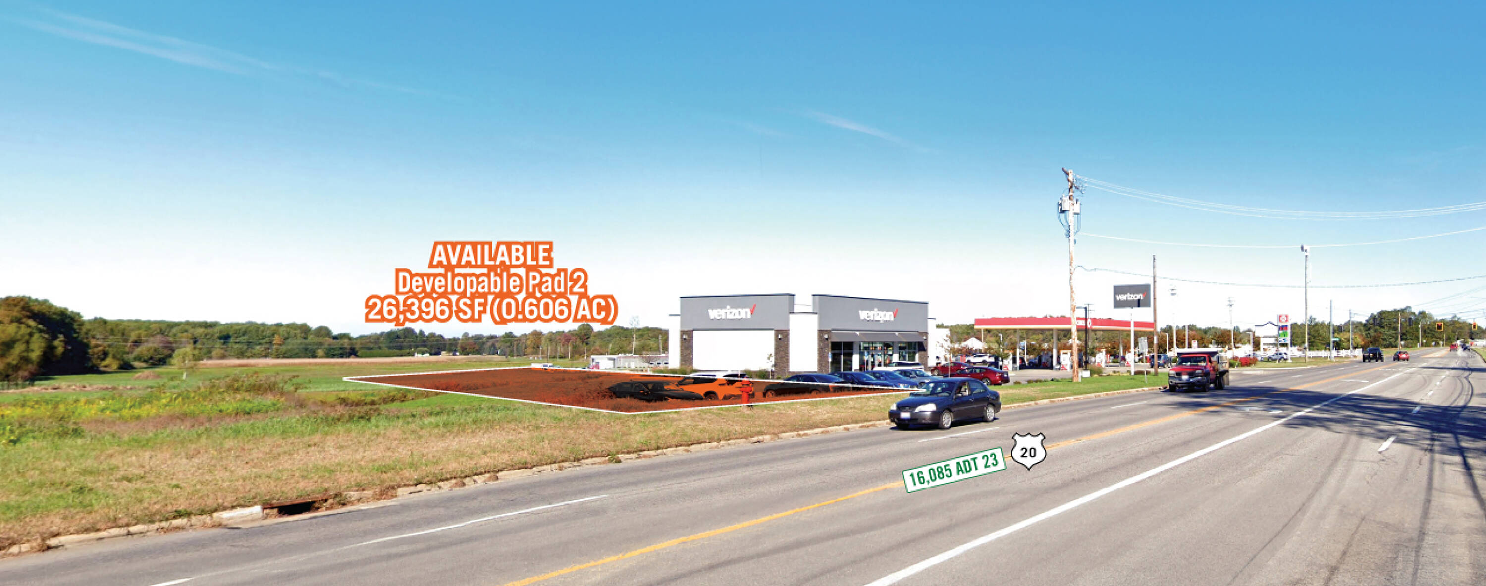 0.6059 acres of commercial land available for lease.