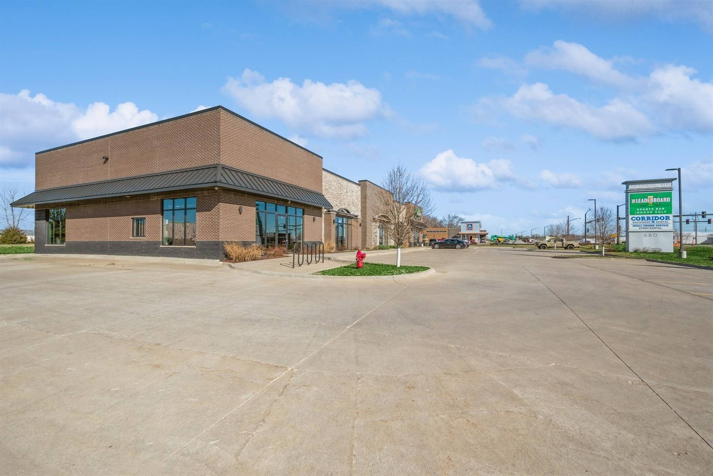 A 2,633 square foot end cap retail space is available for lease. The space is configured with an open retail floor, a drive-thru window, a small office, and a restroom. The retail center is located south of the new Aldi Grocery Store, scheduled to open May 2nd, 2024. The property is located next to the new Aldi Grocery Store on Highway 965 and Pacha Parkway, or west on Penn Street to North Mead Drive, one block north.