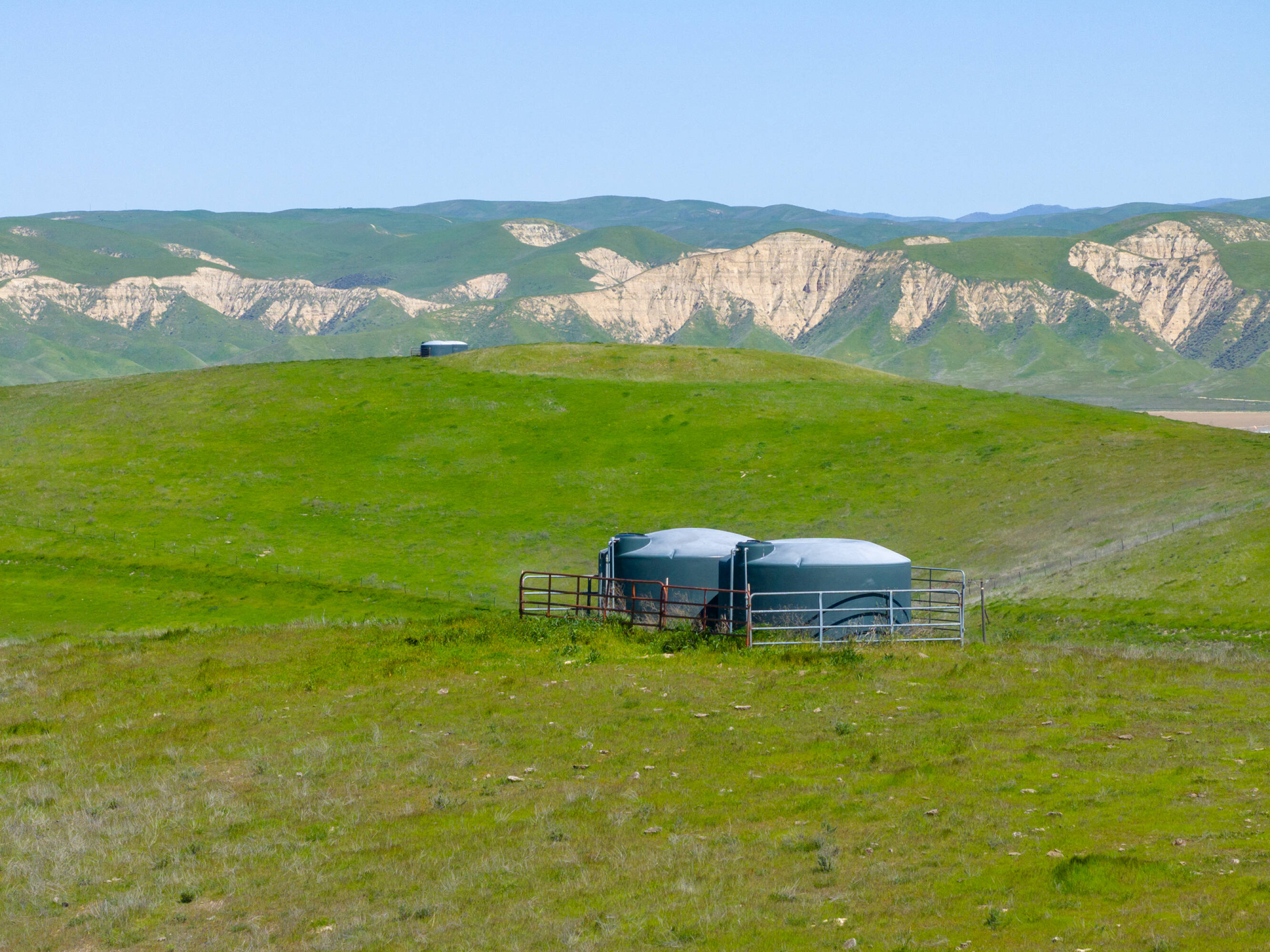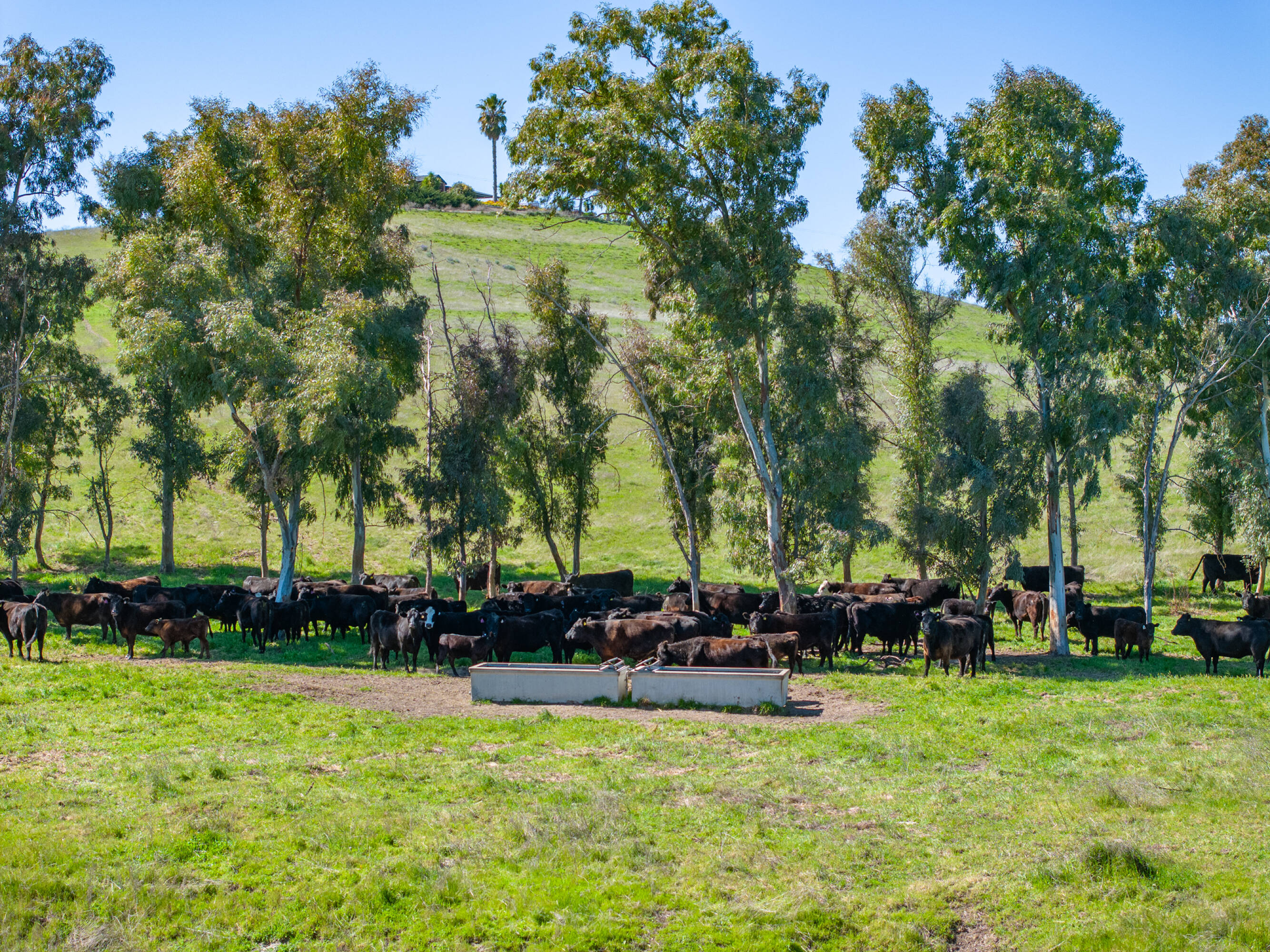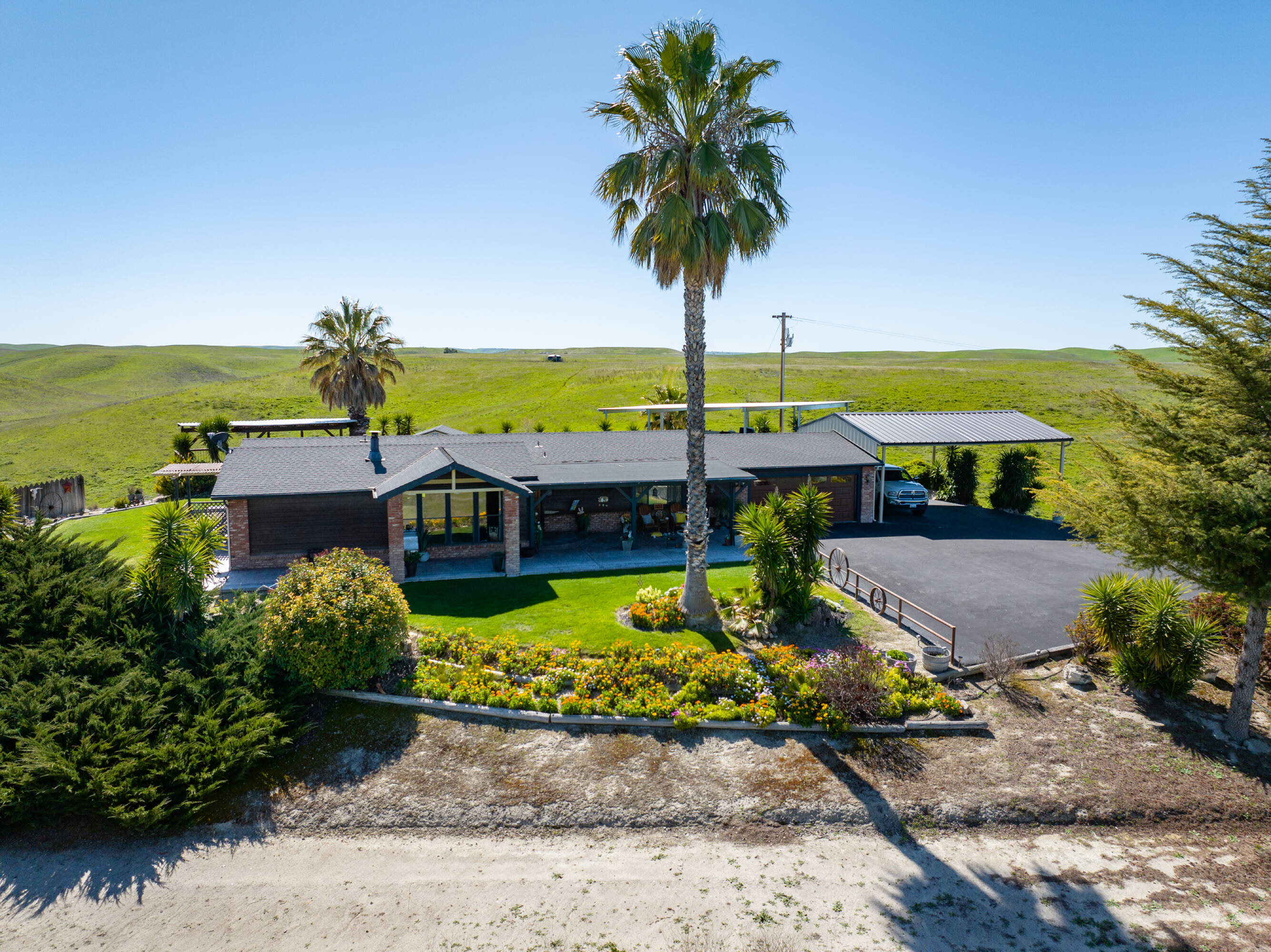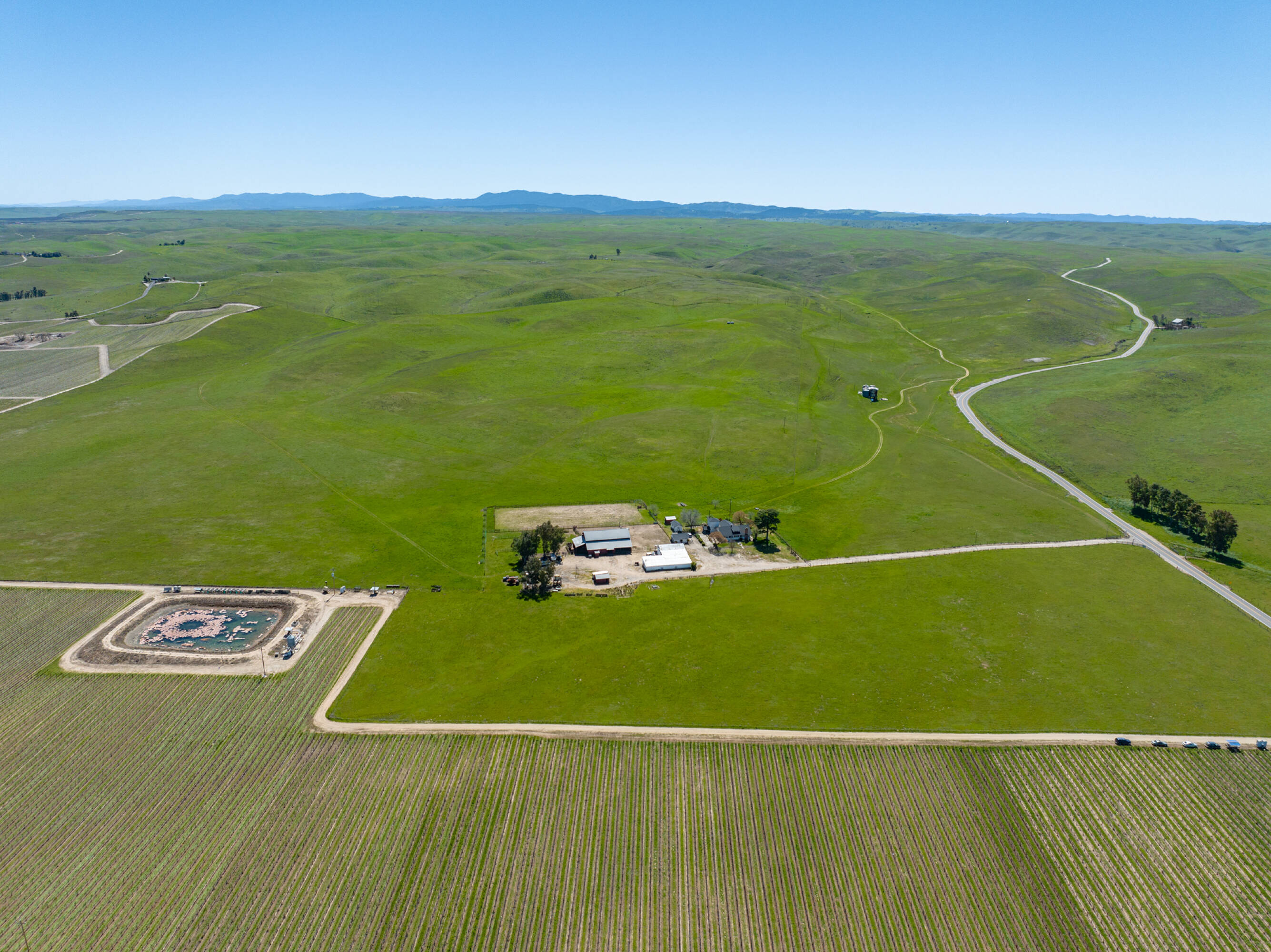 Kuhnle Shandon Ranch, situated near Paso Robles and Shandon, encompasses 3,055 acres of grazing land and dry farming operations. The ranch is conveniently located off Highway 46 East and along Highway 41, approximately 18 miles east of Highway 101, providing easy access to the San Joaquin Valley and coastal towns. The property includes 27 certificated parcels and is enveloped by four Williamson Act Contracts. This working cattle ranch and dryland farm features three residences, two barns, and numerous outbuildings, with perimeter and cross fencing. Horse facilities include barns, pens, an arena, and riding trails, along with cattle pens and troughs. Water is supplied by five wells, ensuring ample water for stock and domestic use. The main headquarters, located at 2500 South Highway 41, features a 2,845-square-foot home built in 1912 with five bedrooms, two bathrooms, and a detached water tower. Additional improvements include a 4,320-square-foot wood barn with an attached hay shed, a 3,321-square-foot granary used for storage, a 1,100-square-foot shop, a small garage, a detached two-car garage, a bunkhouse, an oil shed, paddocks, a riding arena, and corrals. Farmstead One, at 2225 Shandon Highway, includes two residences: a 1,422-square-foot home with three bedrooms and one bath, and an 858-square-foot home with two bedrooms and one bathroom, along with a 2,240-square-foot horse barn. Farmstead Two, at 3005 Truesdale Road, features a 1,700-square-foot manufactured home with three bedrooms, two bathrooms, an attached garage, an attached carport, and an above-ground pool. The property is zoned Agriculture and falls within the Paso Robles Groundwater Basin.