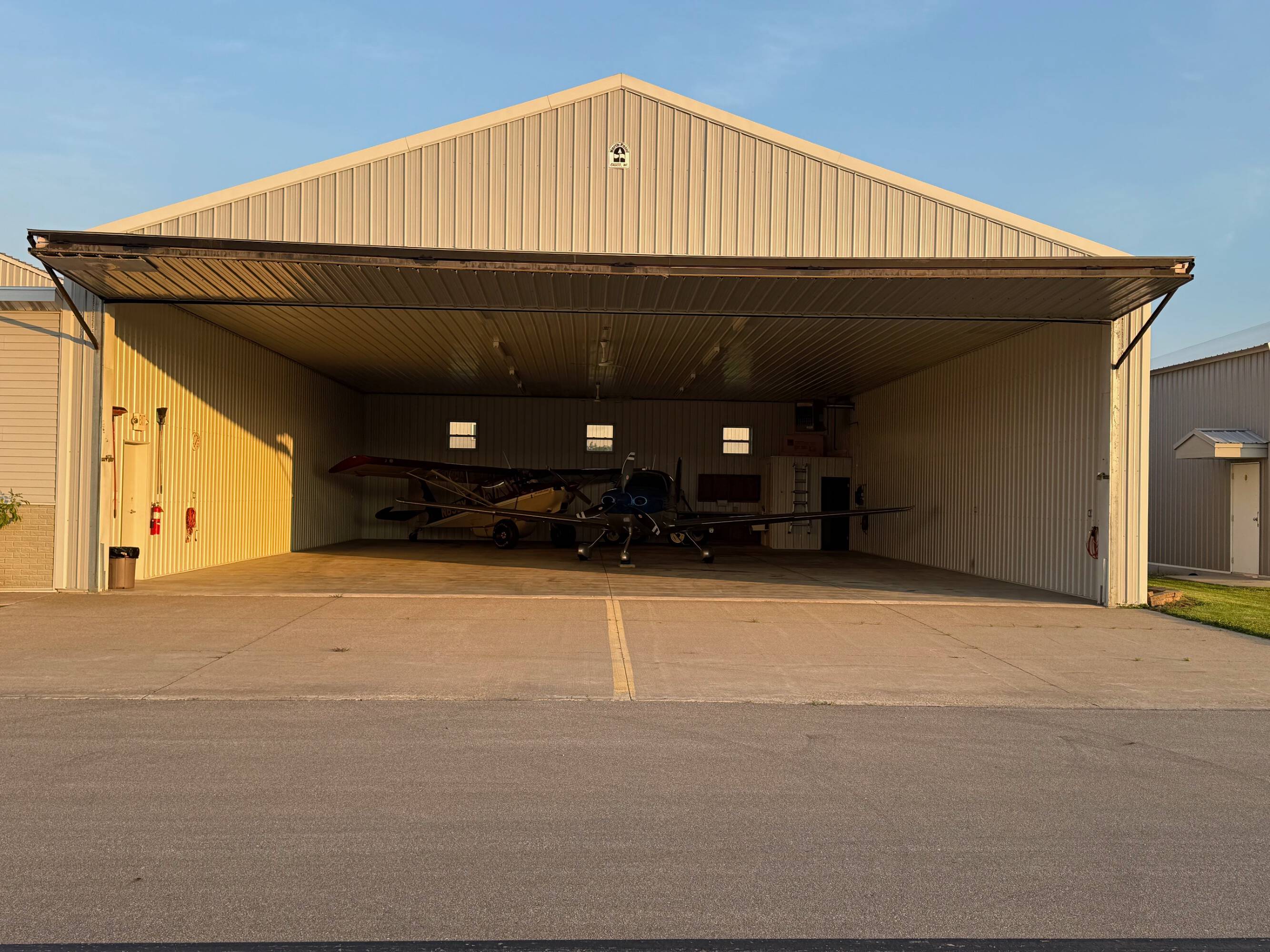 Two airplane hangars for sale at Appleton, WI airport.