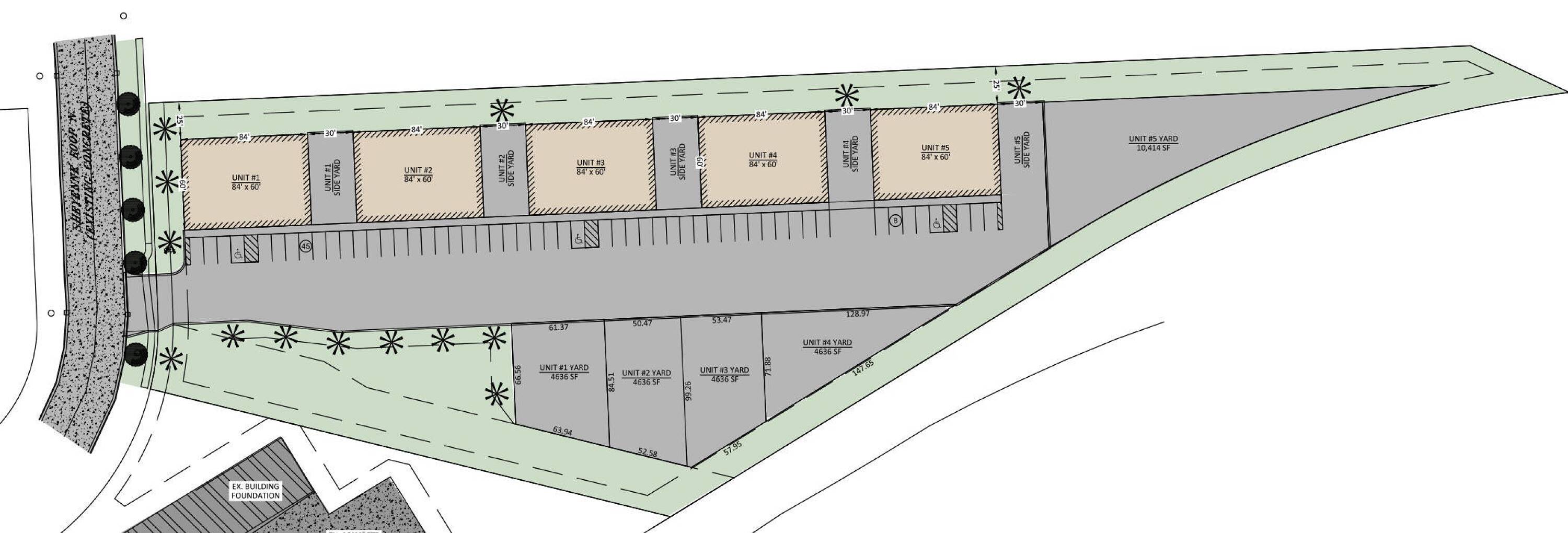 Versatile shop condos with yard space, ideal for various uses.