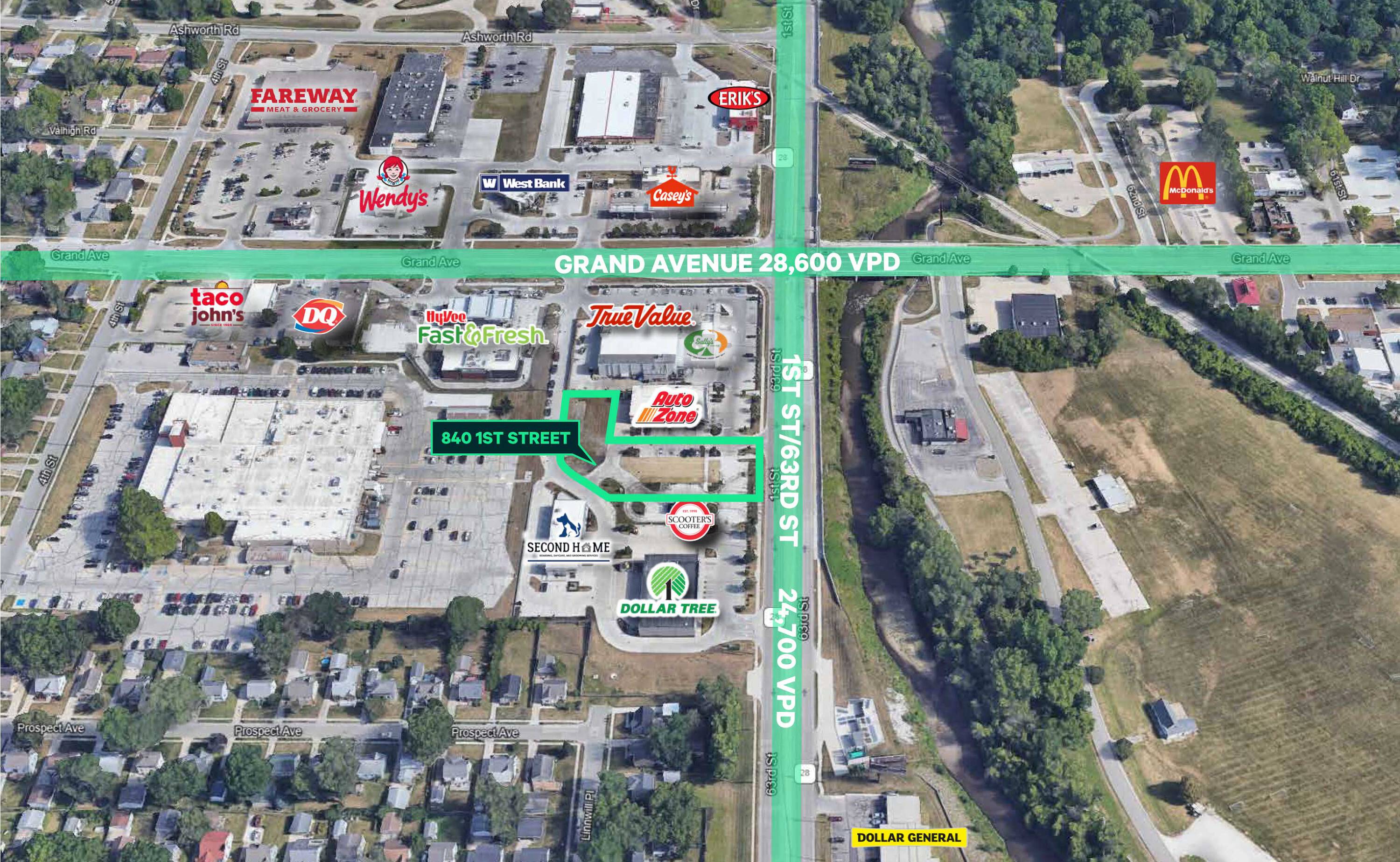 New construction retail space is available in Val-Gate on Highway 28/1st Street in West Des Moines. The property is located between Auto Zone and Scooter’s Coffee. Co-tenants include Dollar Tree and True Value Hardware.