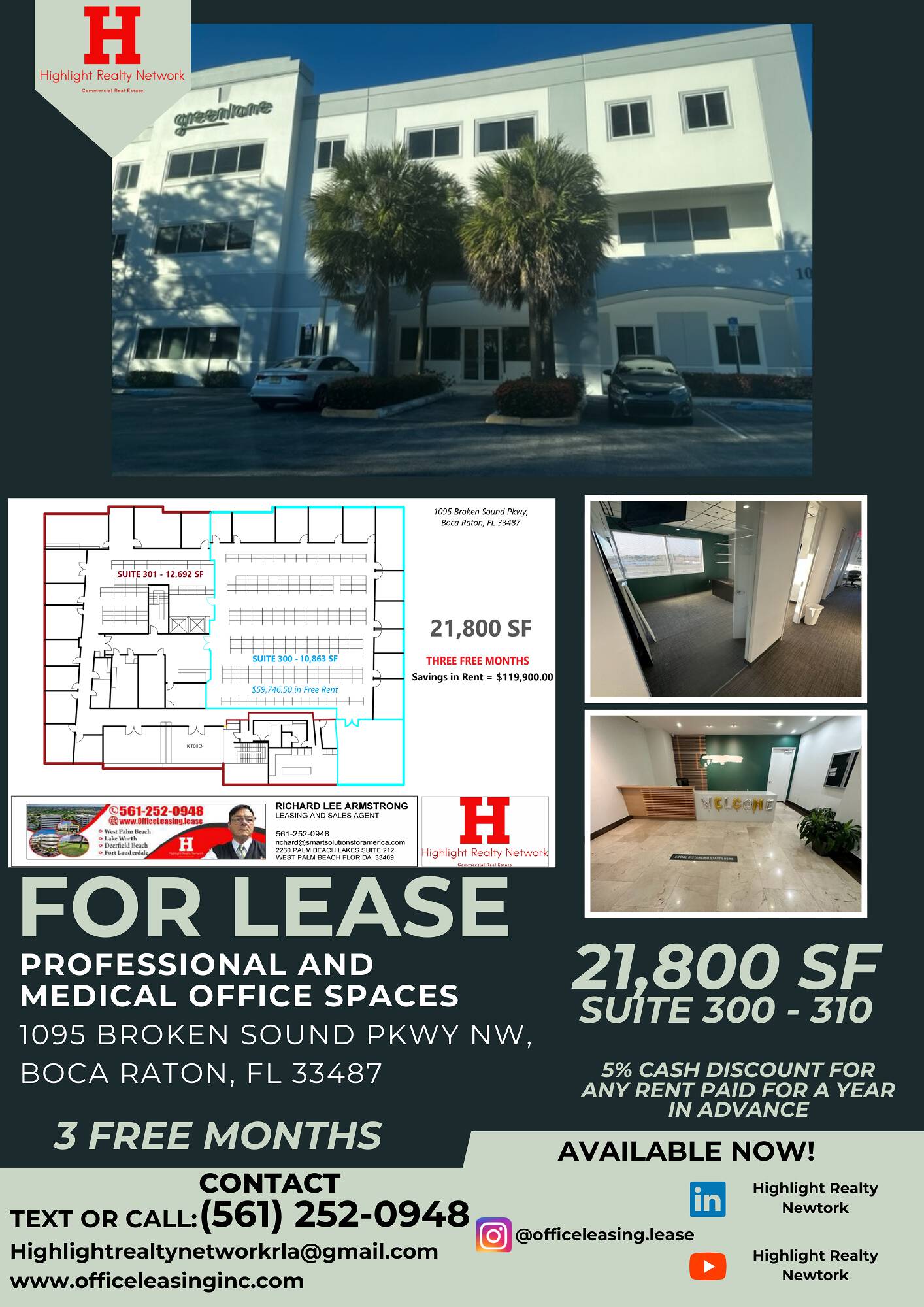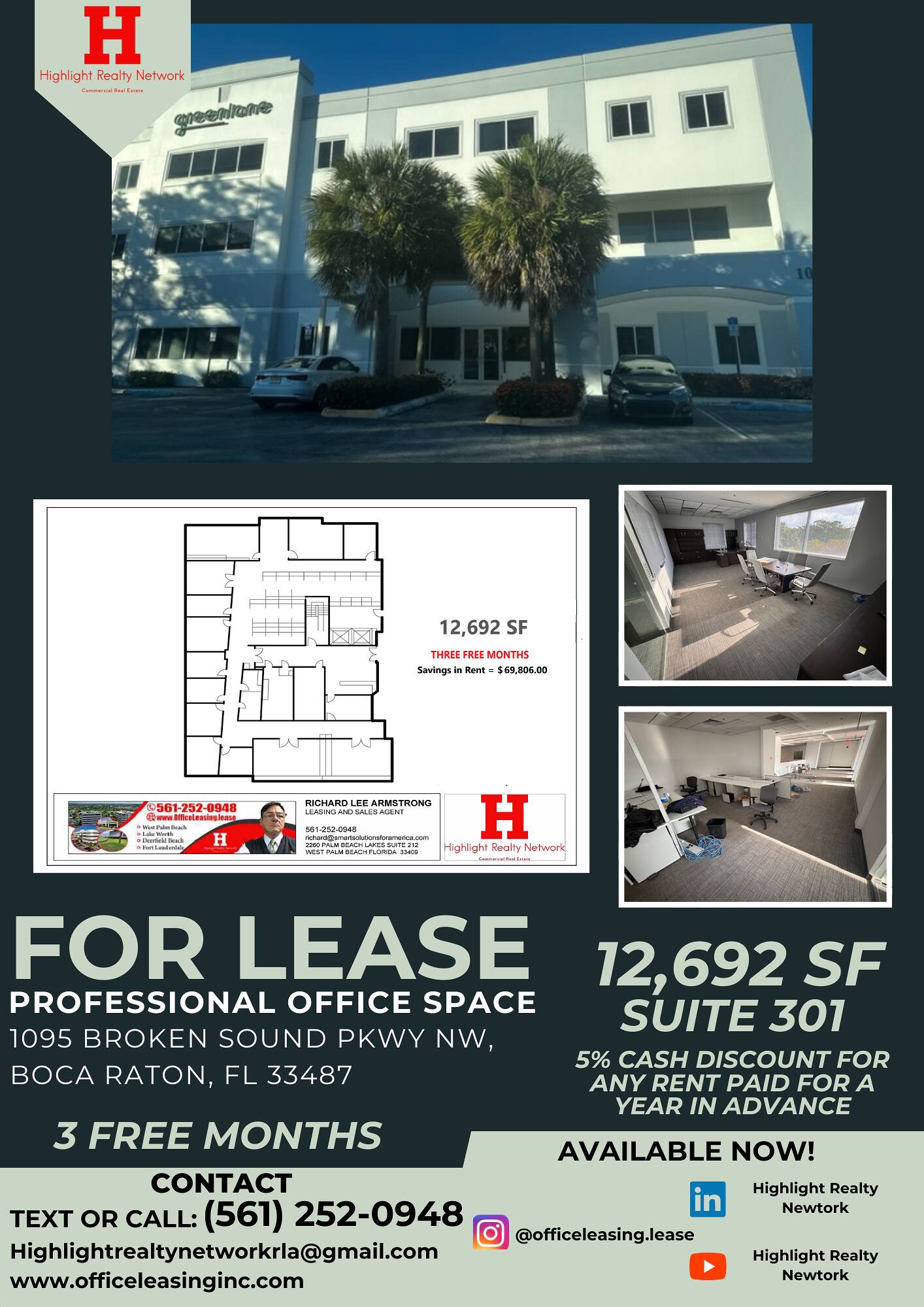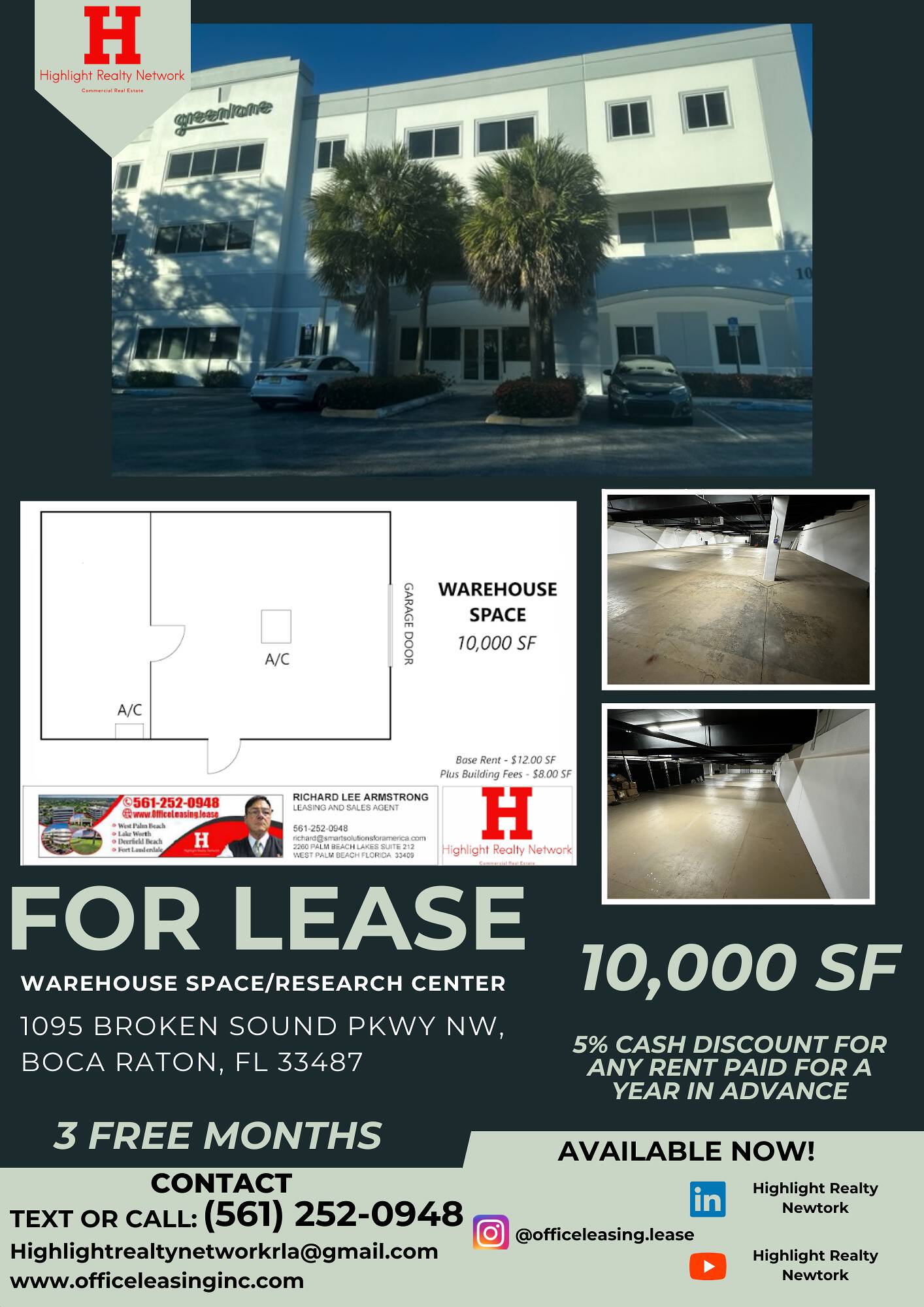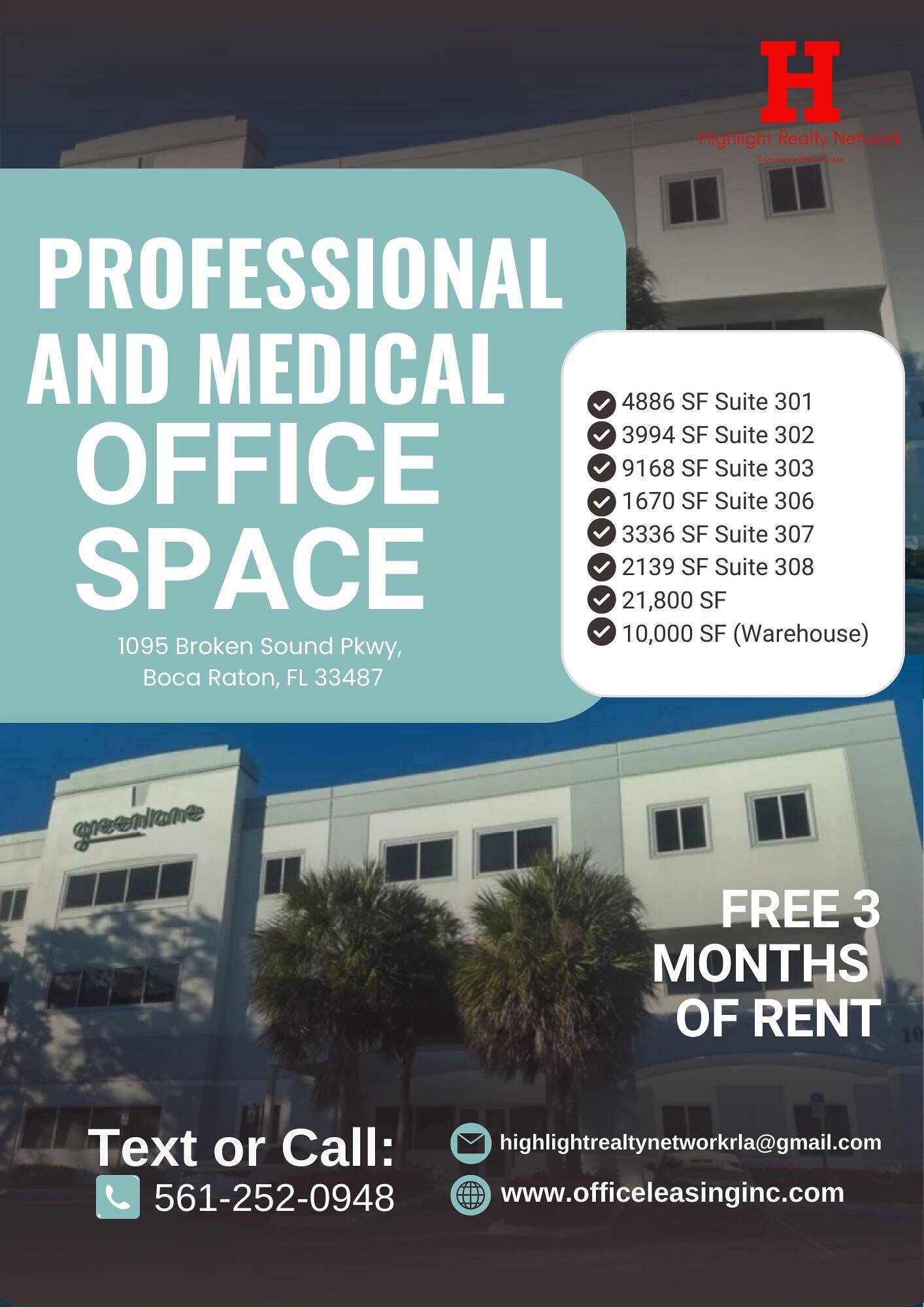 This property features: 3 FREE Months of Rent; Class‑A Space in Prestigious Broken Sound Business Park; Flexible Space: Warehouse, Research, Professional & Medical Office