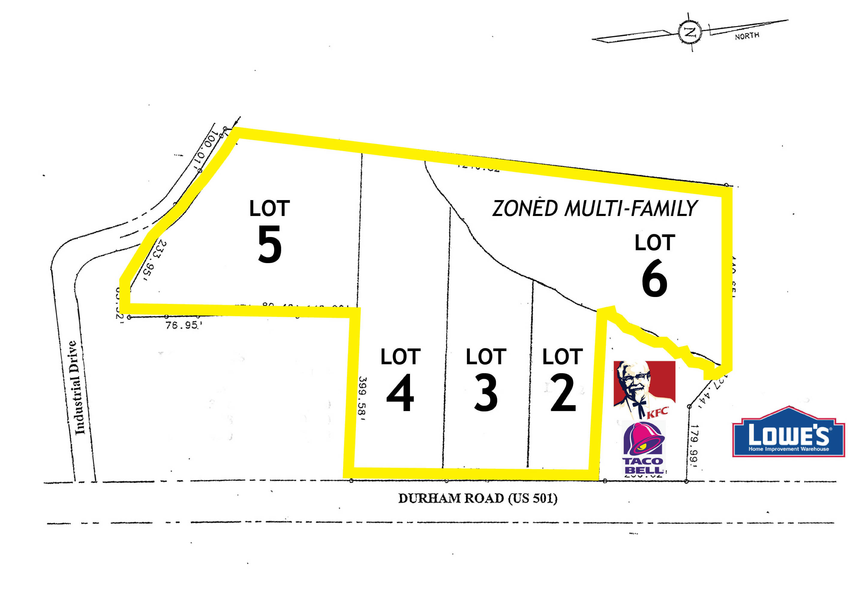 Five lots are available for sale in Roxboro, North Carolina, totaling approximately 18.3 acres. The site features 600 feet of frontage and is ideally suited for retail development. The property is located at the intersection of Durham Road and Industrial Drive, adjacent to the Lowe's Home Improvement store.
