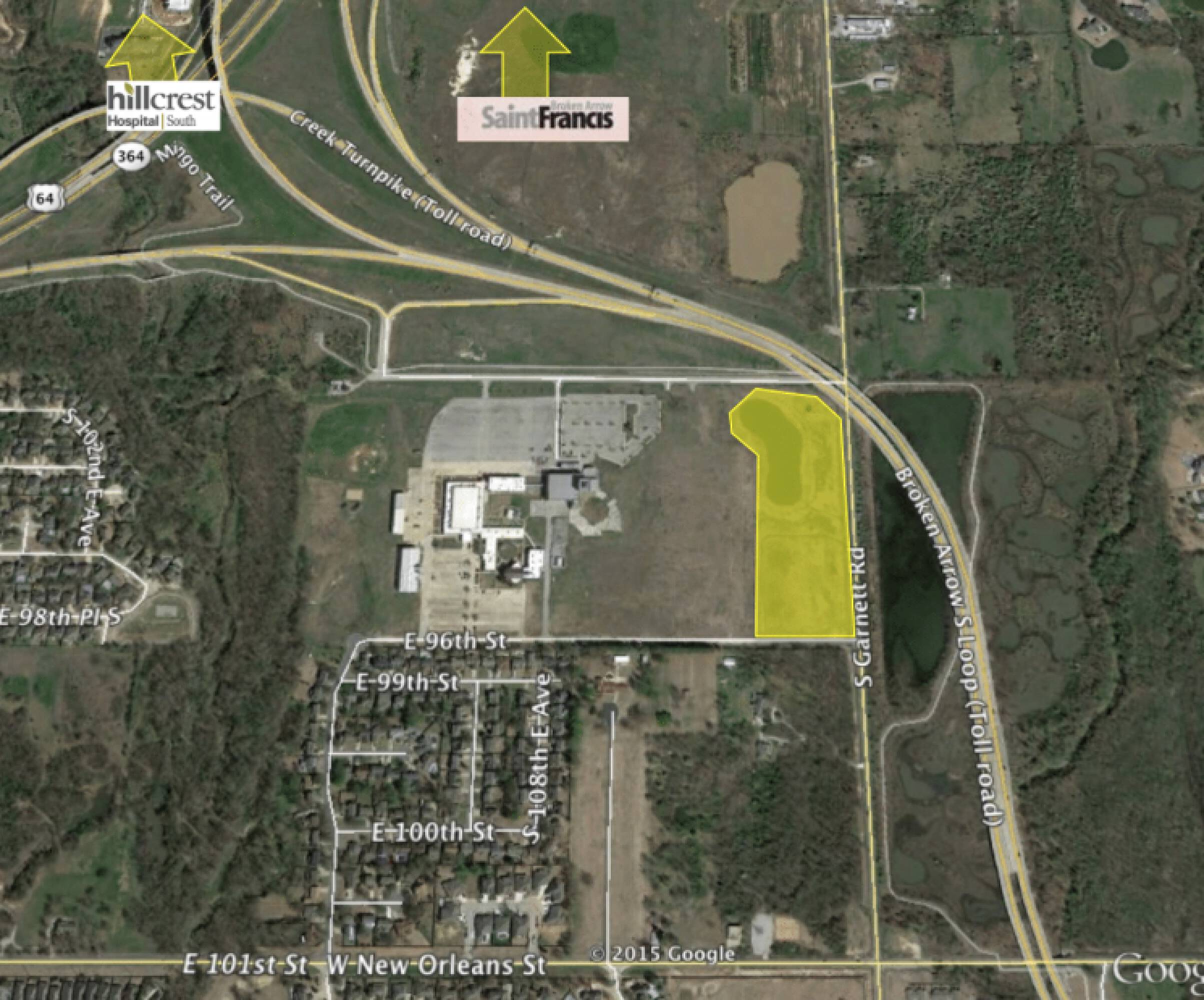 This property features approximately 11.84 acres of commercial land. It includes approximately 1,322 feet of frontage on Garnett, situated just south of the Broken Arrow South Loop. A portion of the site consists of a large detention pond. The site is divisible, but it is currently priced in its entirety.