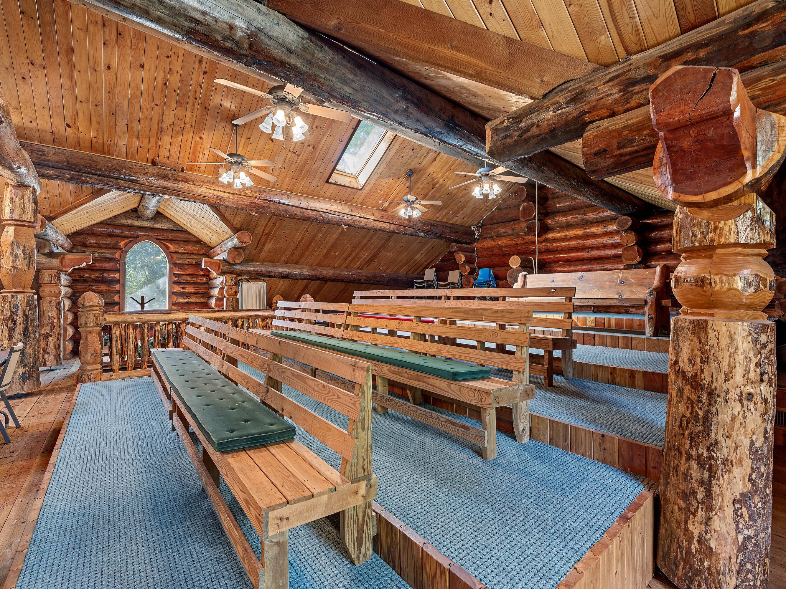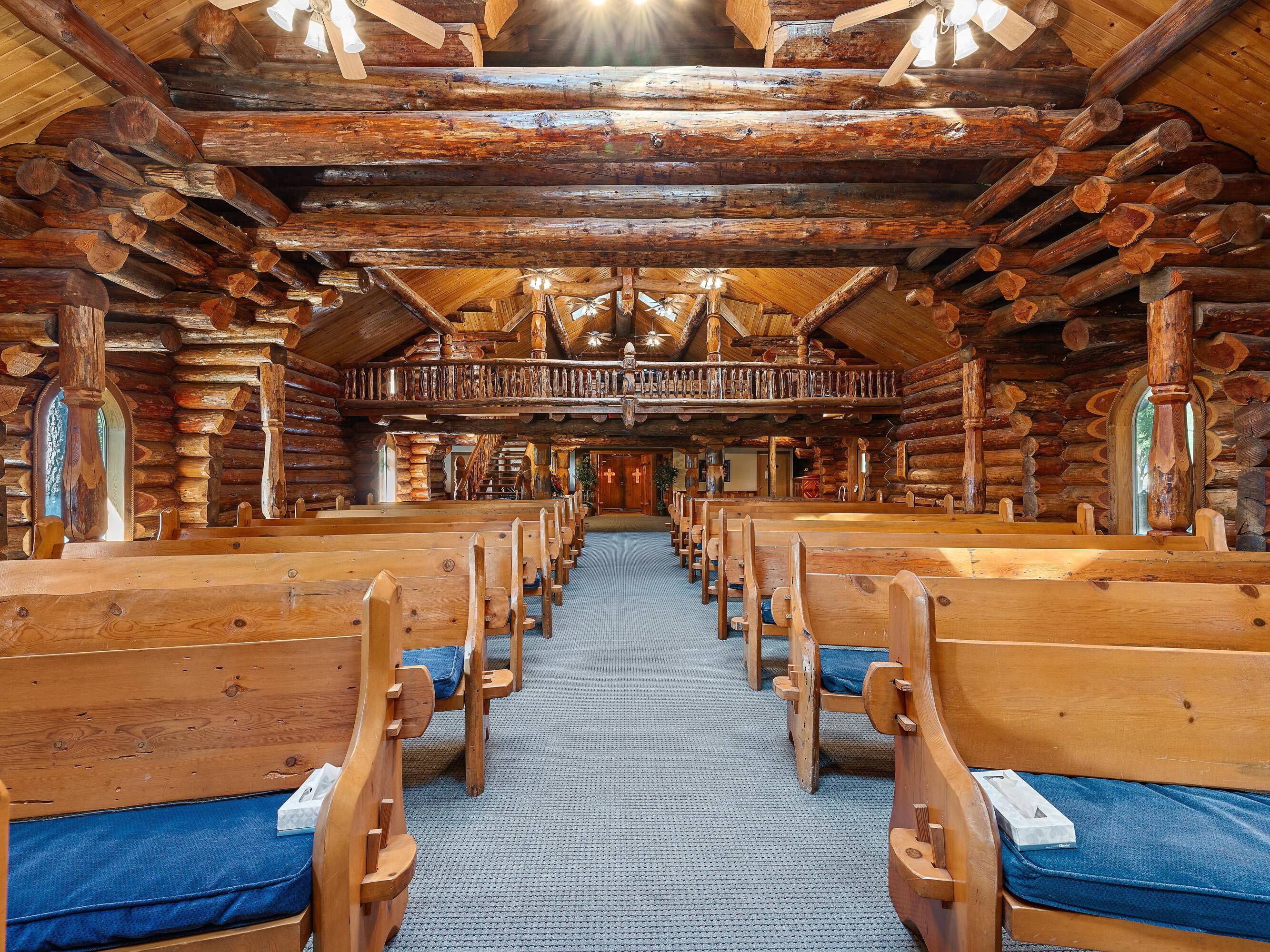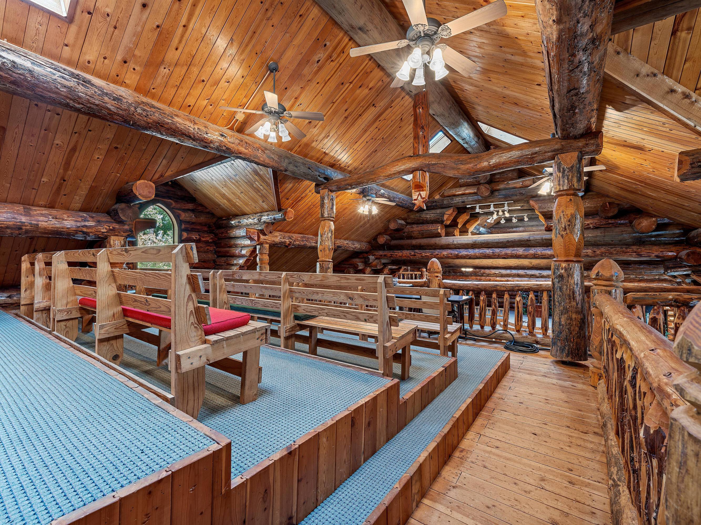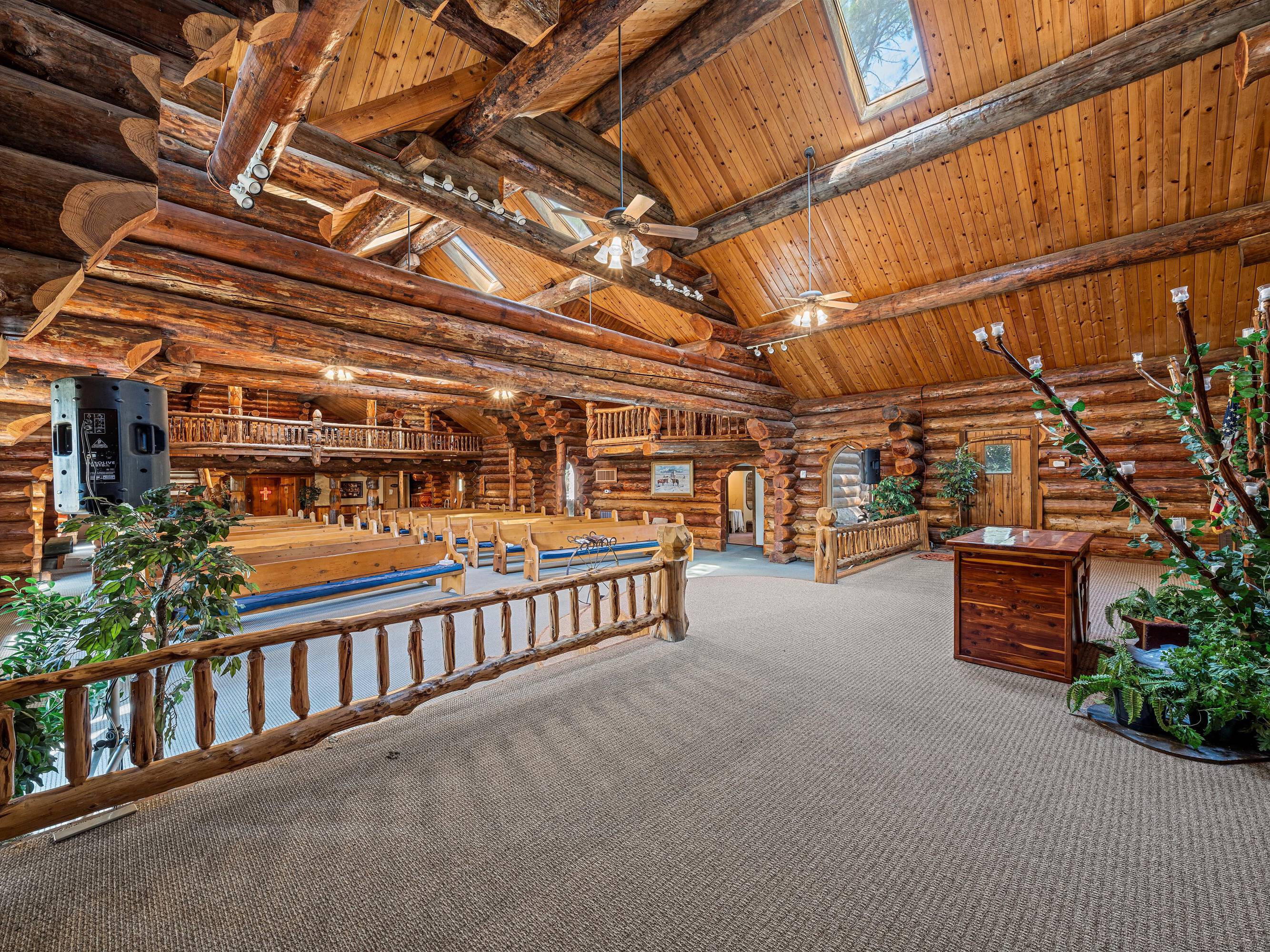 This property features: Scribed log cabin church offering a unique and peaceful retreat.; Handcrafted with precision and rustic elegance.; Vaulted wood ceilings and exposed beams with natural light create a warm atmosphere.